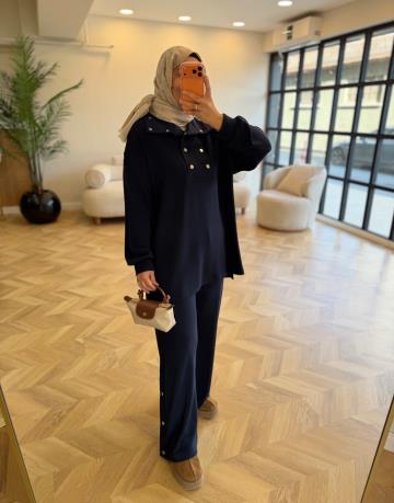 Lacivert Kol Pile Detaylı Oversize Sweatshırt