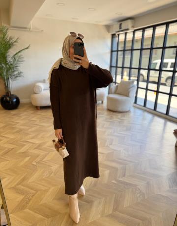 Kahve 2514 Triko Elbise