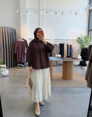 Sütlü Kahve Asimetrik Kesim Gömlek