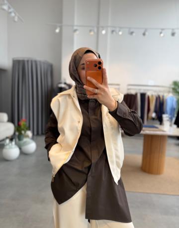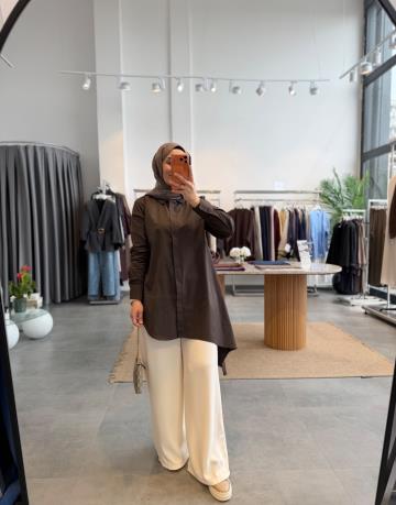 Sütlü Kahve Müslin Araboy Gömlek Tunik