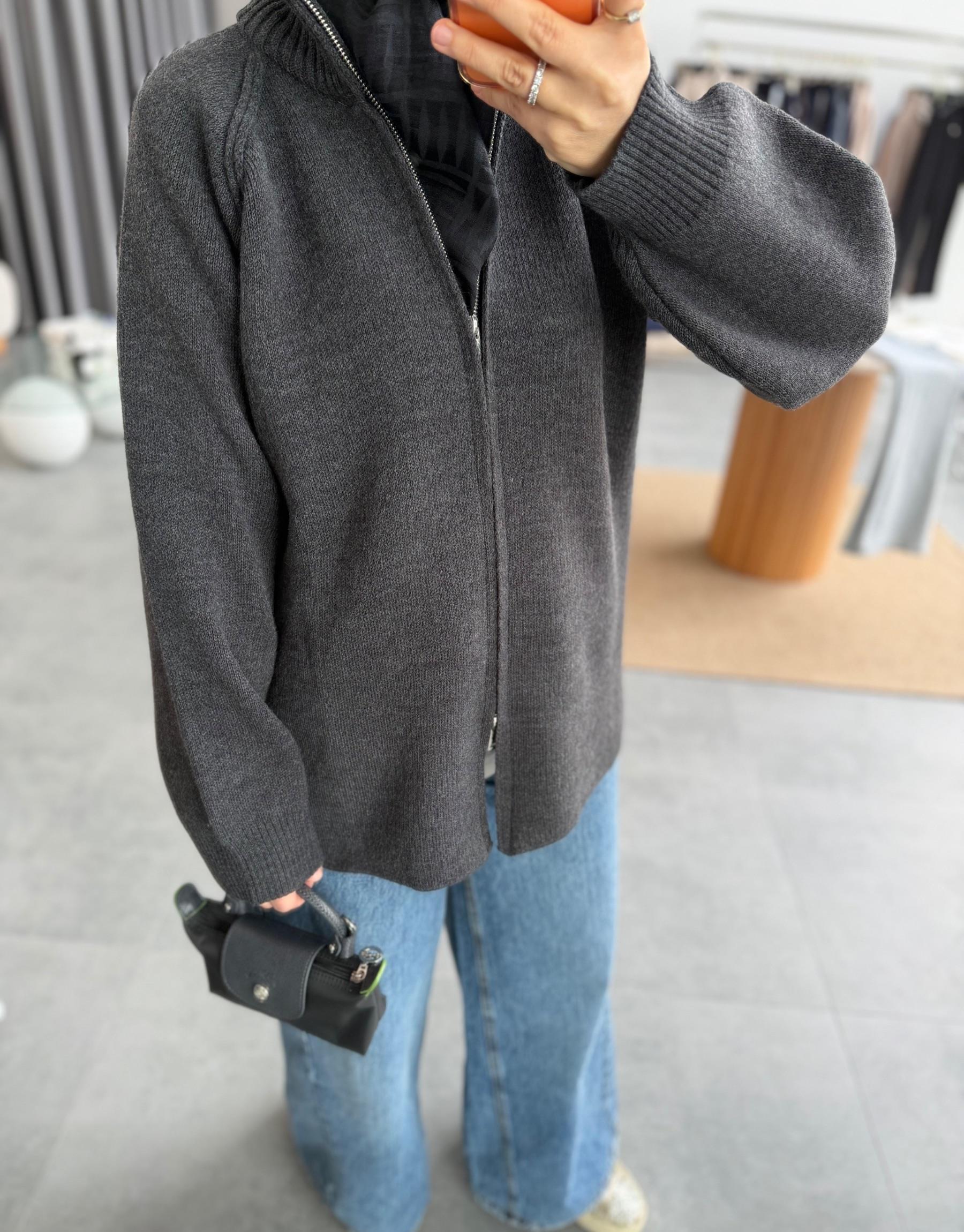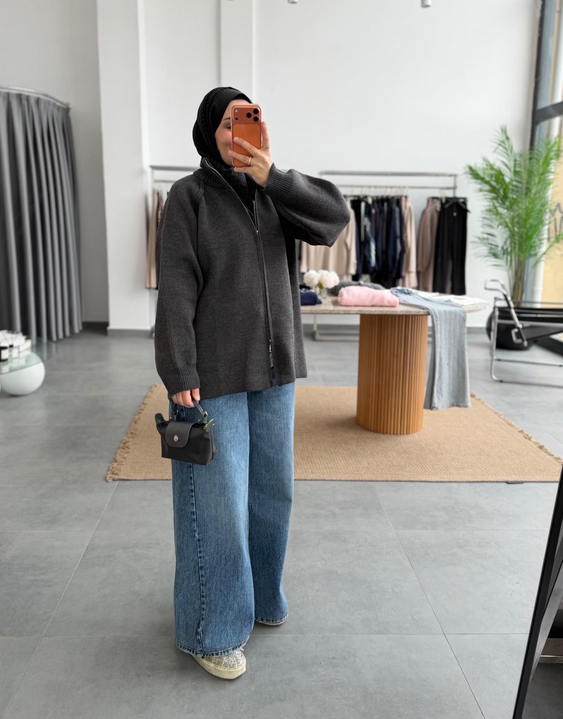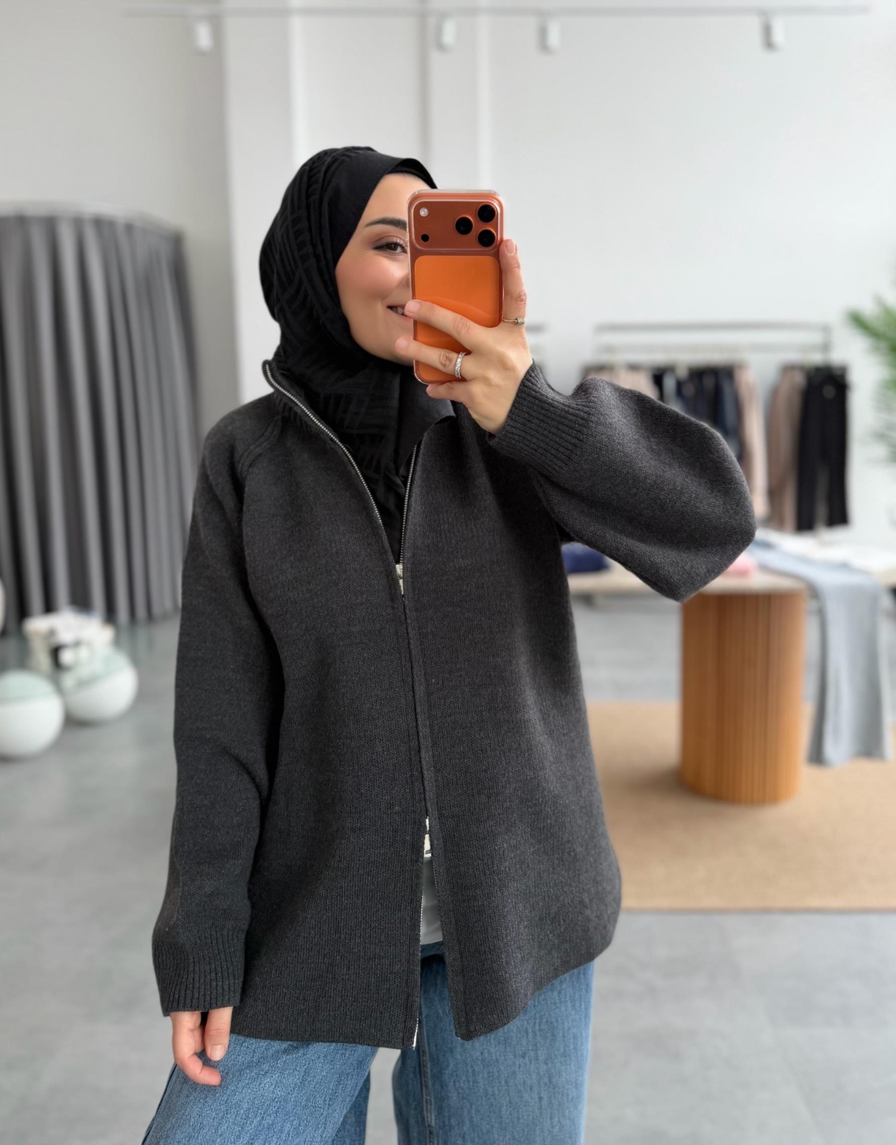 Antrasit Çift Fermuarlı Triko Hırka
