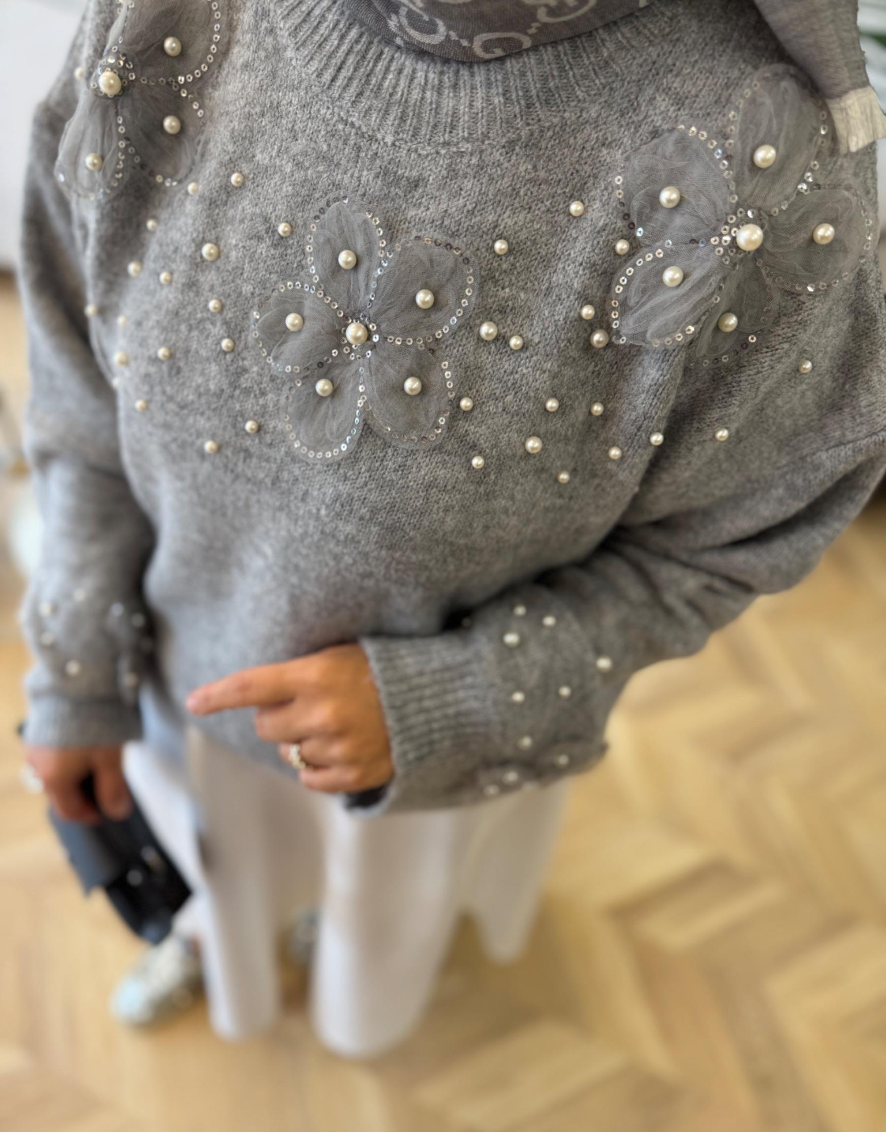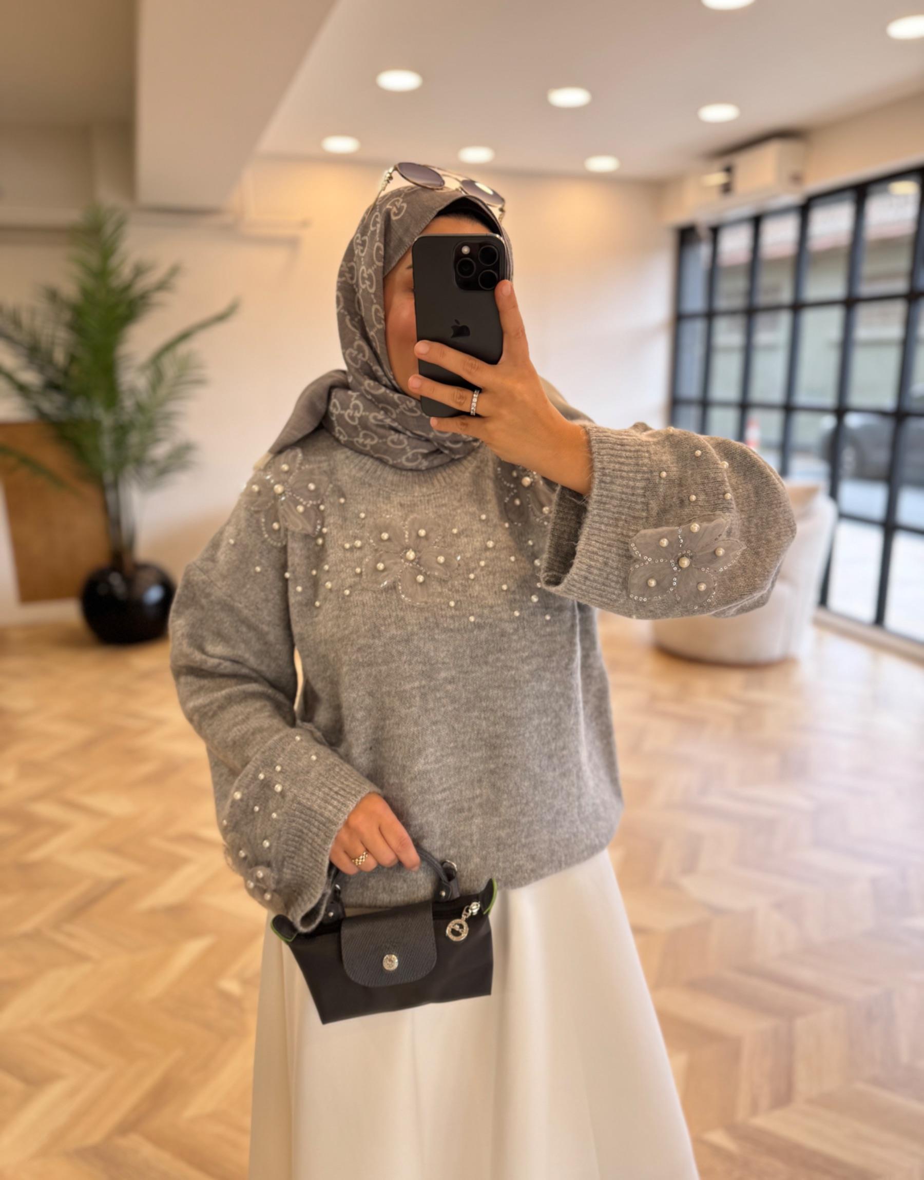 tesettur giyim Gri 2621 Triko Kazak Butiköz