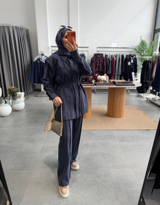 tesettur giyim Kahve 2008 Denim Etekli Takım Butiköz