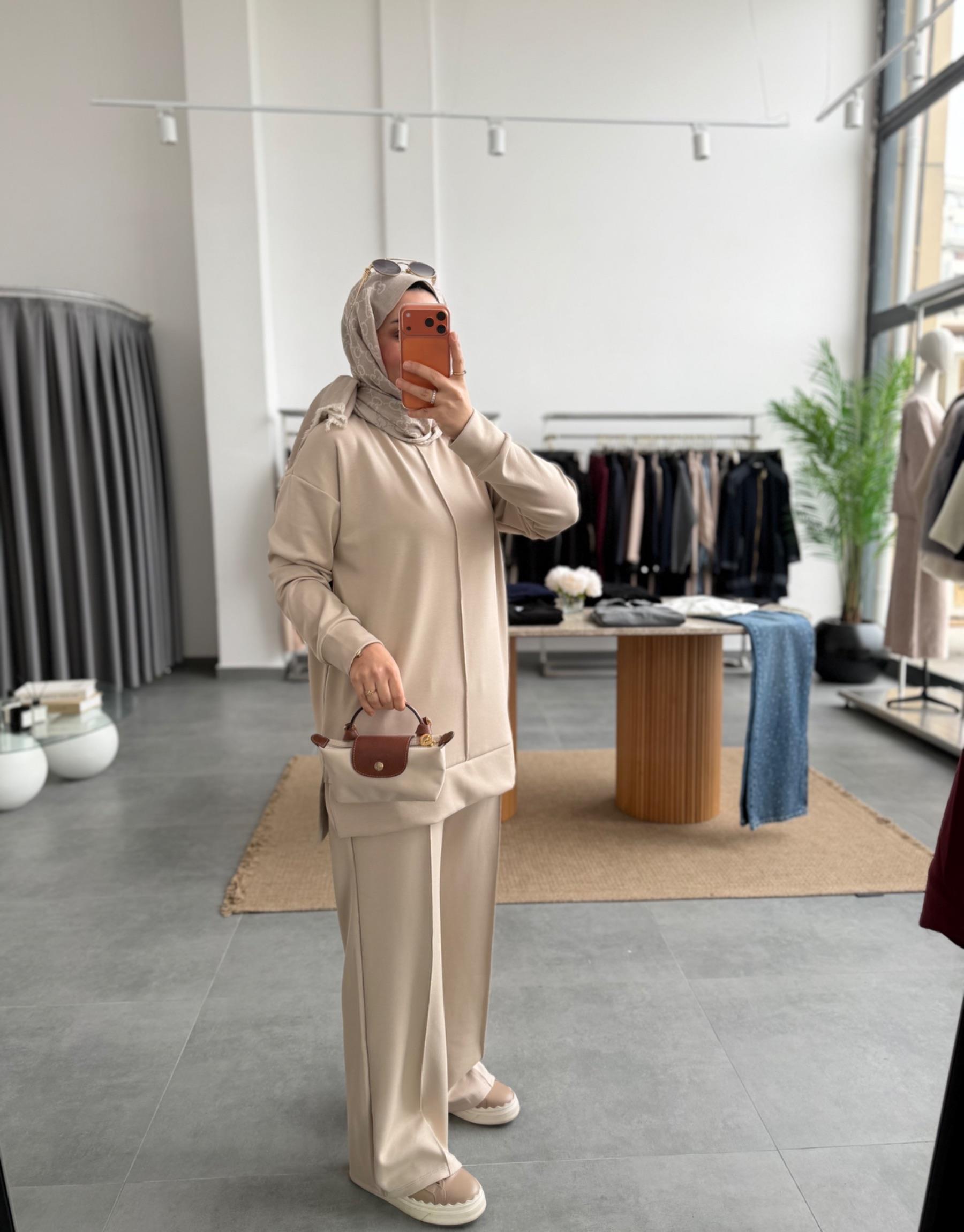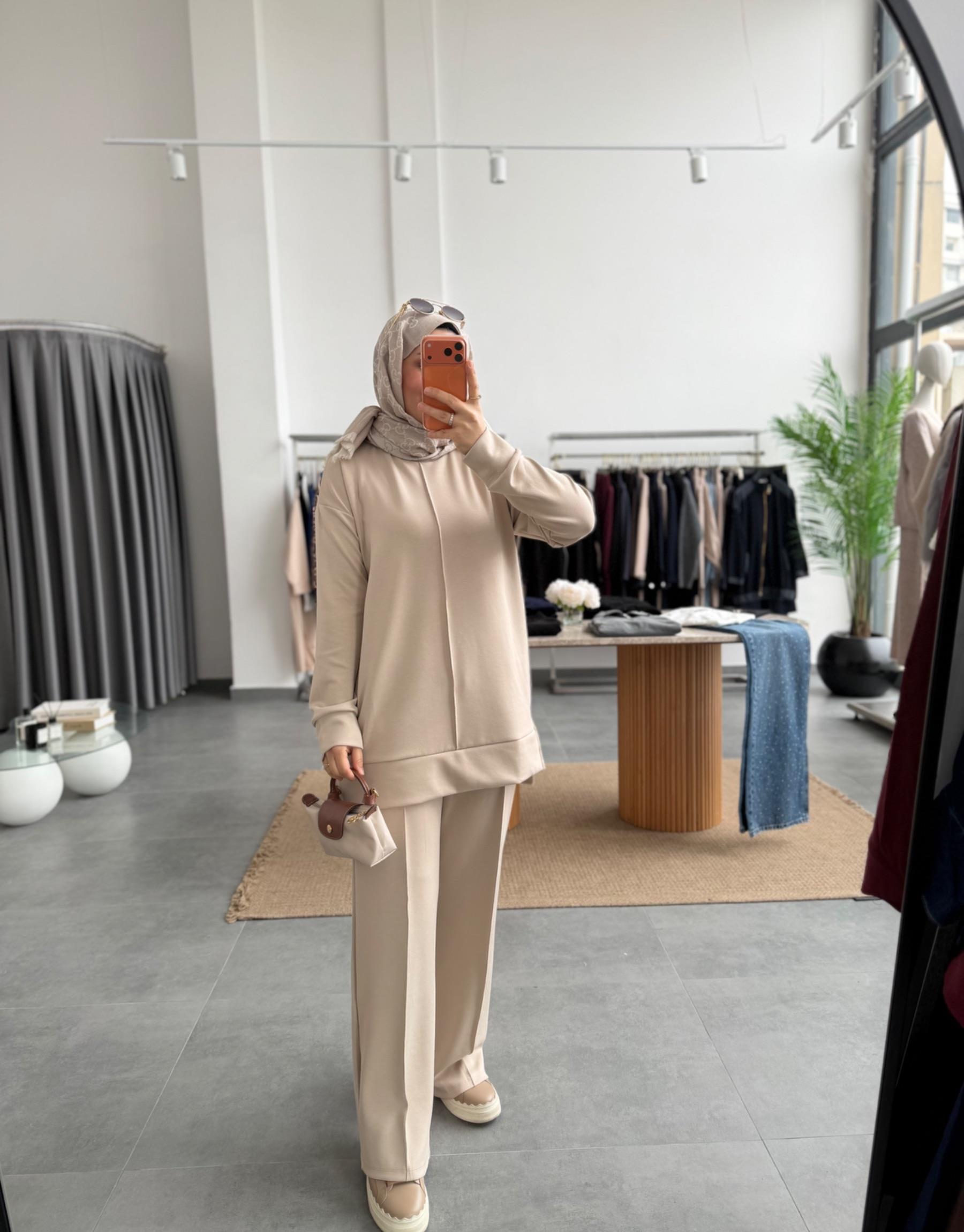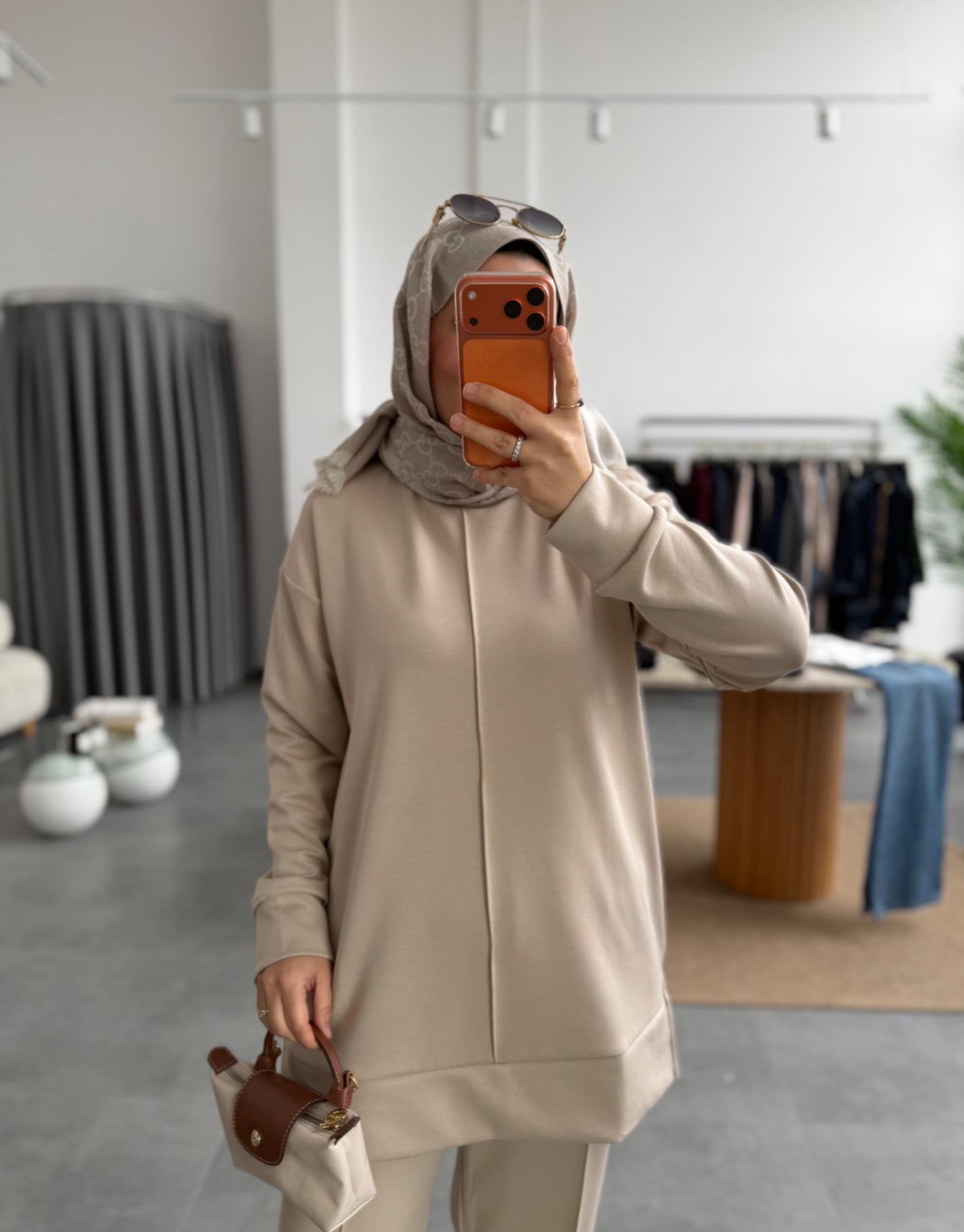 tesettur giyim Krem 4402 Oysh Takım Butiköz