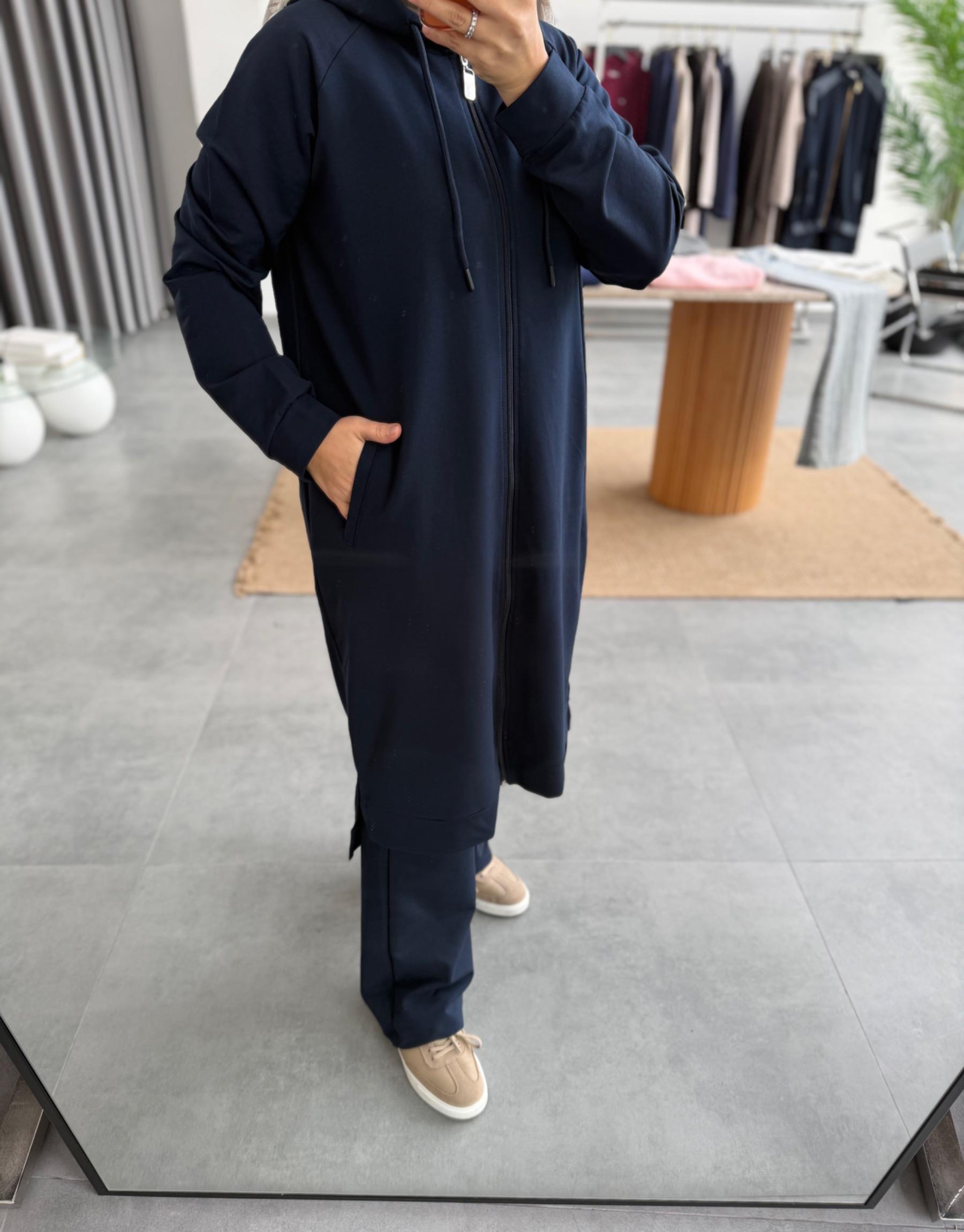 tesettur giyim Lacivert Fermuarlı Midi Boy Takım Butiköz