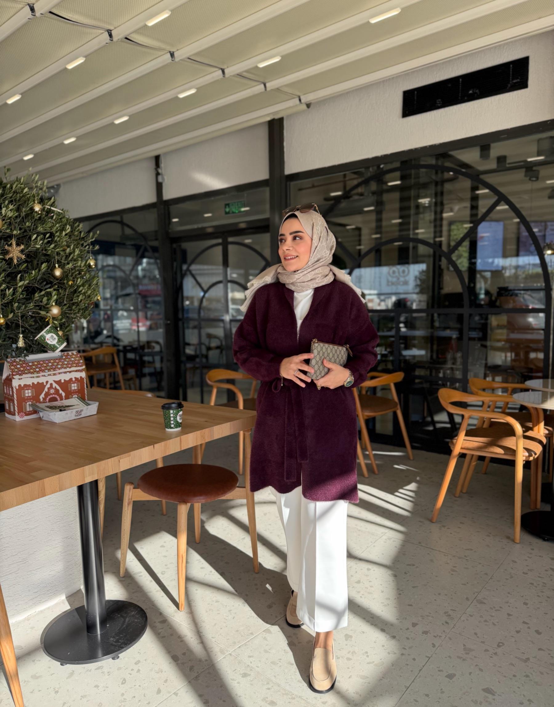 Mürdüm 5038 Kuşaklı Angora Hırka