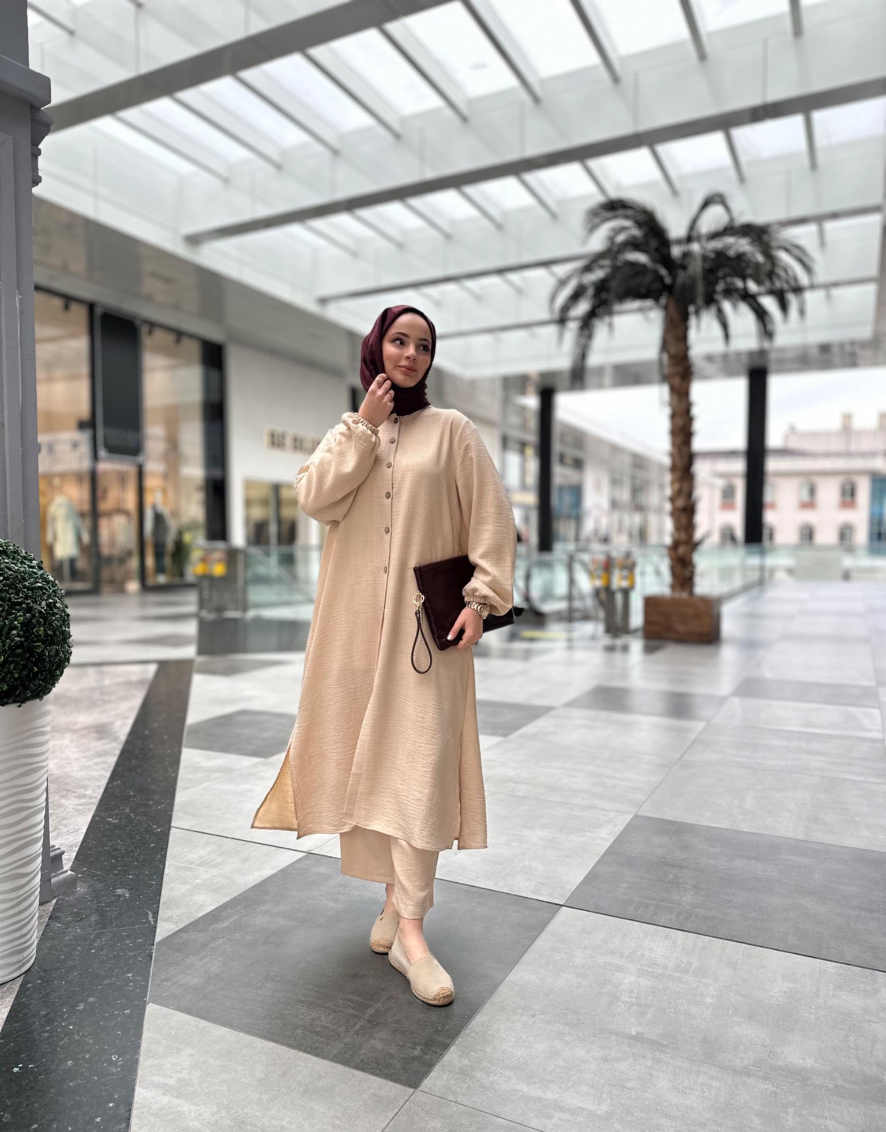 tesettur giyim Açık Krem 4179 İkili Takım Butiköz
