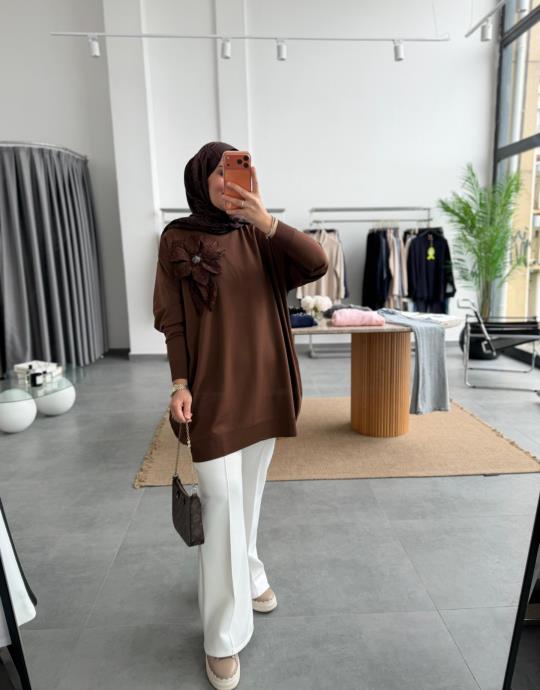 Kahve Lilyum Merserize Triko Kazak