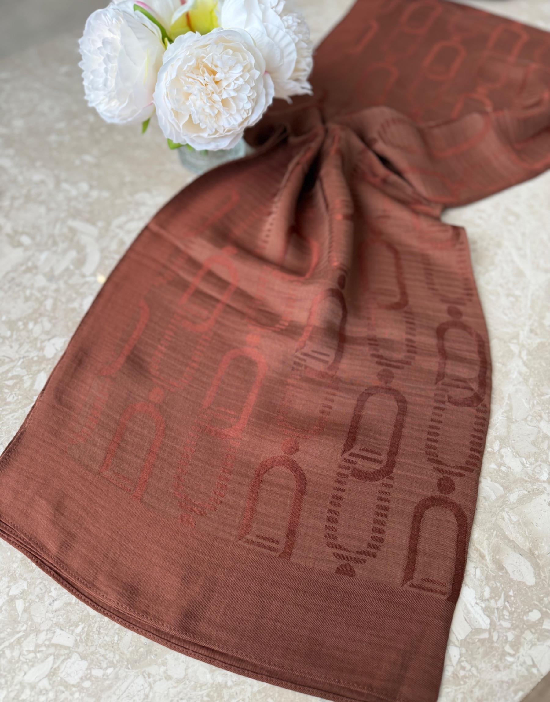 tesettur giyim Bakır Kahve Zincir Desen Native Şal Butiköz