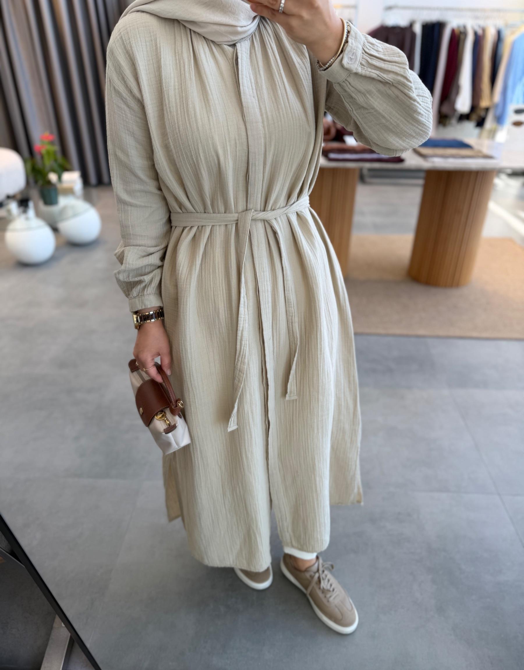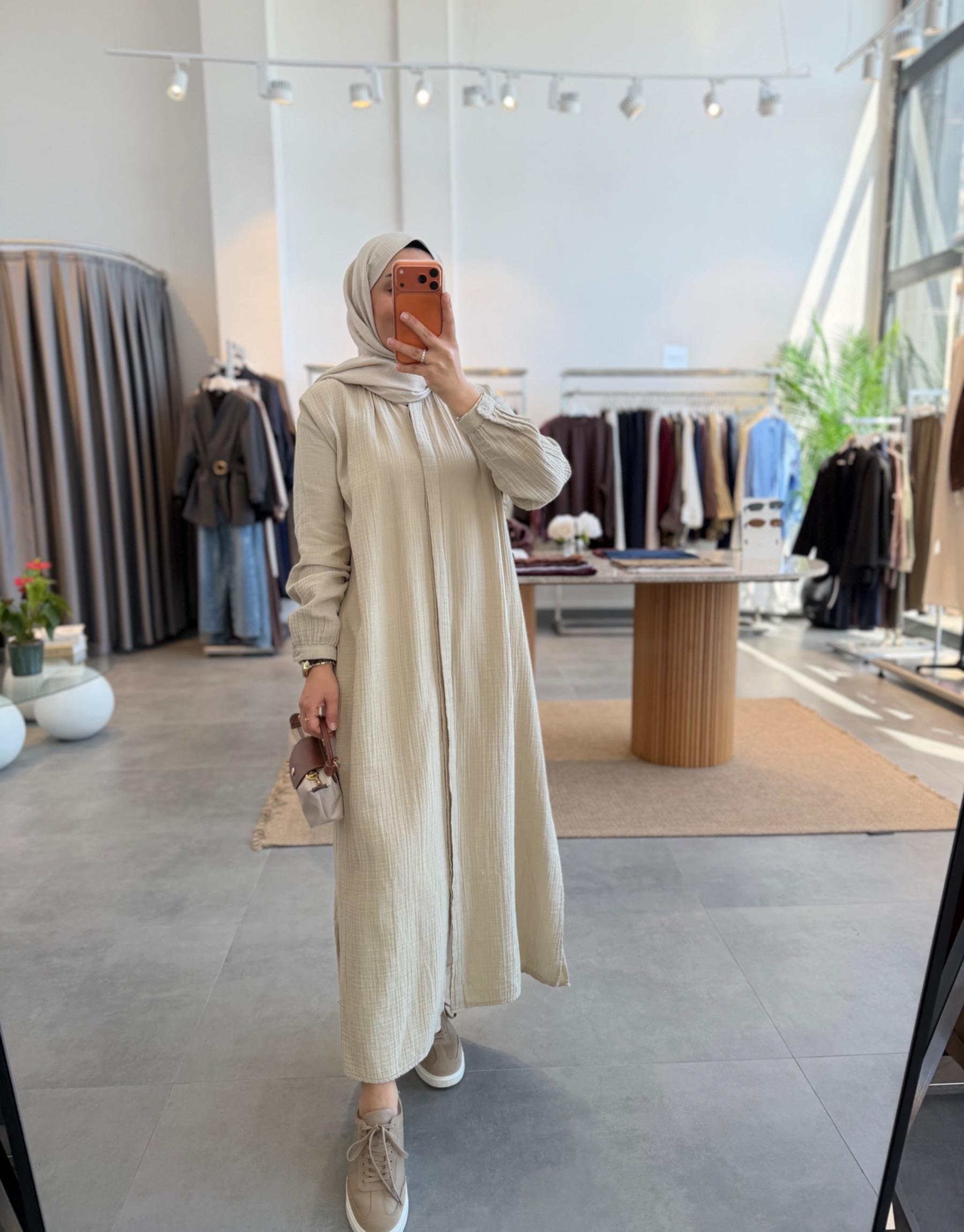 1 beden:36-38-402 beden:42-44-46 uygundur Ürün boyu:126 cm Kumaş türü: Pamuklu Müslin kumaş