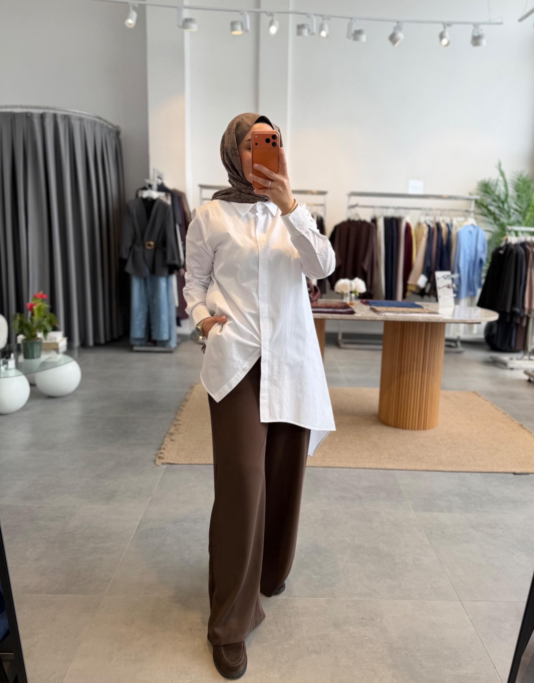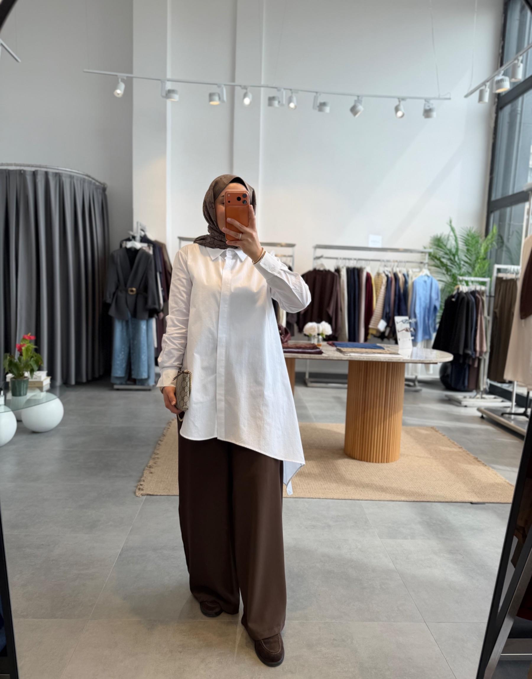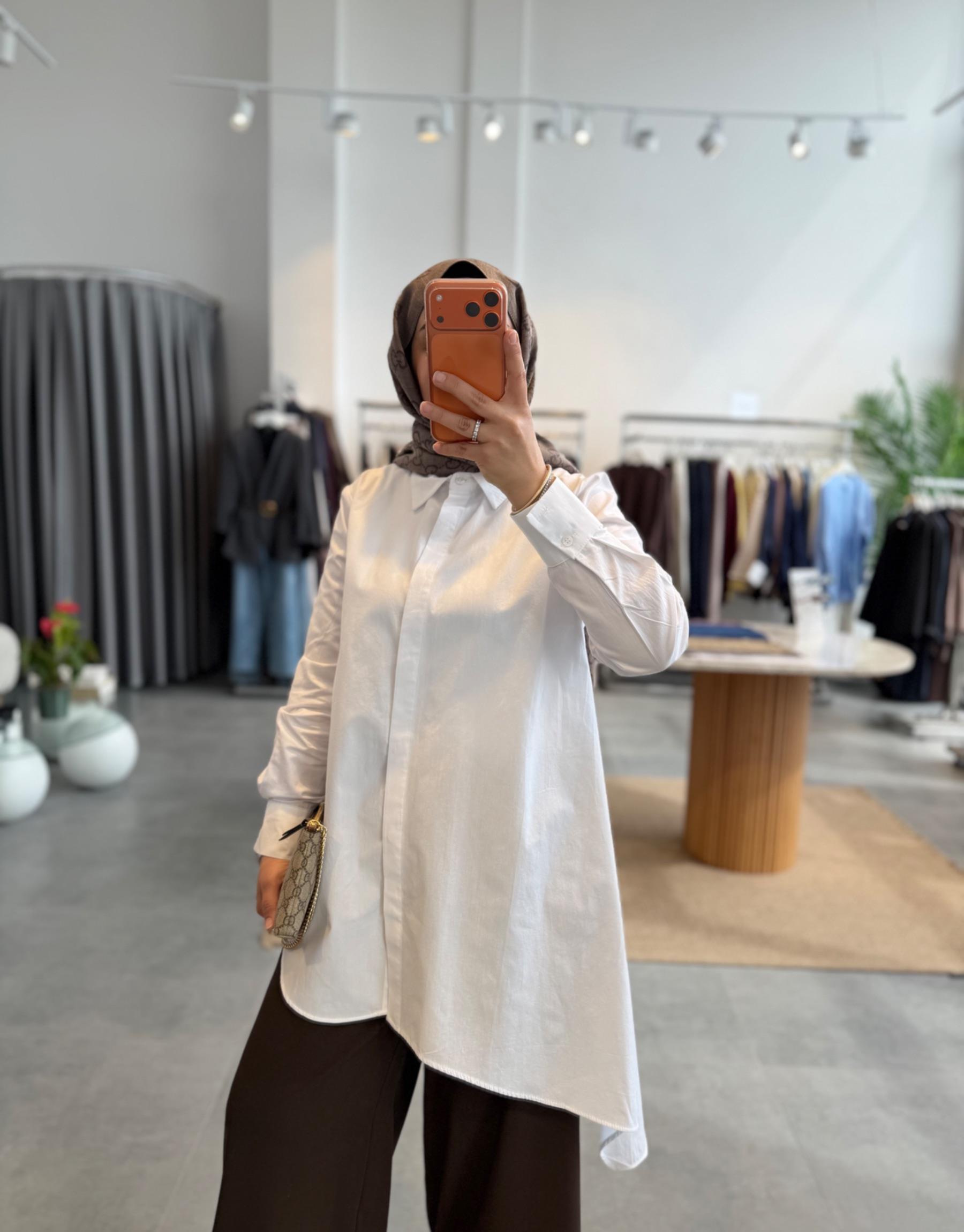 tesettur giyim Beyaz Asimetrik Kesim Gömlek Butiköz