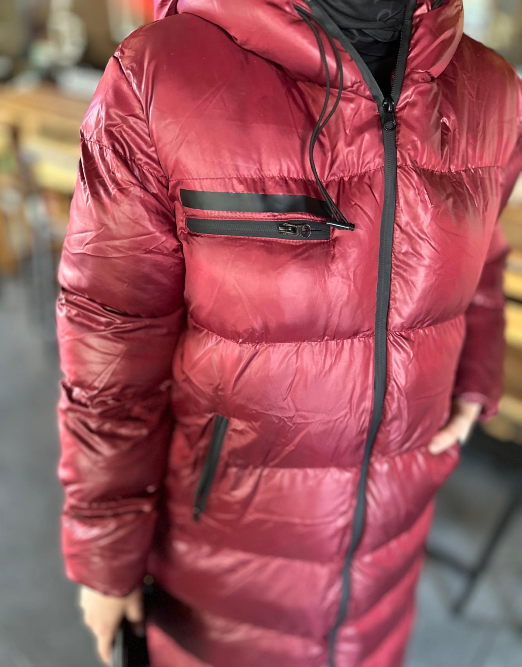 tesettur giyim Bordo 2043 Uzun Şişme Mont Butiköz