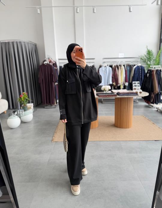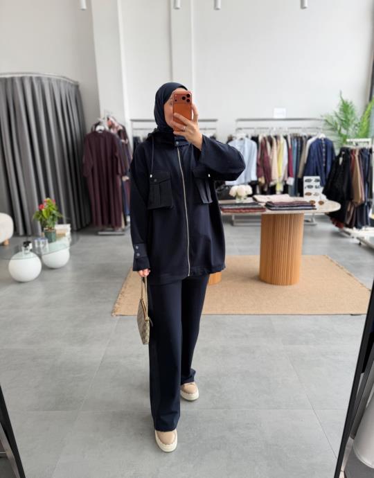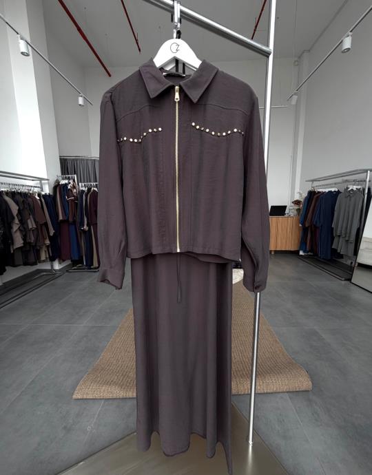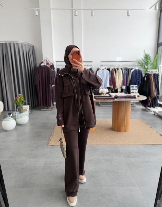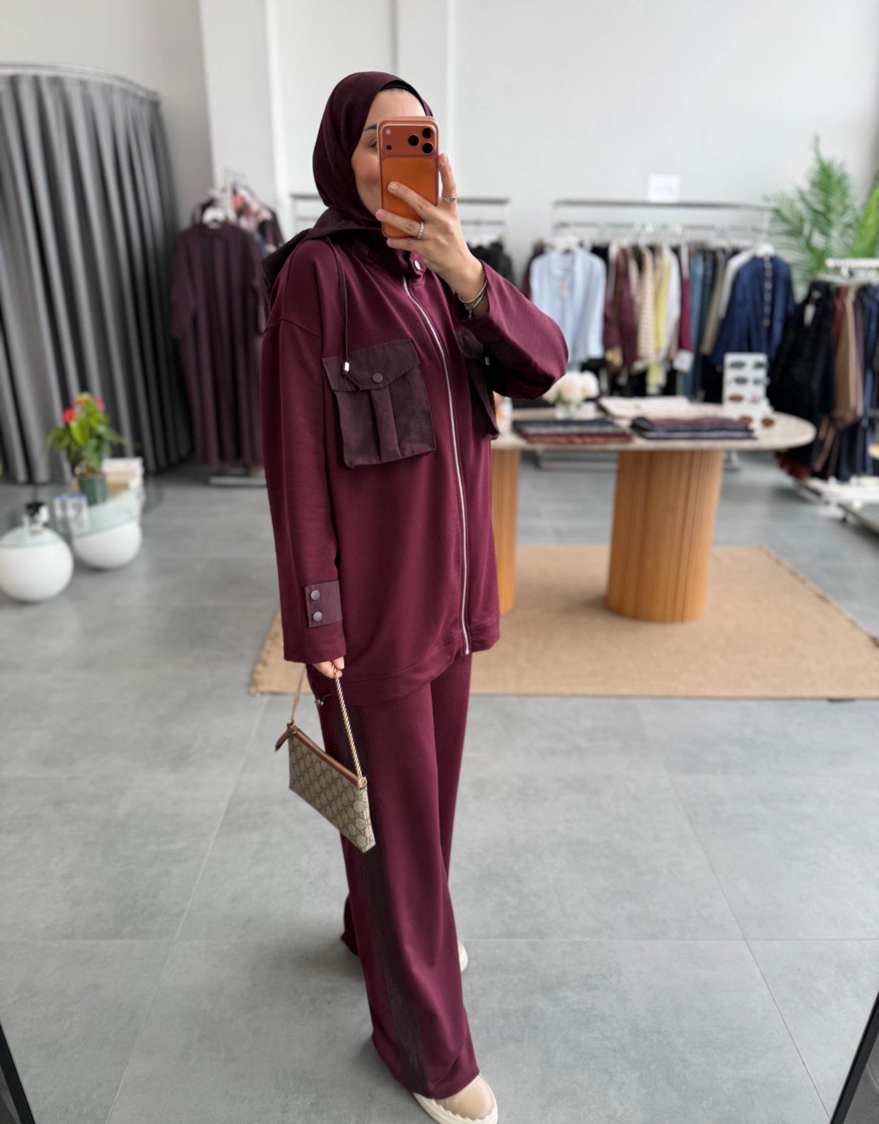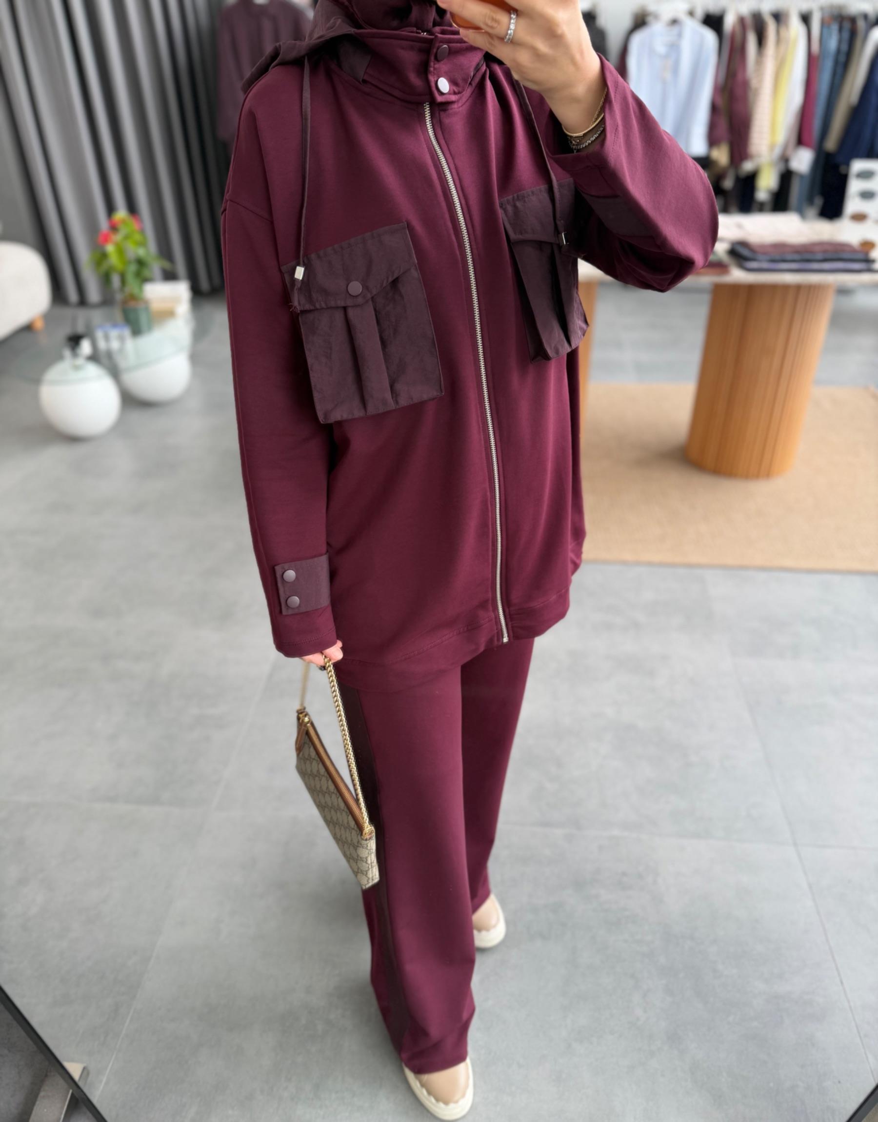 tesettur giyim Bordo Cepli Garni Detaylı Takım Butiköz