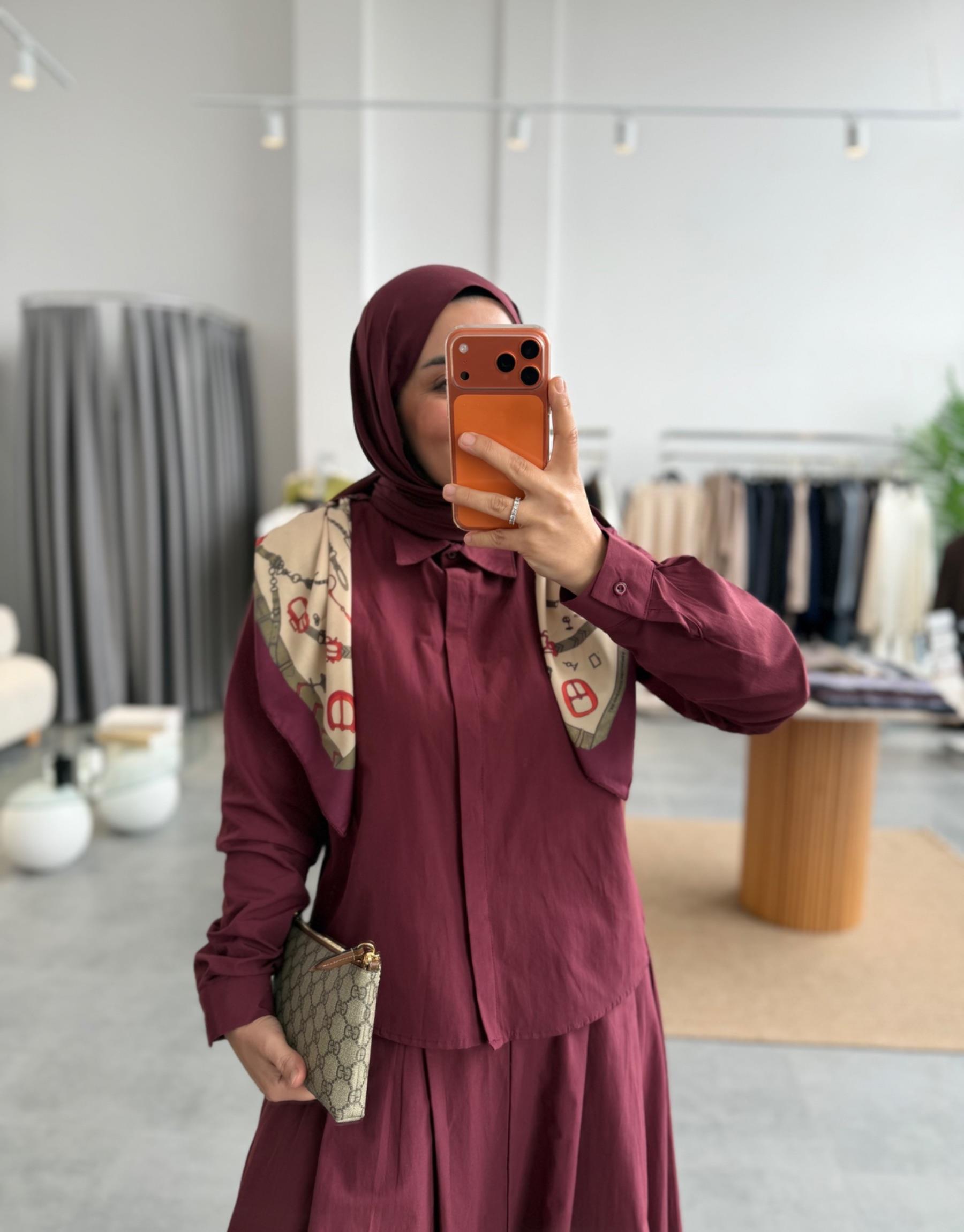 Bordo Eşarplı Etekli Takım