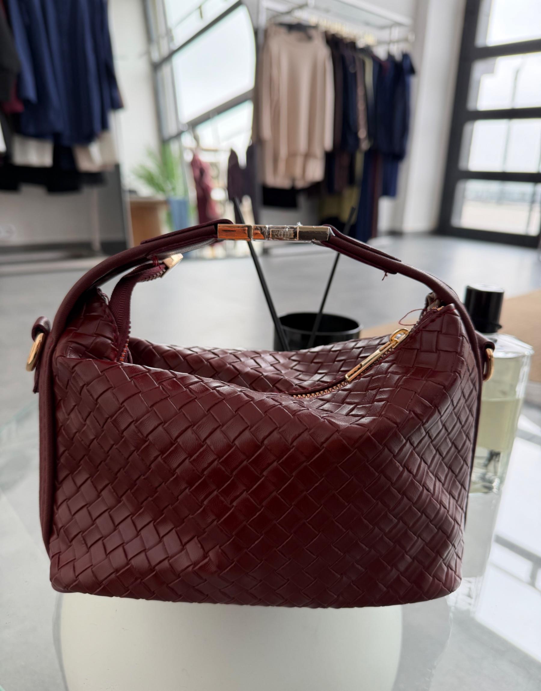 tesettur giyim Bordo Örgü Detaylı Lora Çanta Butiköz