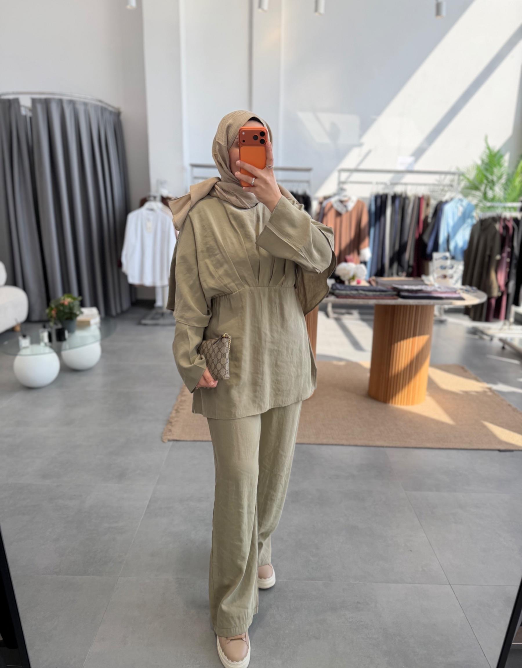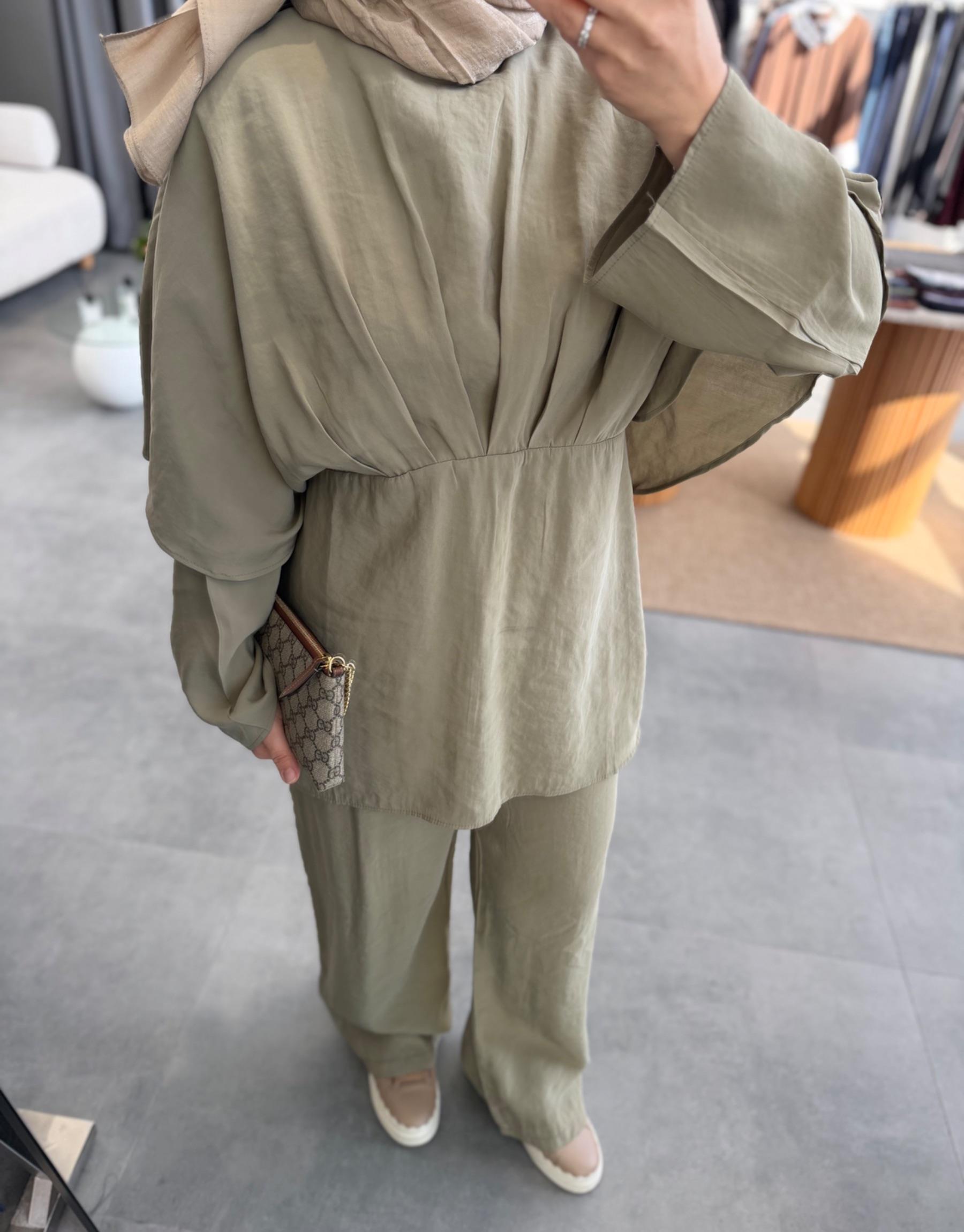 S-M:36-38-40L-XL:42-44Üst boy:75 cmPantolon boy:104 cmKumaş türü: TenselManken bedeni:S-M