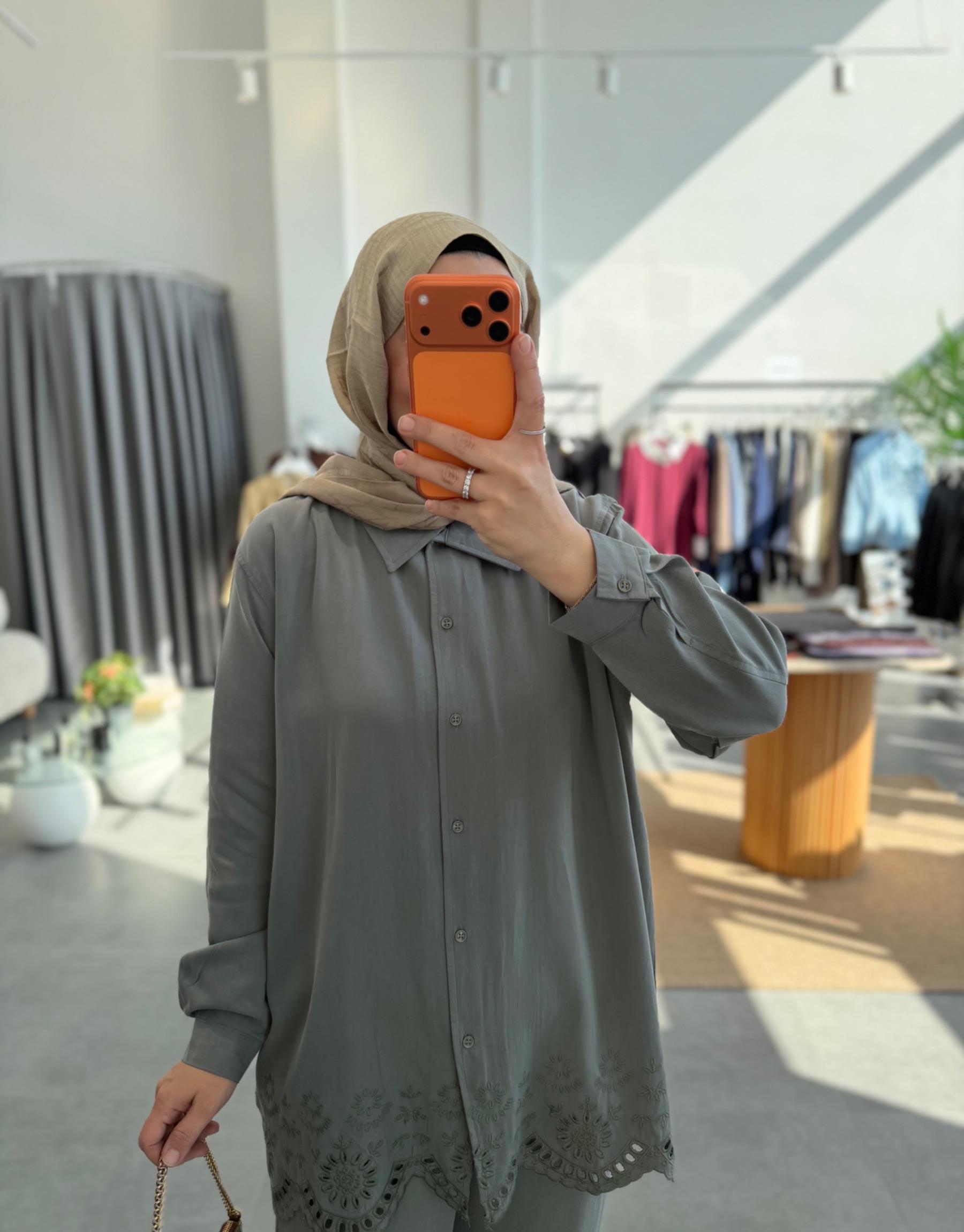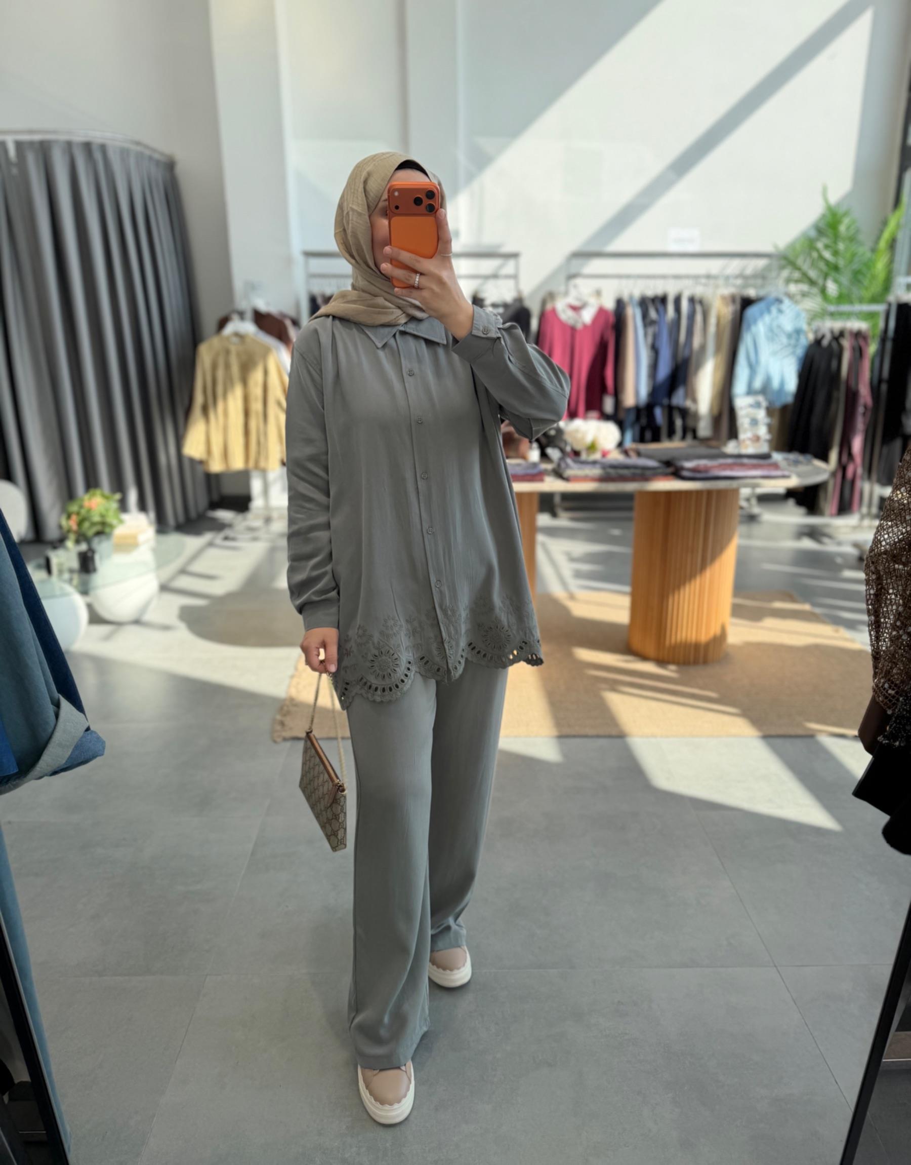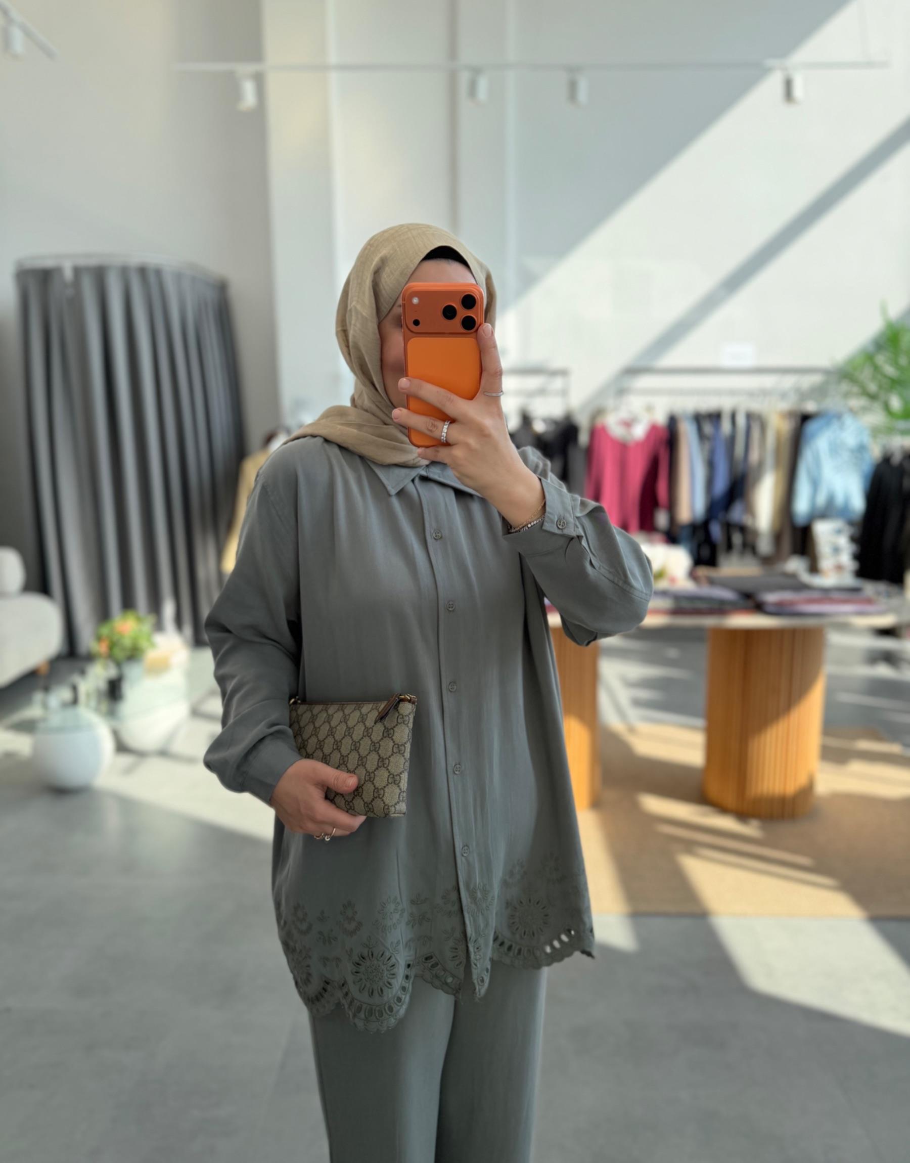 tesettur giyim Çağla Nakış Detaylı Takım Butiköz