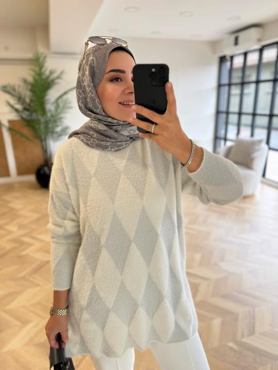 tesettur giyim Ekru 44155 Yumoş Triko Kazak Butiköz