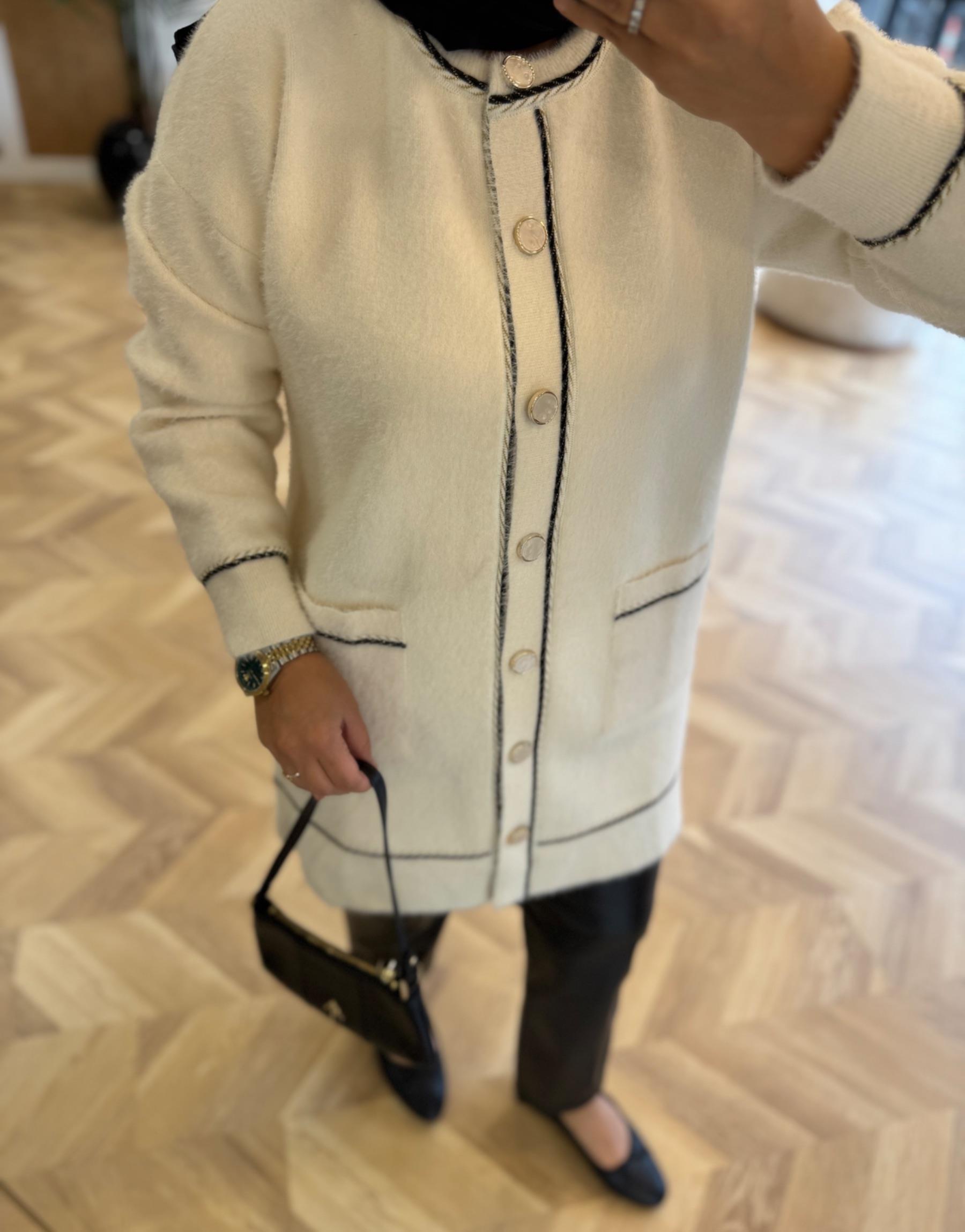 Vizon Atkı Detaylı Sakallı Triko Ceket