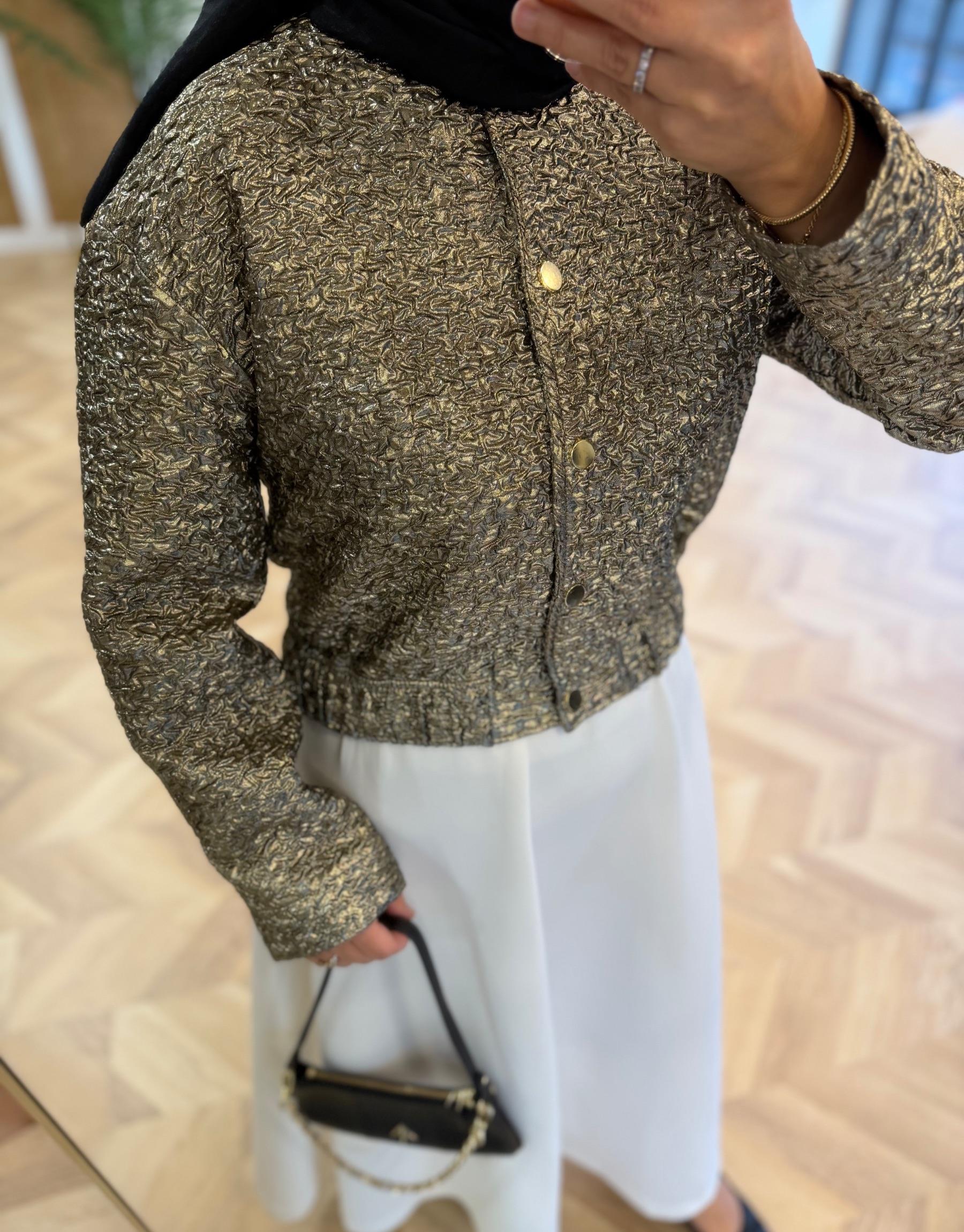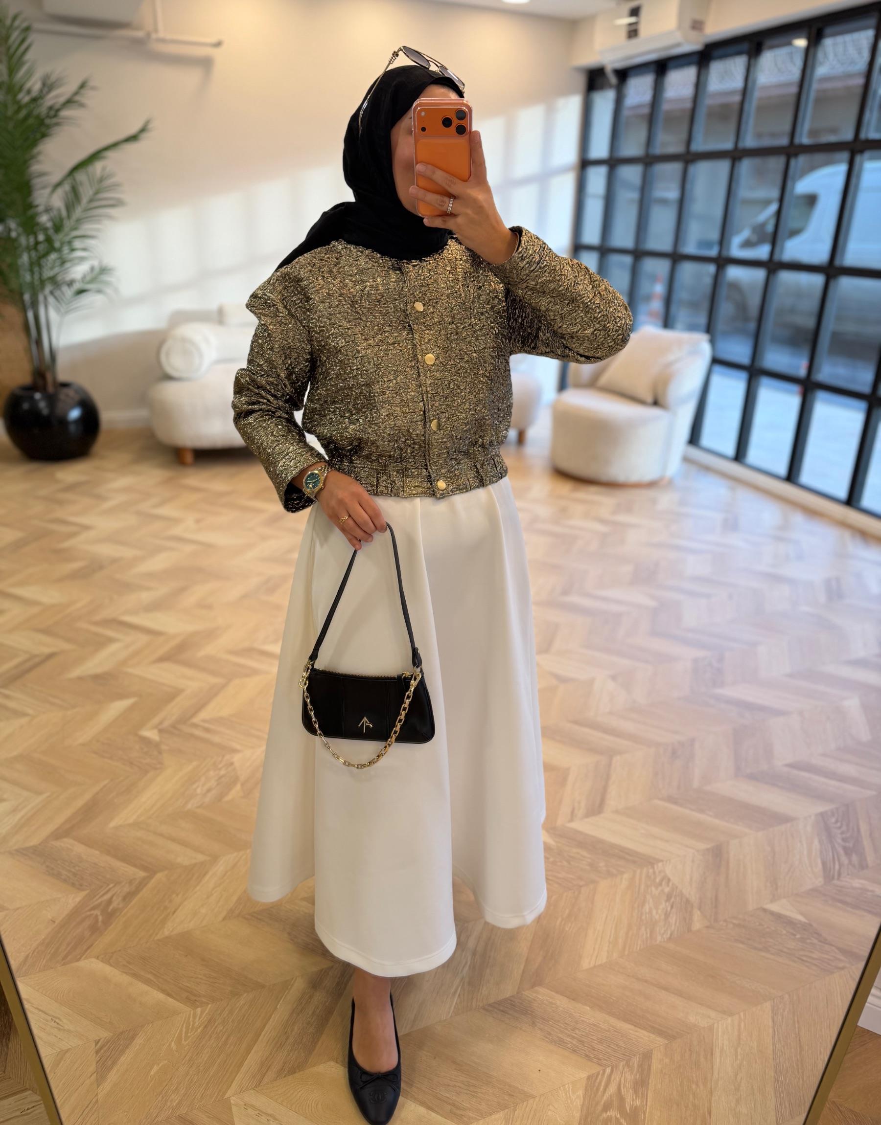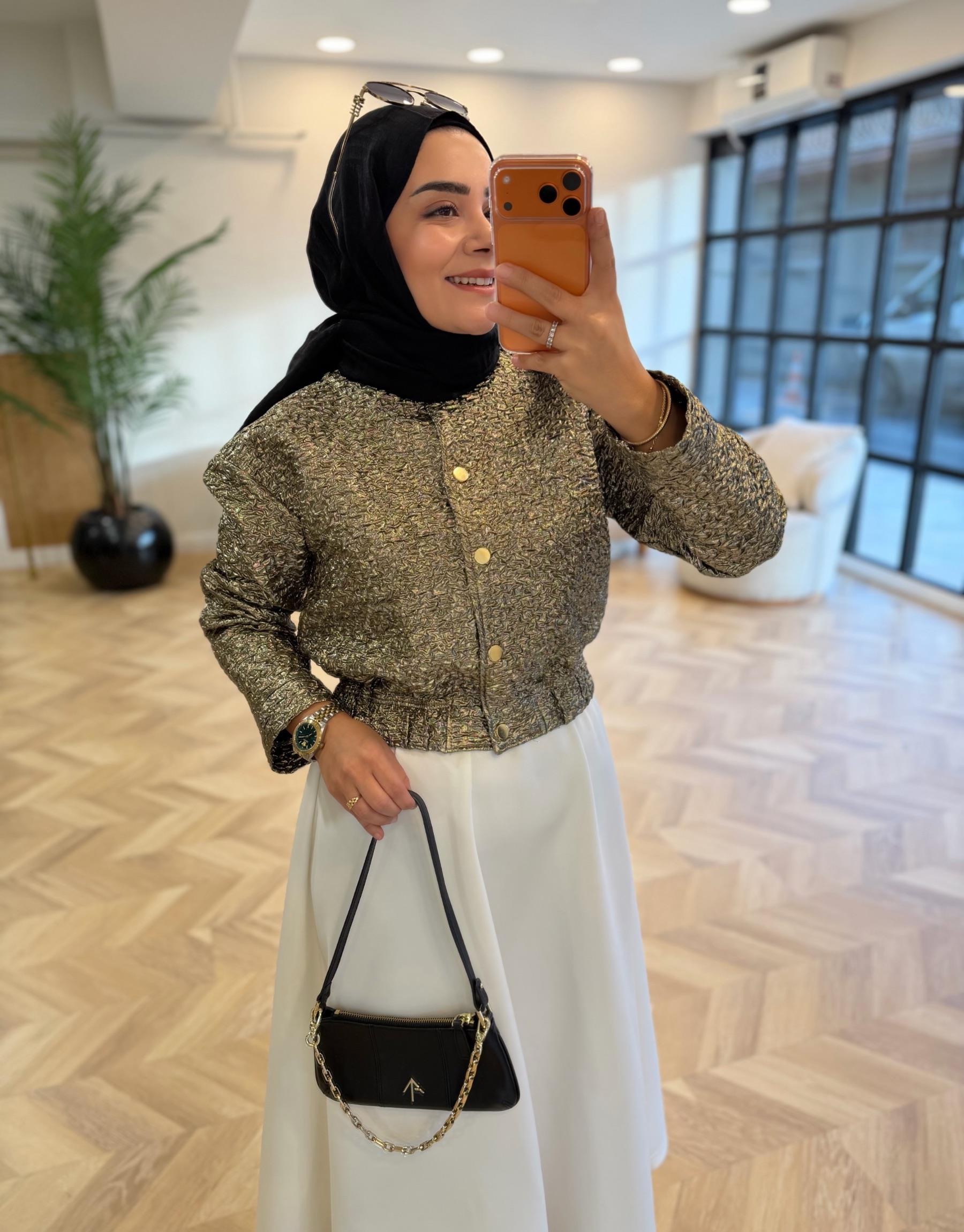 tesettur giyim Gold Jakar Ceket Butiköz
