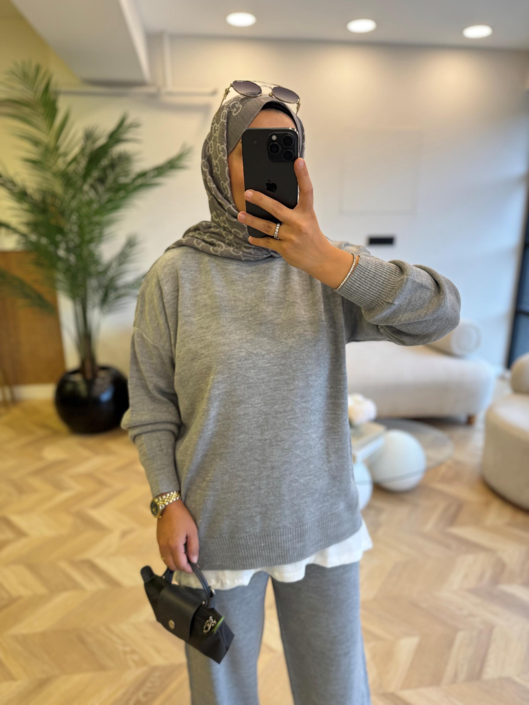 tesettur giyim Gri 4129 Triko Takım Butiköz
