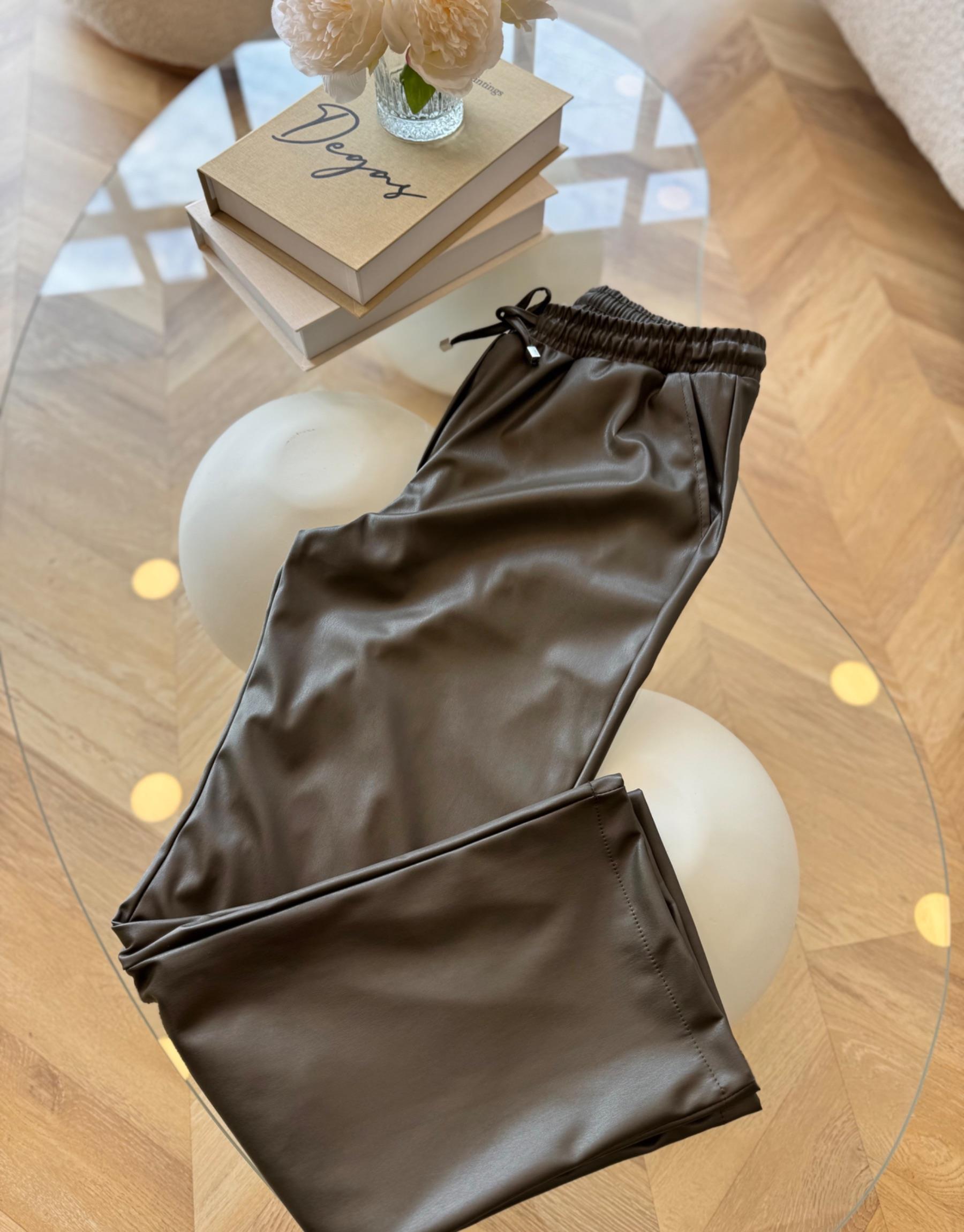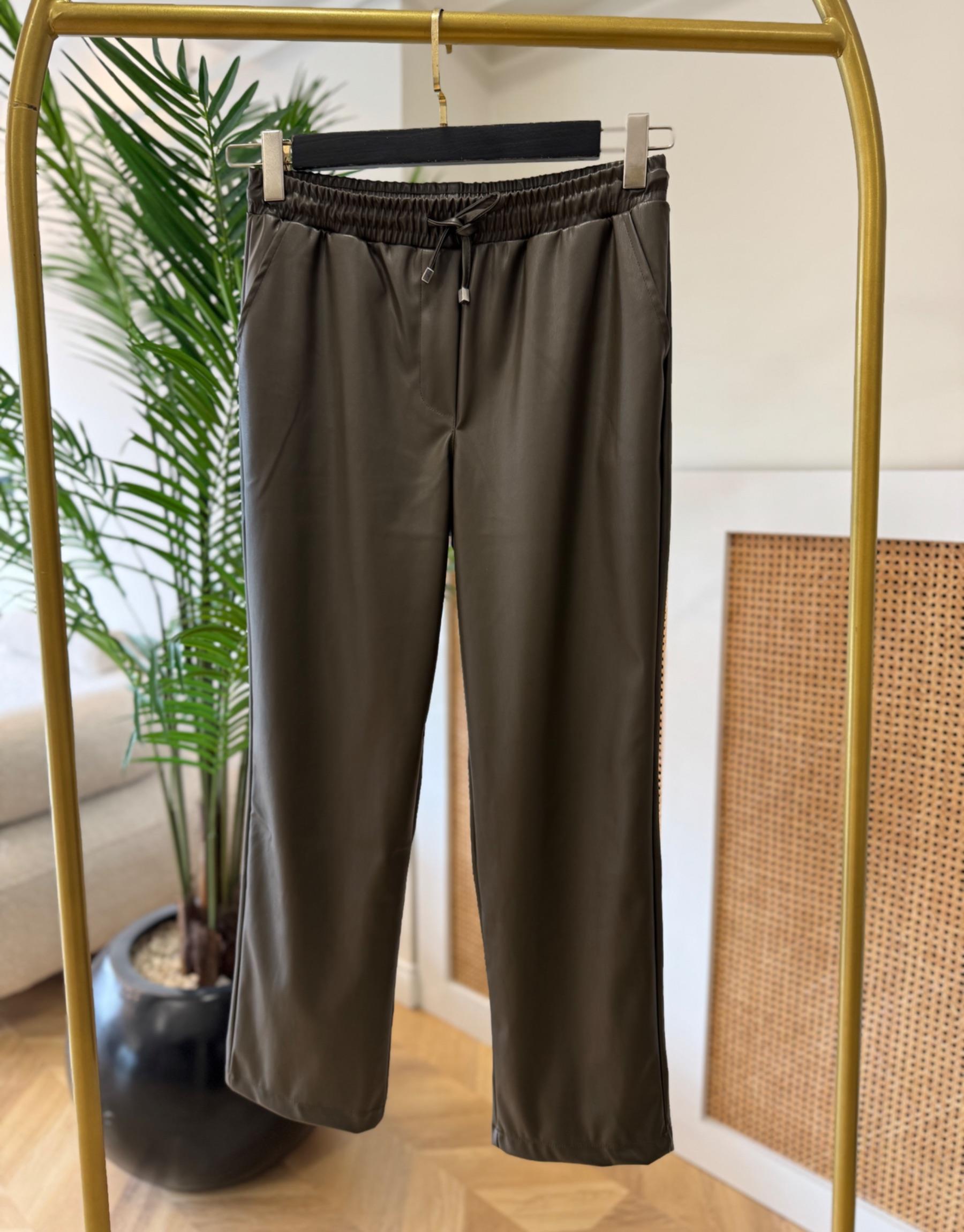 tesettur giyim Haki Beli Bağcıklı Deri Pantolon Butiköz
