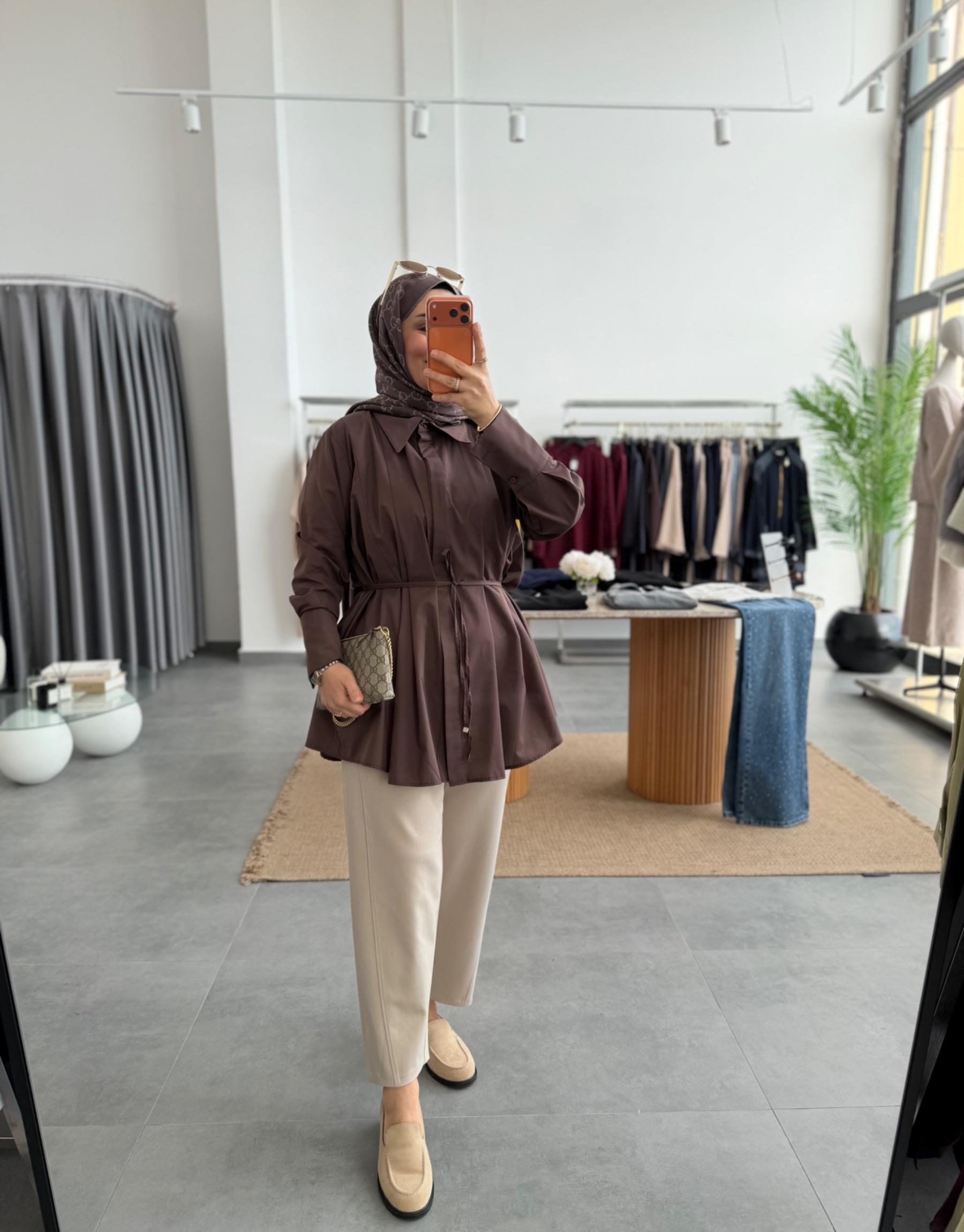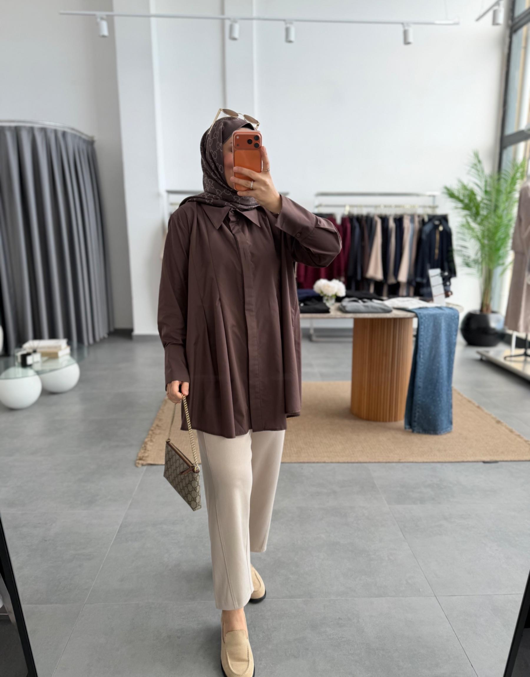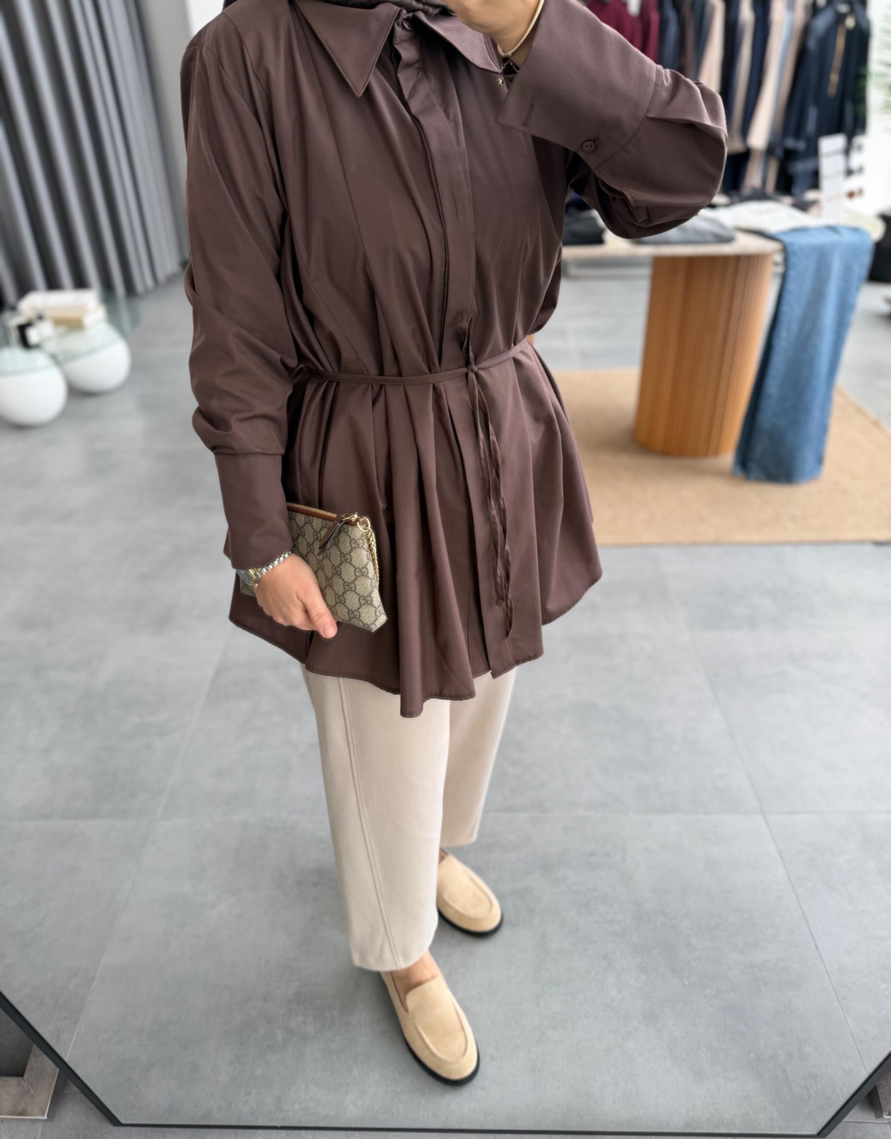 tesettur giyim Kahve 2232 Gömlek Butiköz
