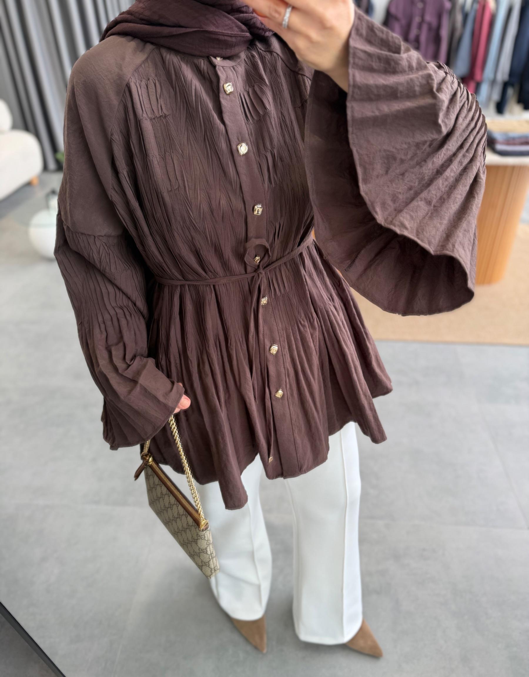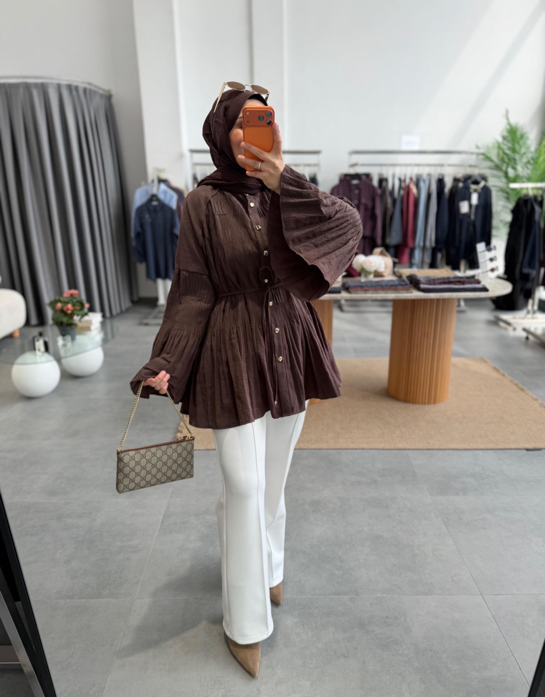 tesettur giyim Kahve 8339 Gömlek Butiköz