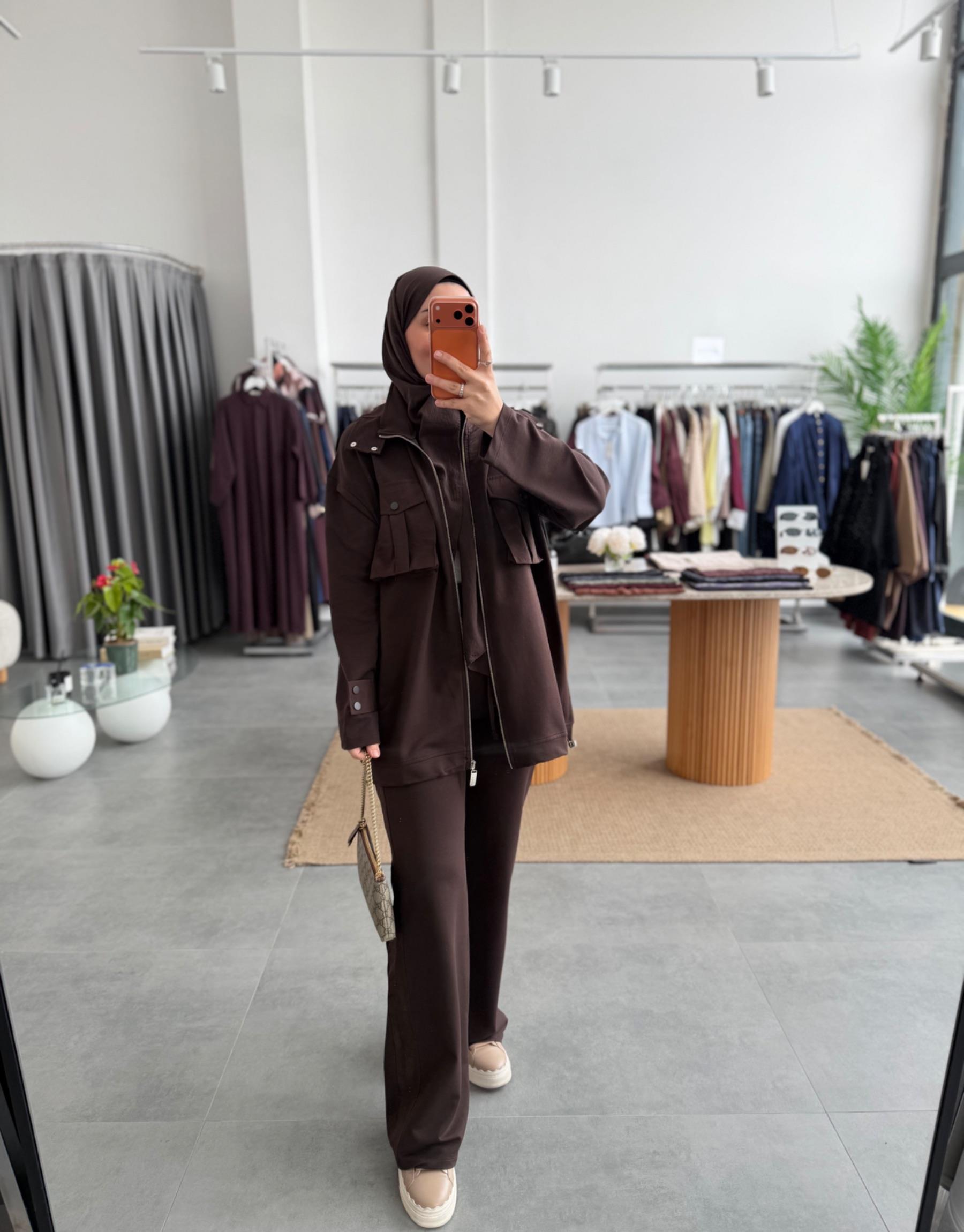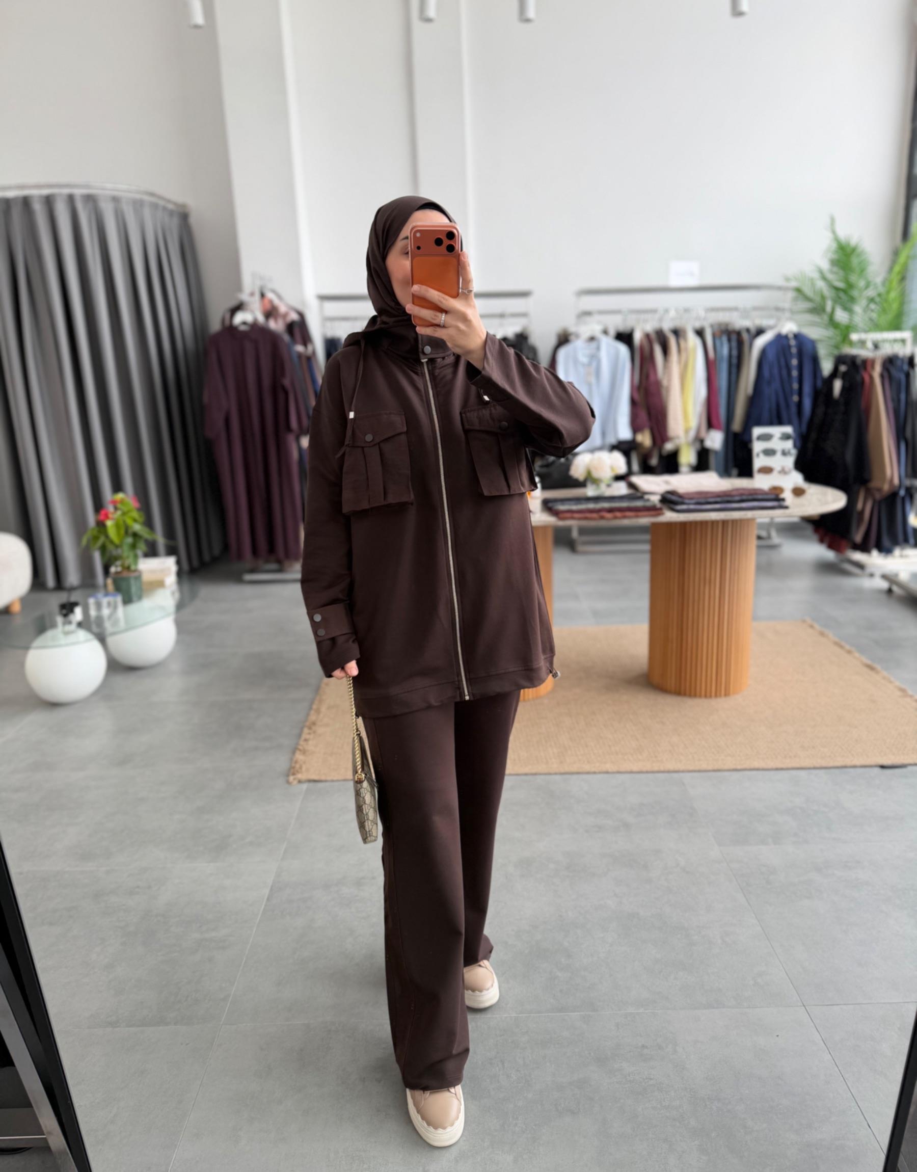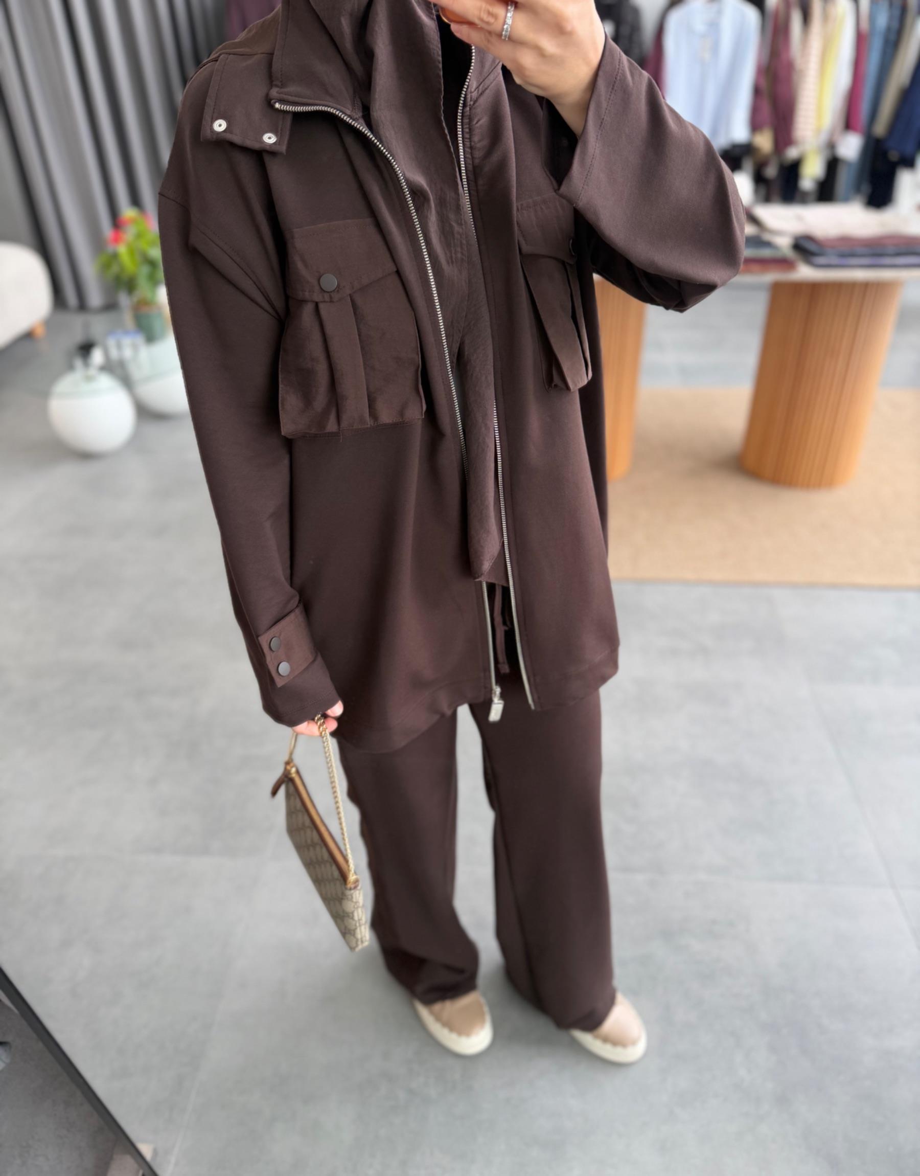 Kahve Cepli Garni Detaylı Takım