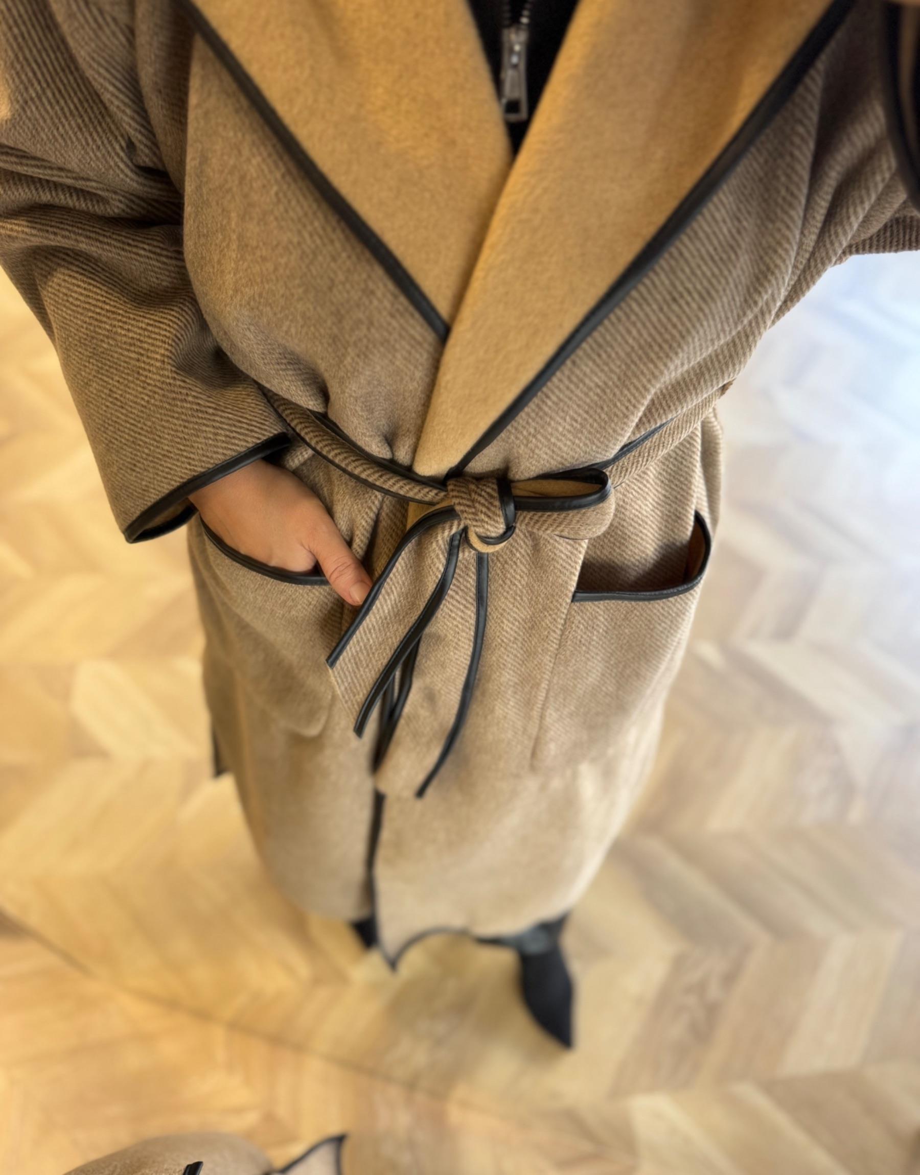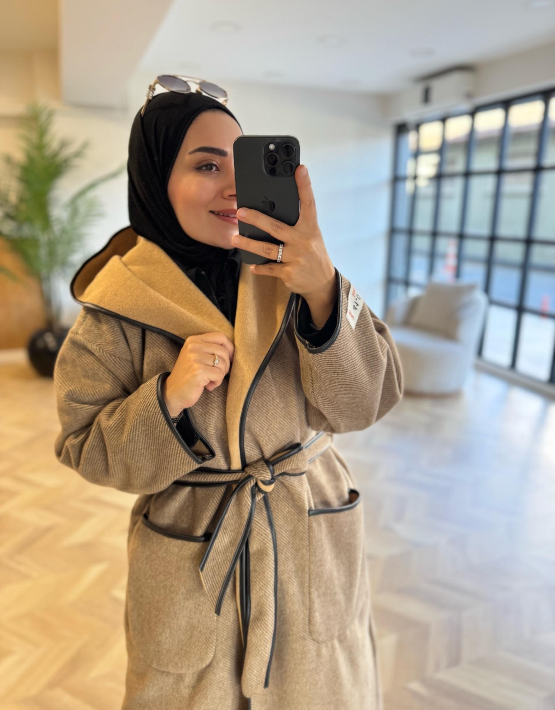 tesettur giyim Kahve Kapşonlu Palermo Kaban Butiköz