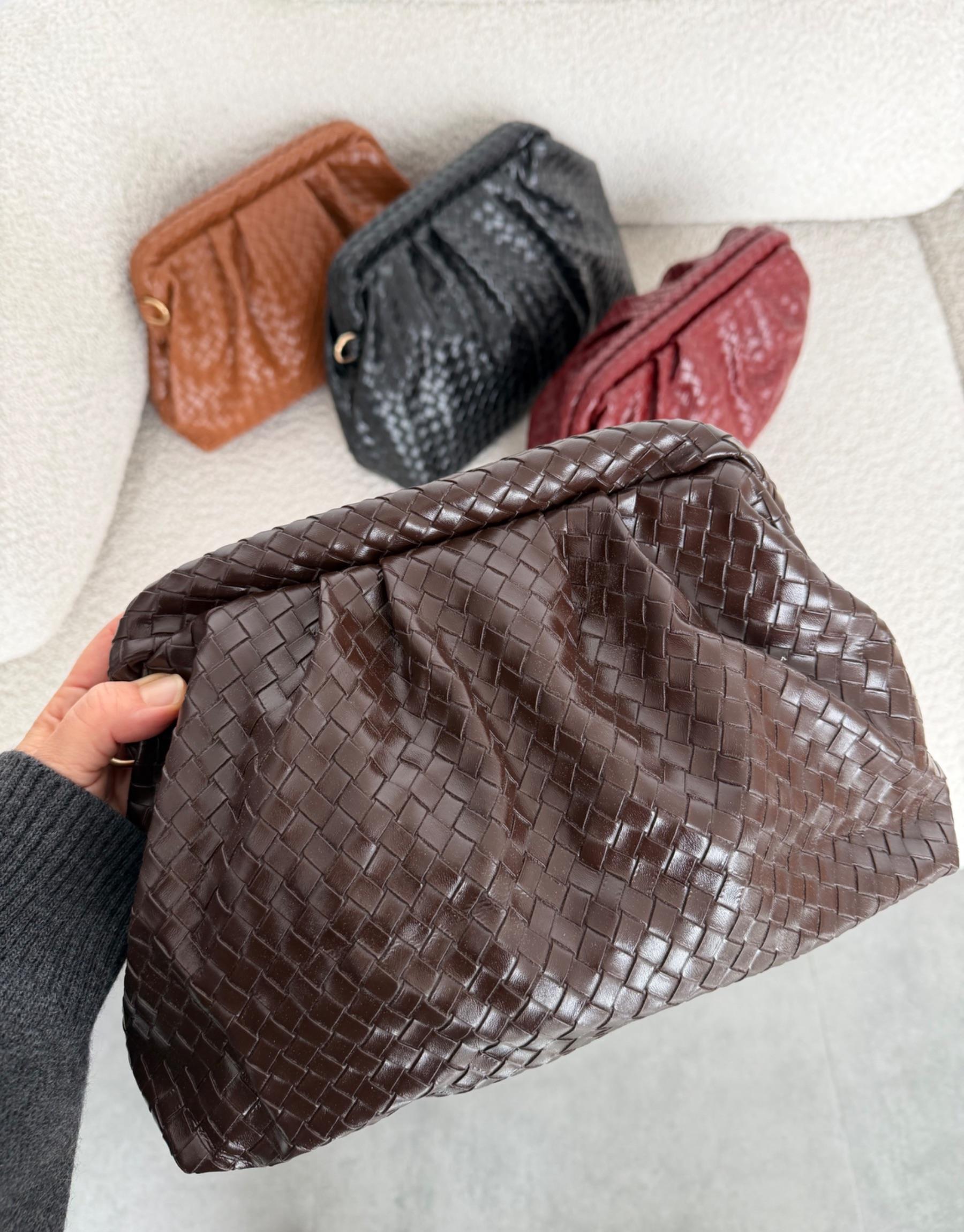 tesettur giyim Kahve Örgü Detaylı Clutch Çanta Butiköz