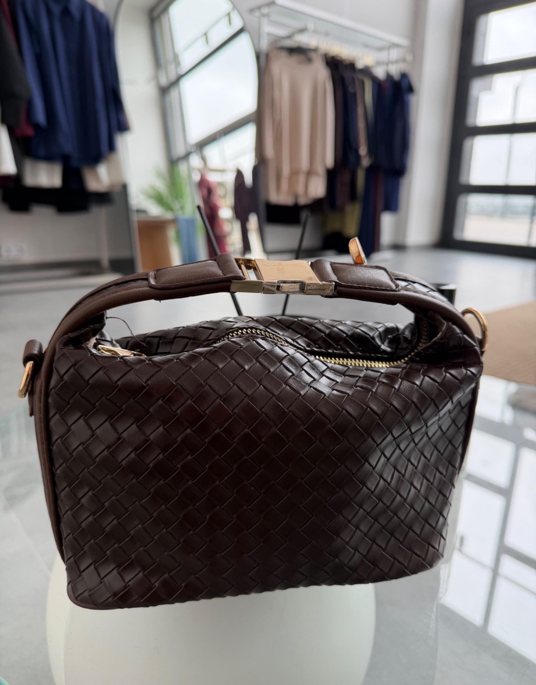 tesettur giyim Kahve Örgü Detaylı Lora Çanta Butiköz