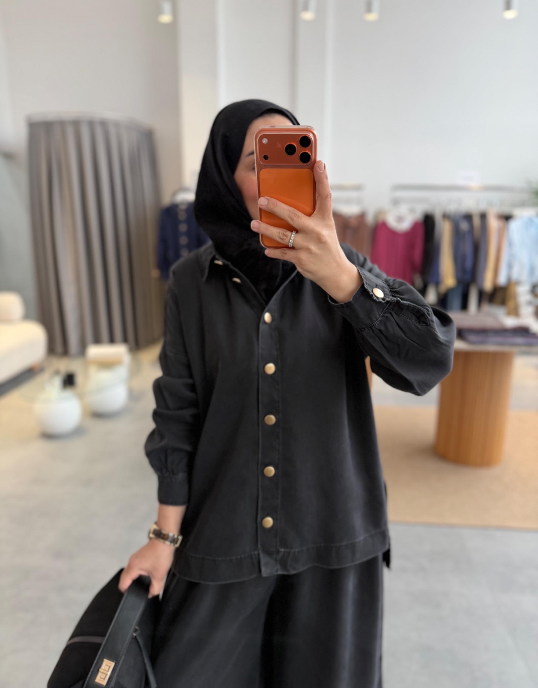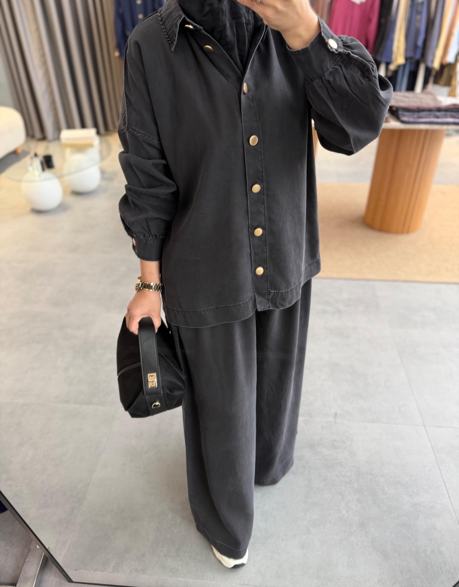 tesettur giyim Koyu Füme 6218 Tensel Pantolonlu Denim Takım Butiköz