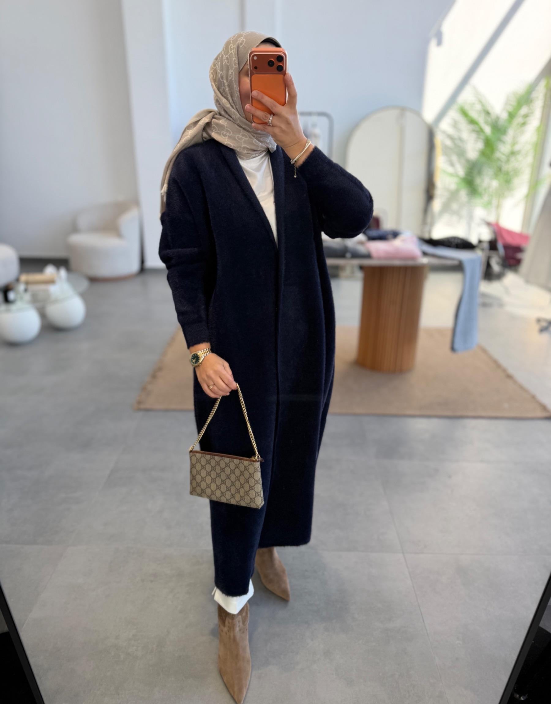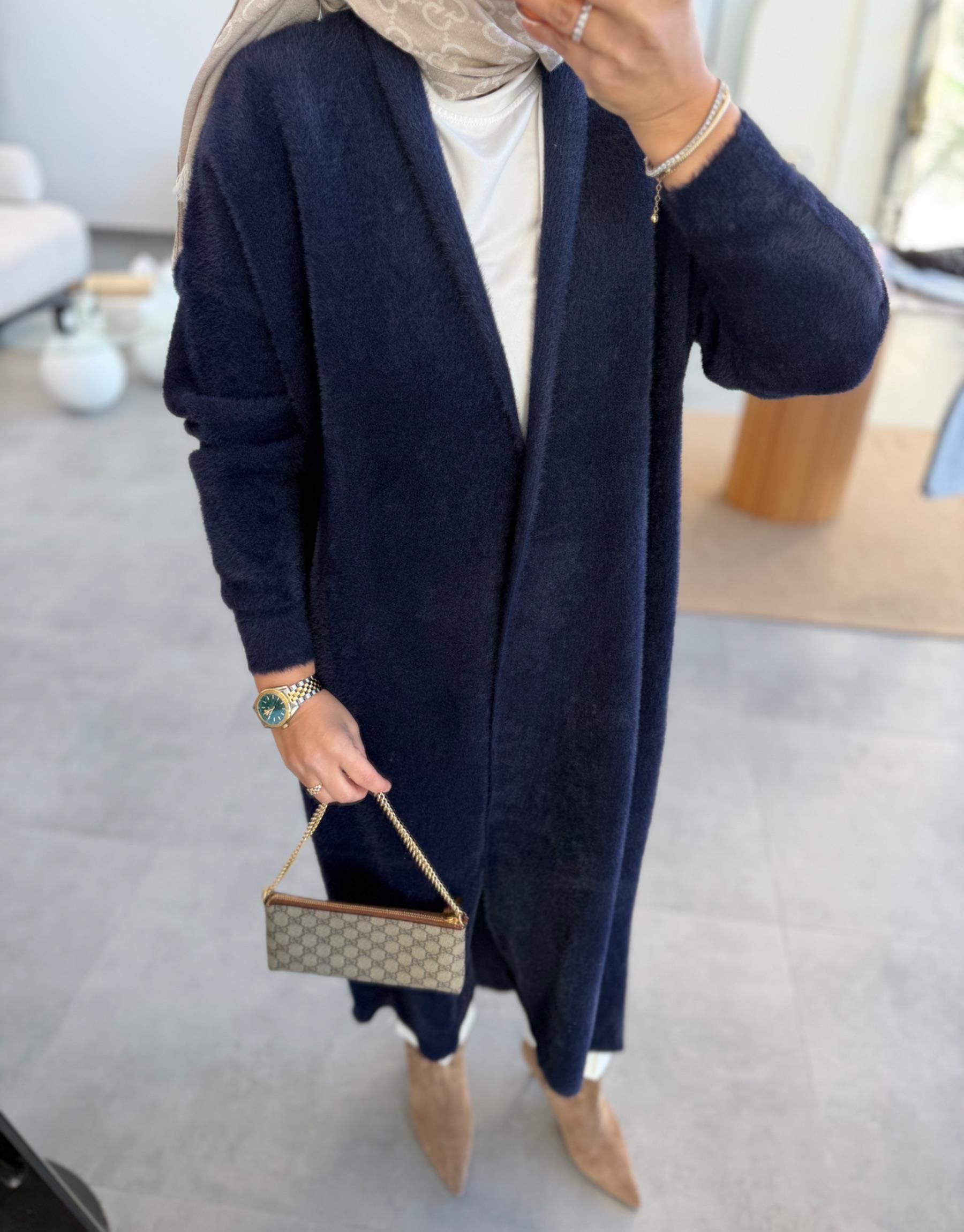 tesettur giyim Lacivert 003 Uzun Angora Hırka Butiköz