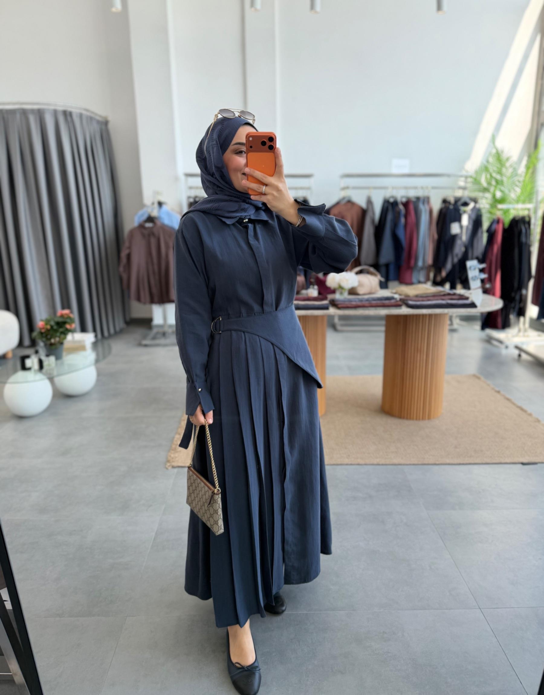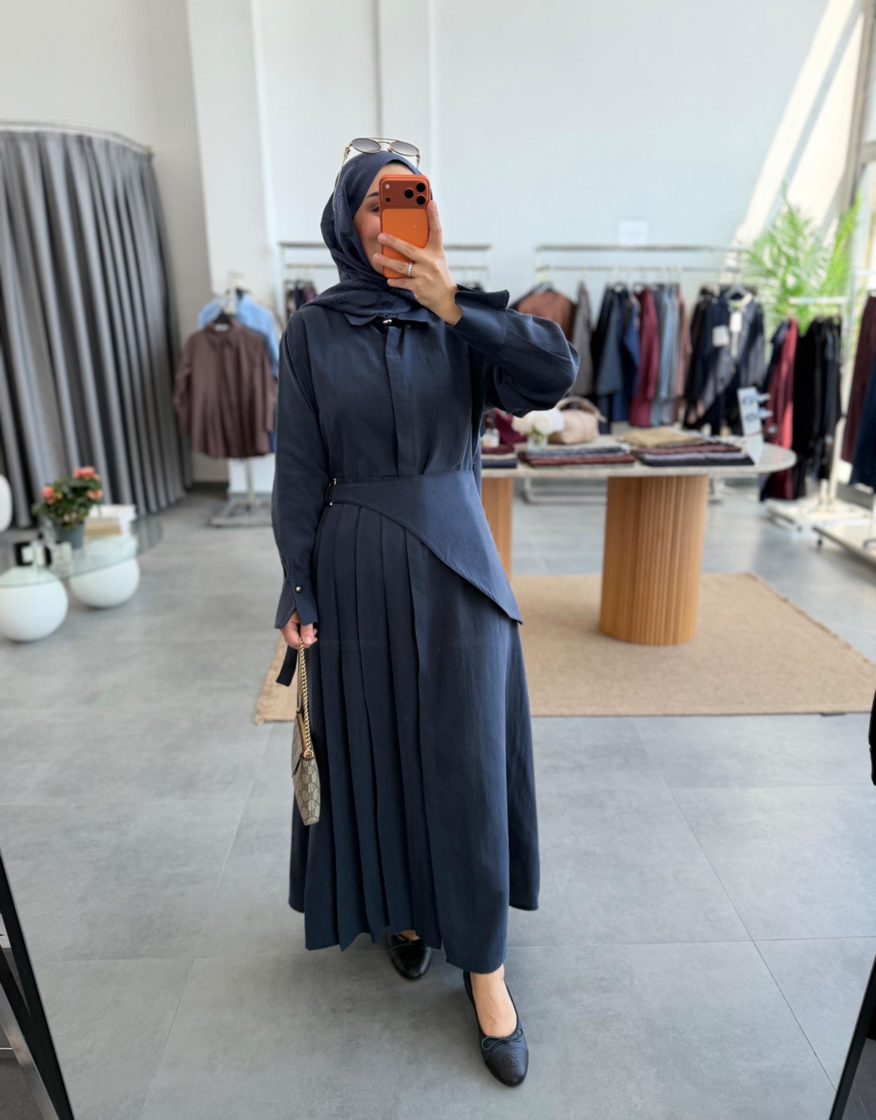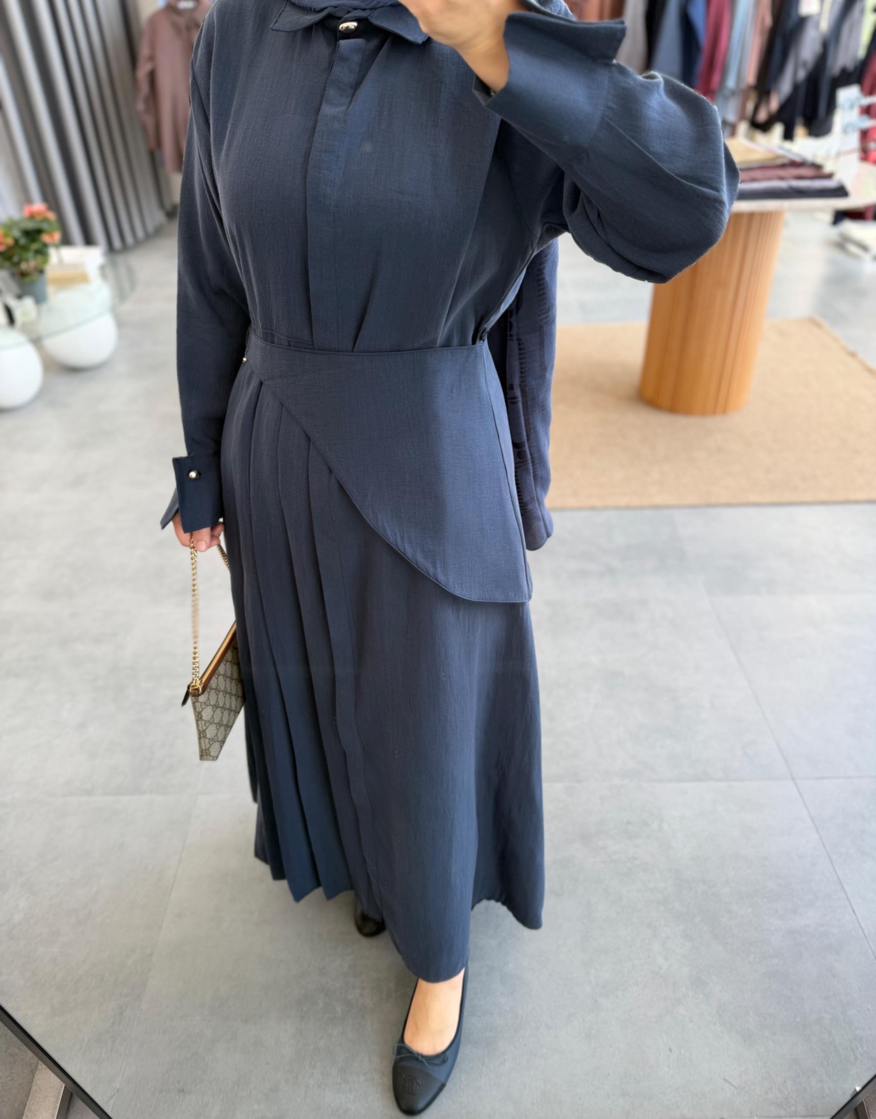 Lacivert Denim Elbise Takım