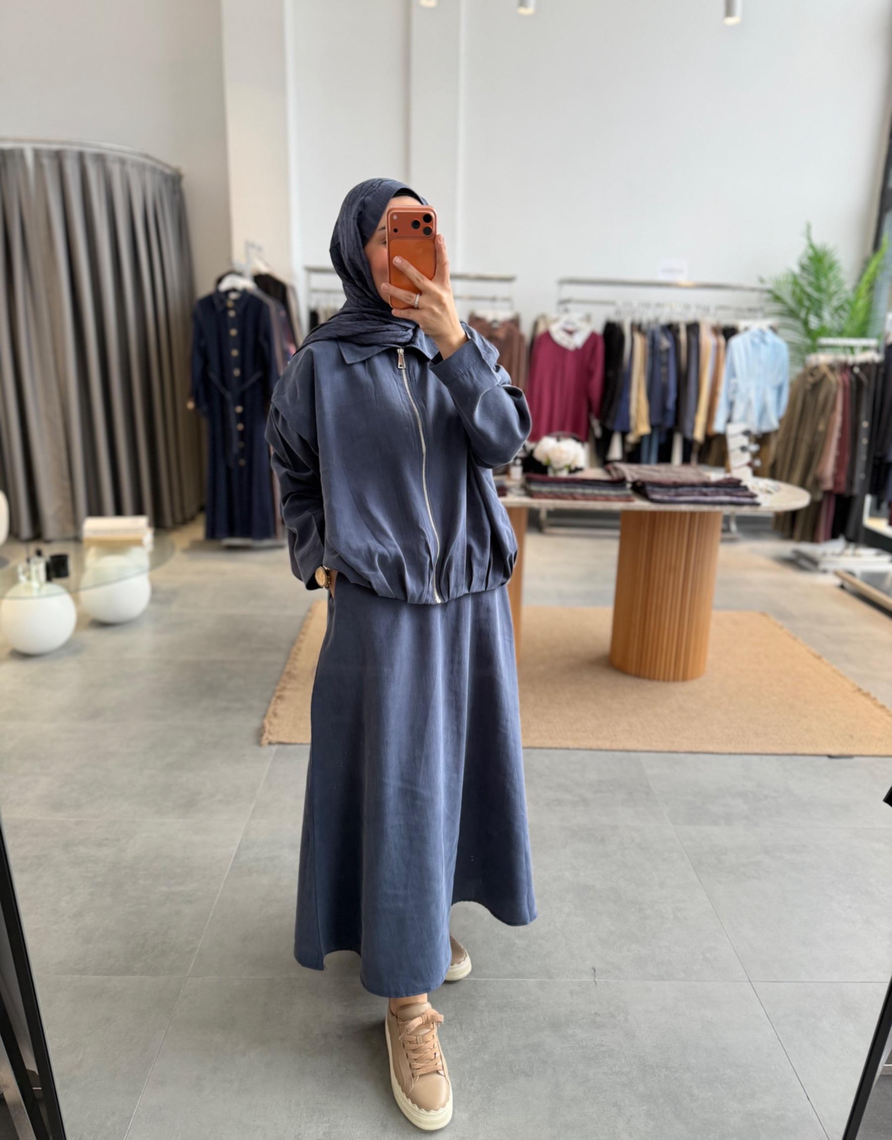tesettur giyim Lacivert 6175 Etekli Takım Butiköz