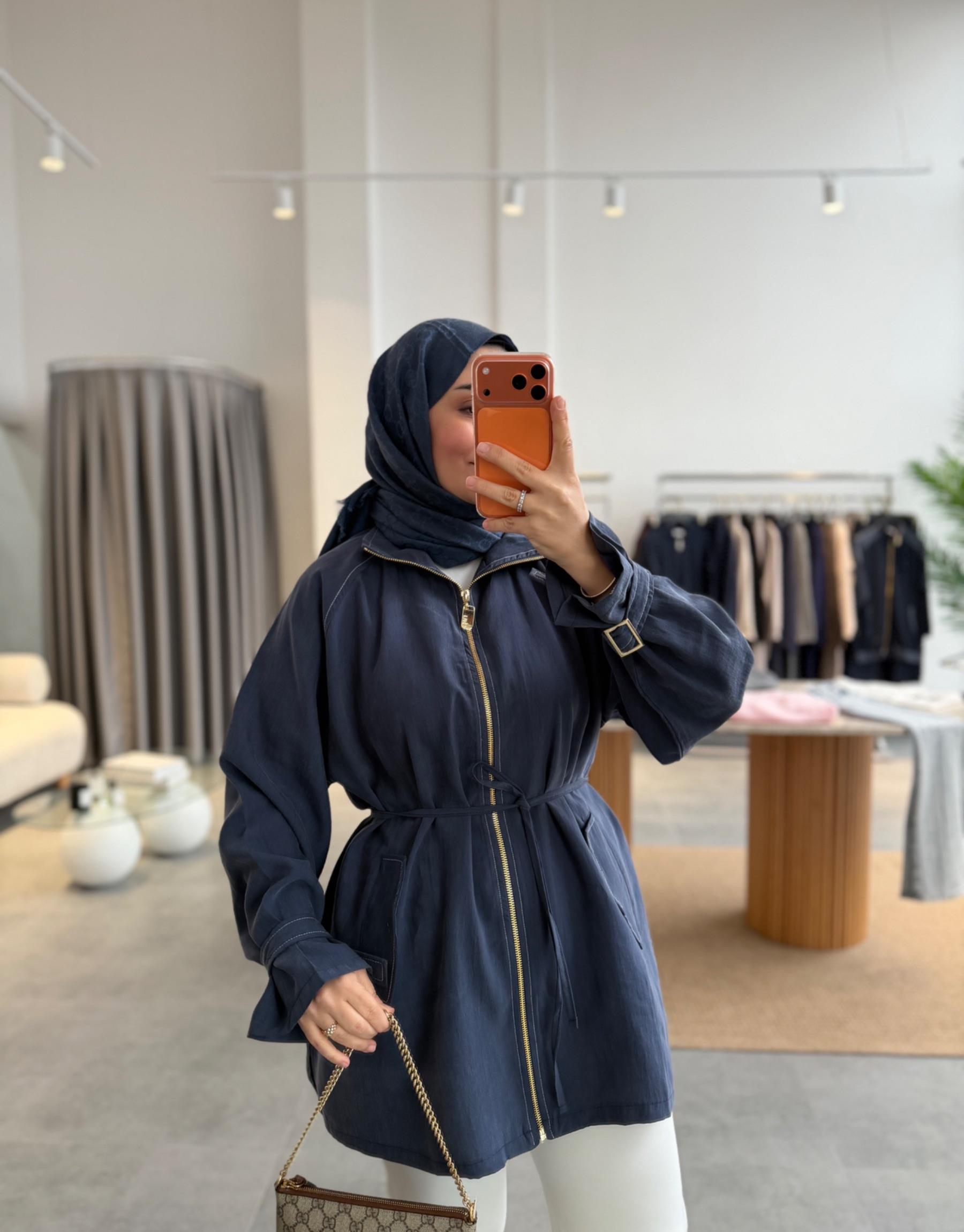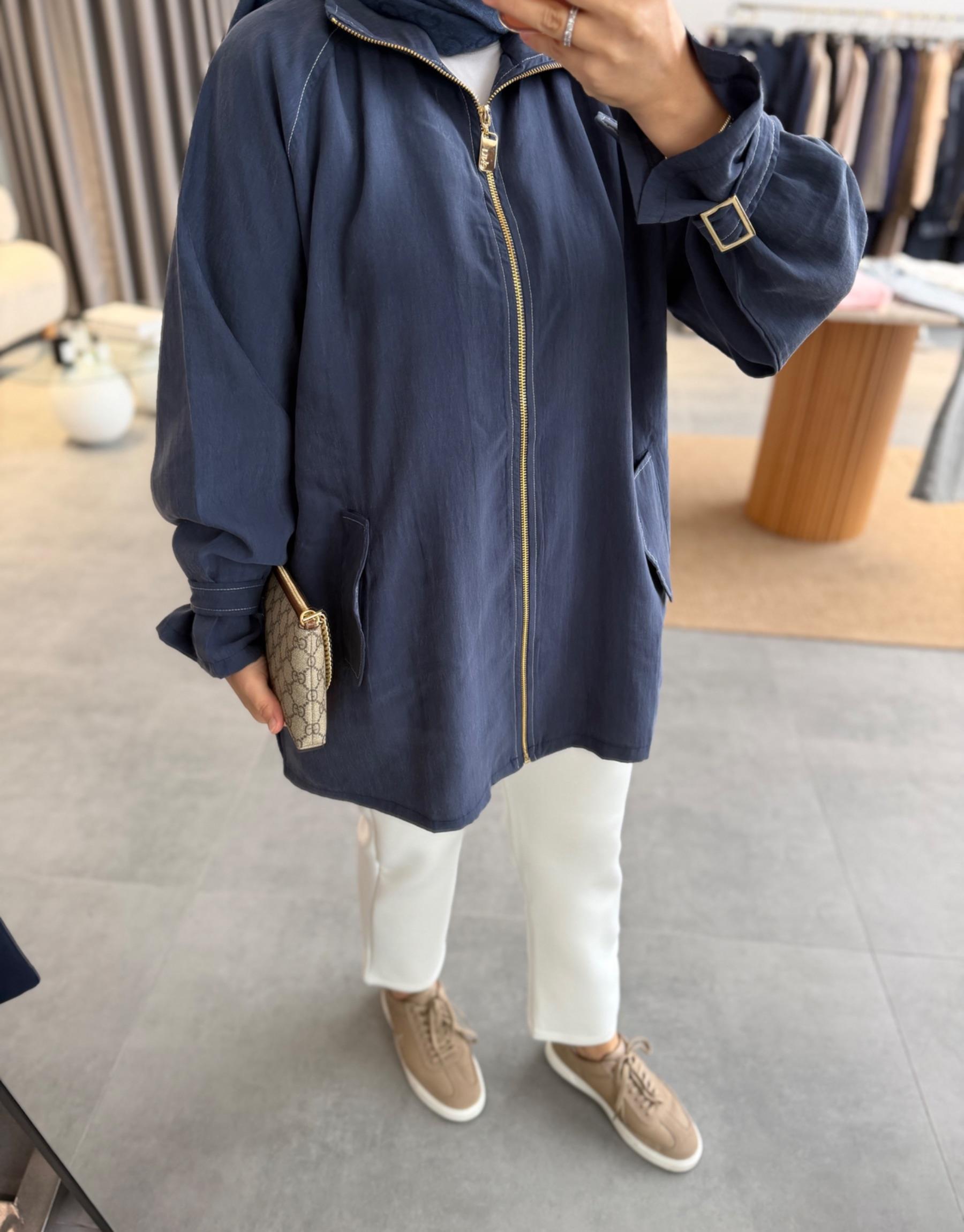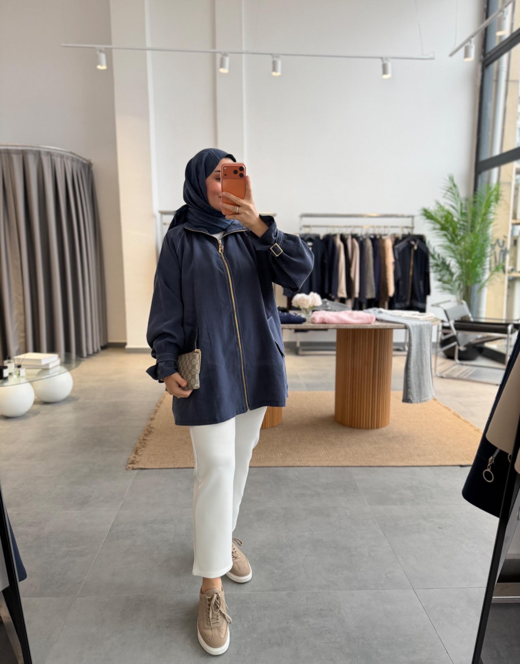 tesettur giyim Lacivert Apolet Detaylı Fermuarlı Ceket Butiköz