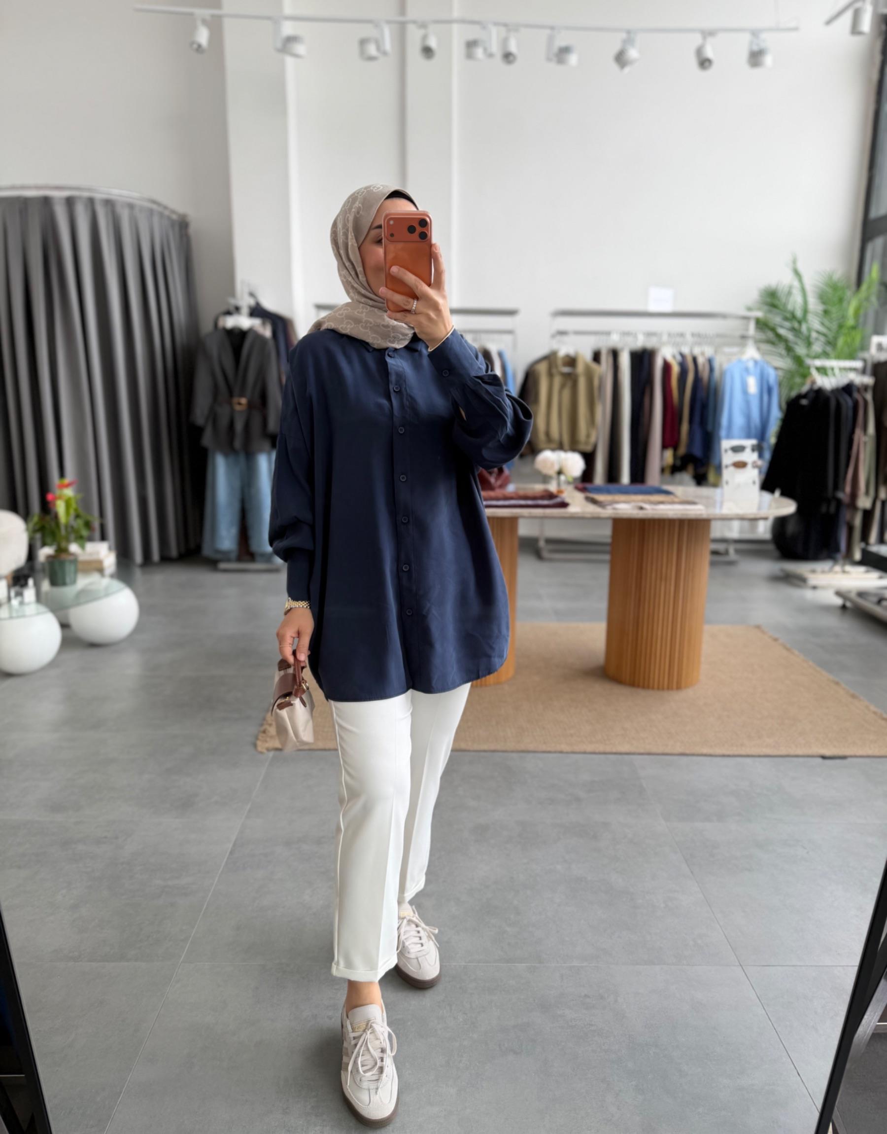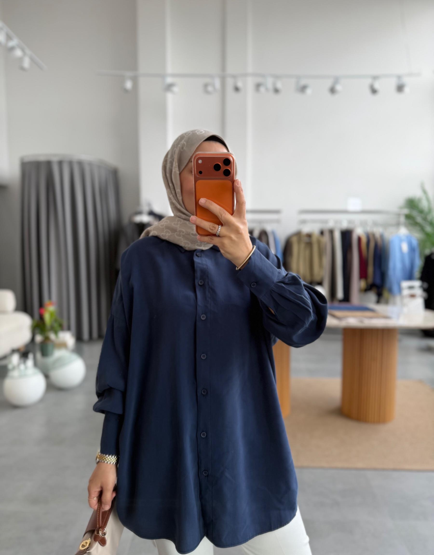 tesettur giyim Lacivert Basic Oversize Gömlek Butiköz