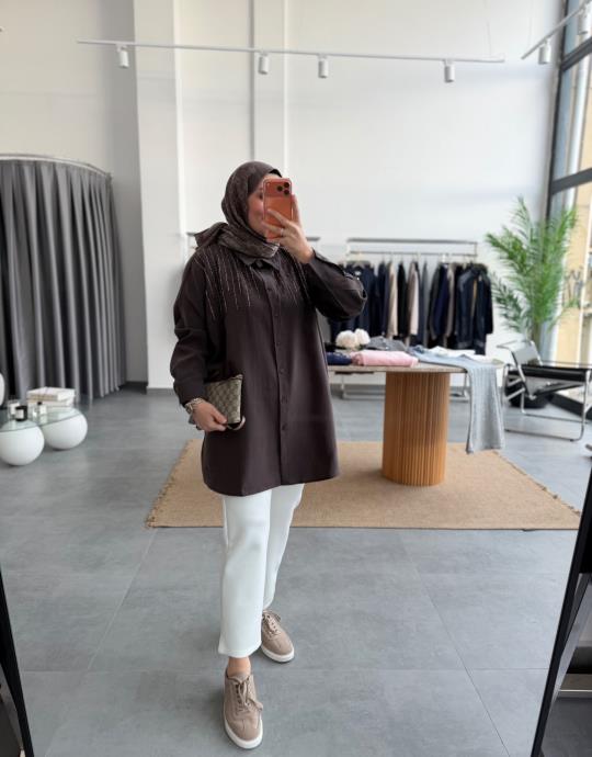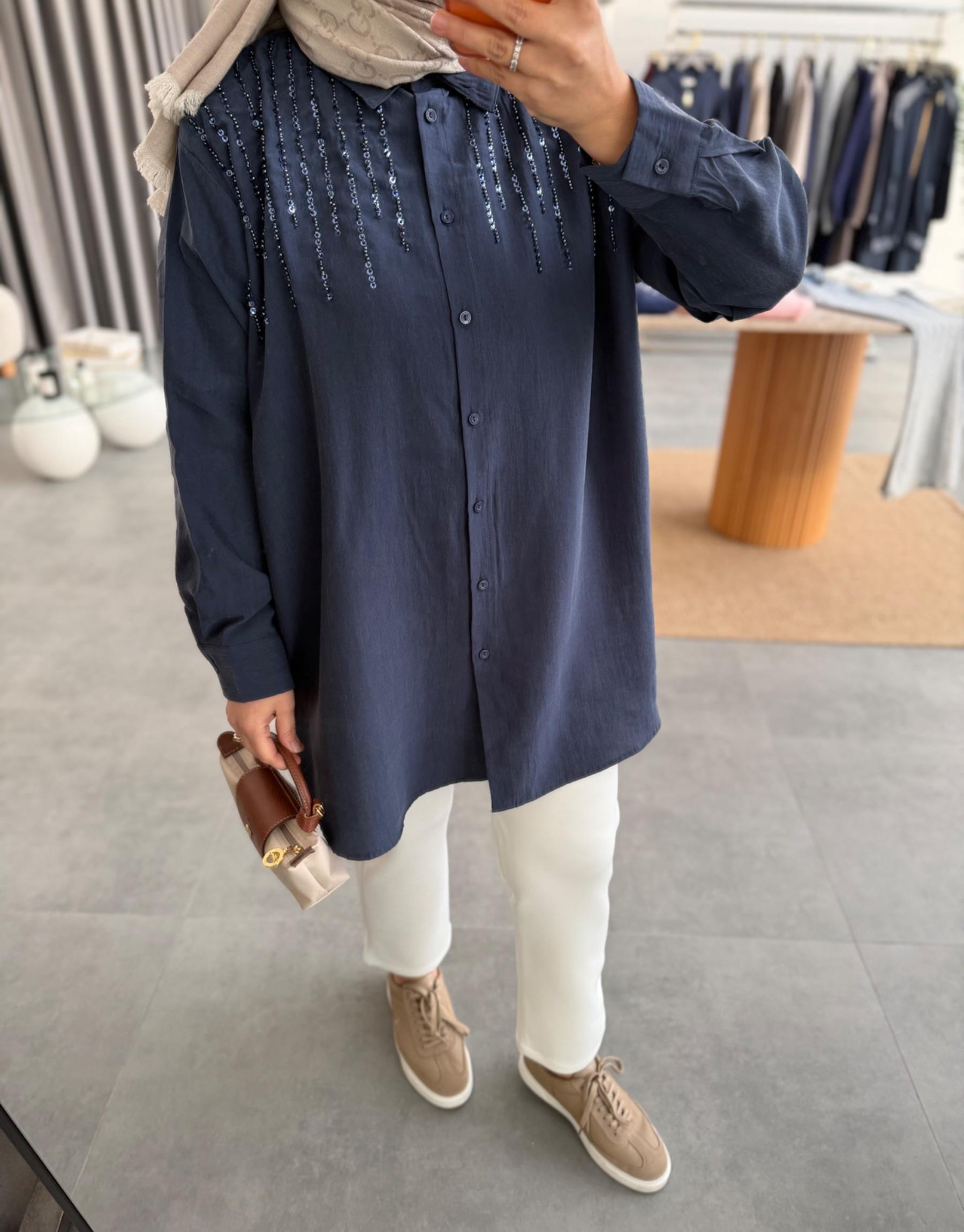 tesettur giyim Lacivert Boncuk İşlemeli Gömlek Butiköz