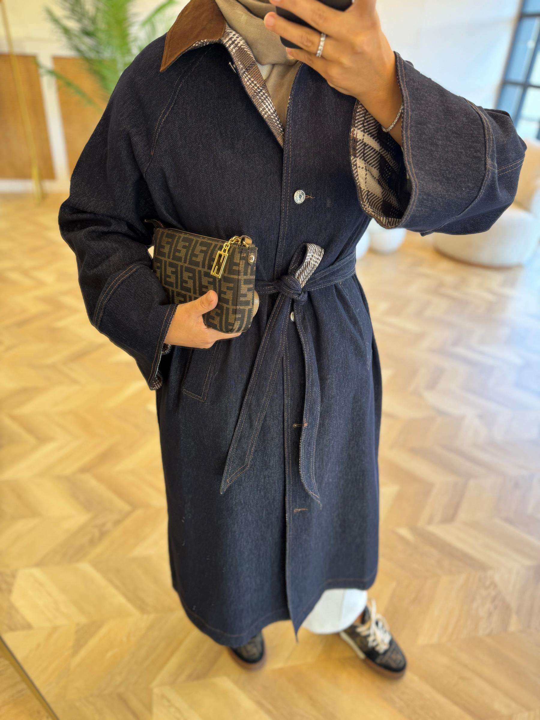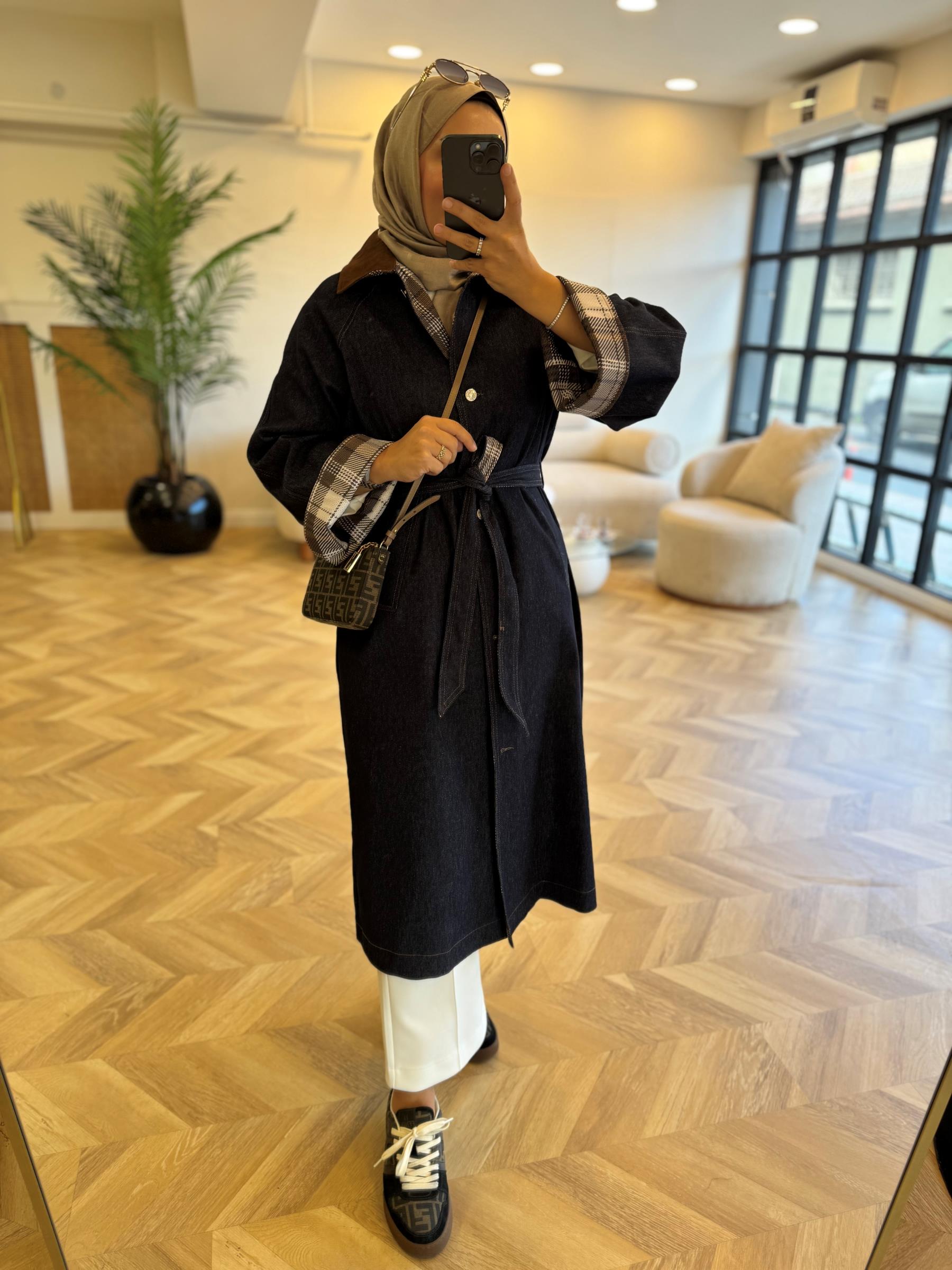 tesettur giyim Lacivert Denim Trench Butiköz