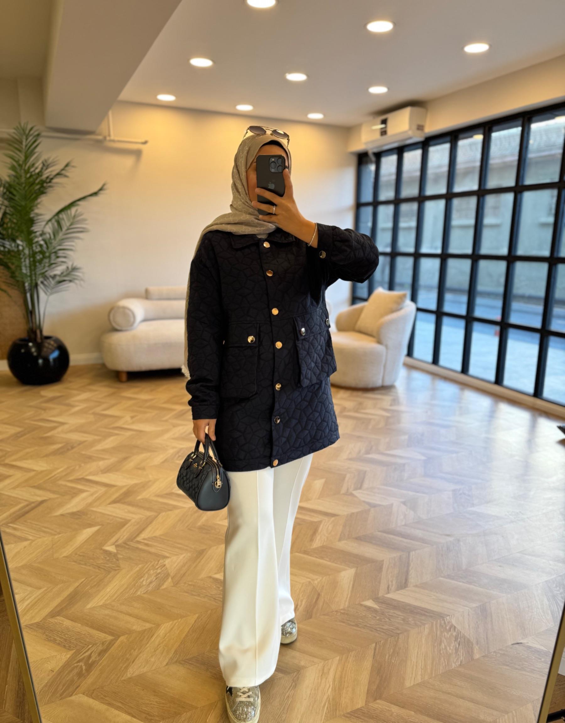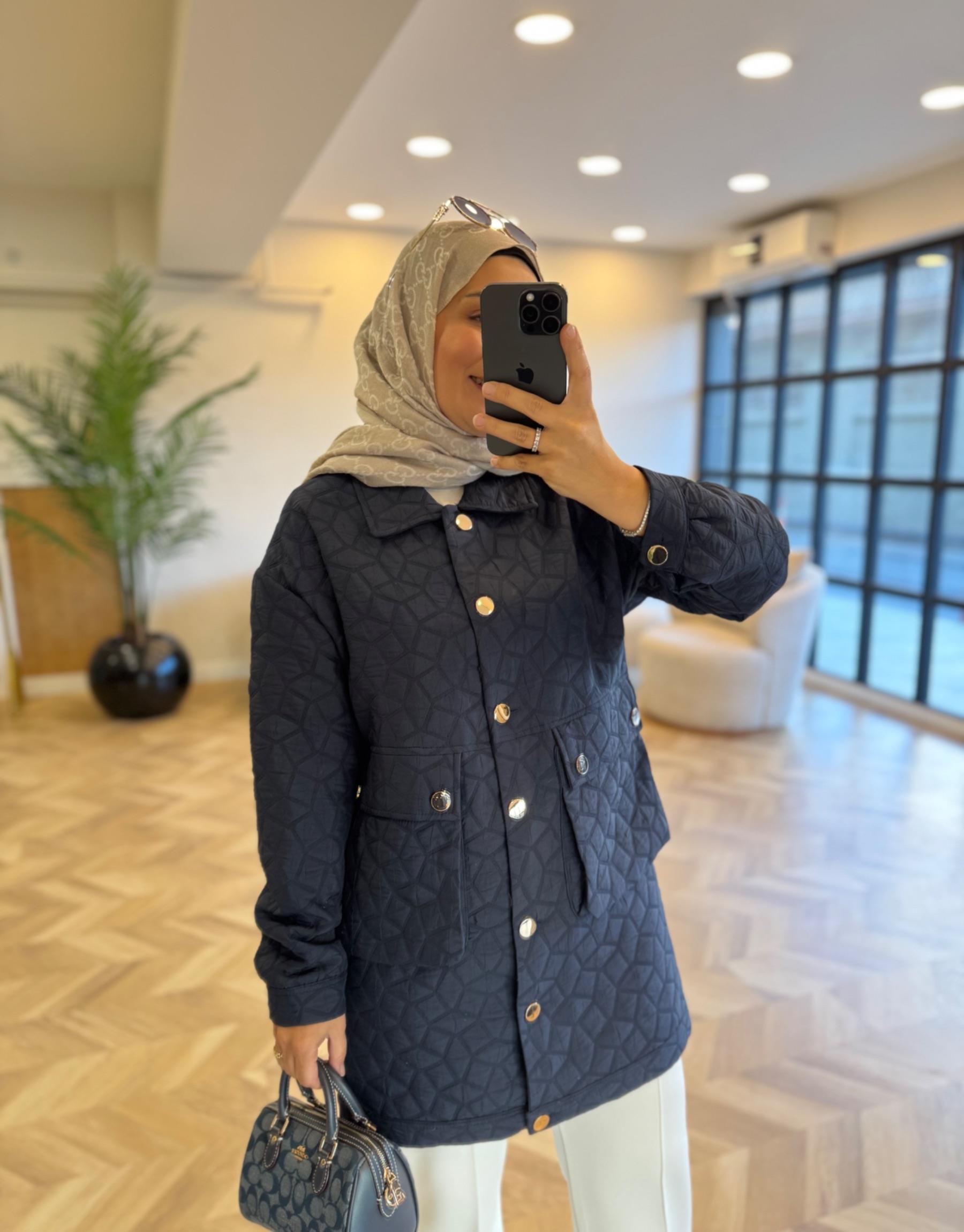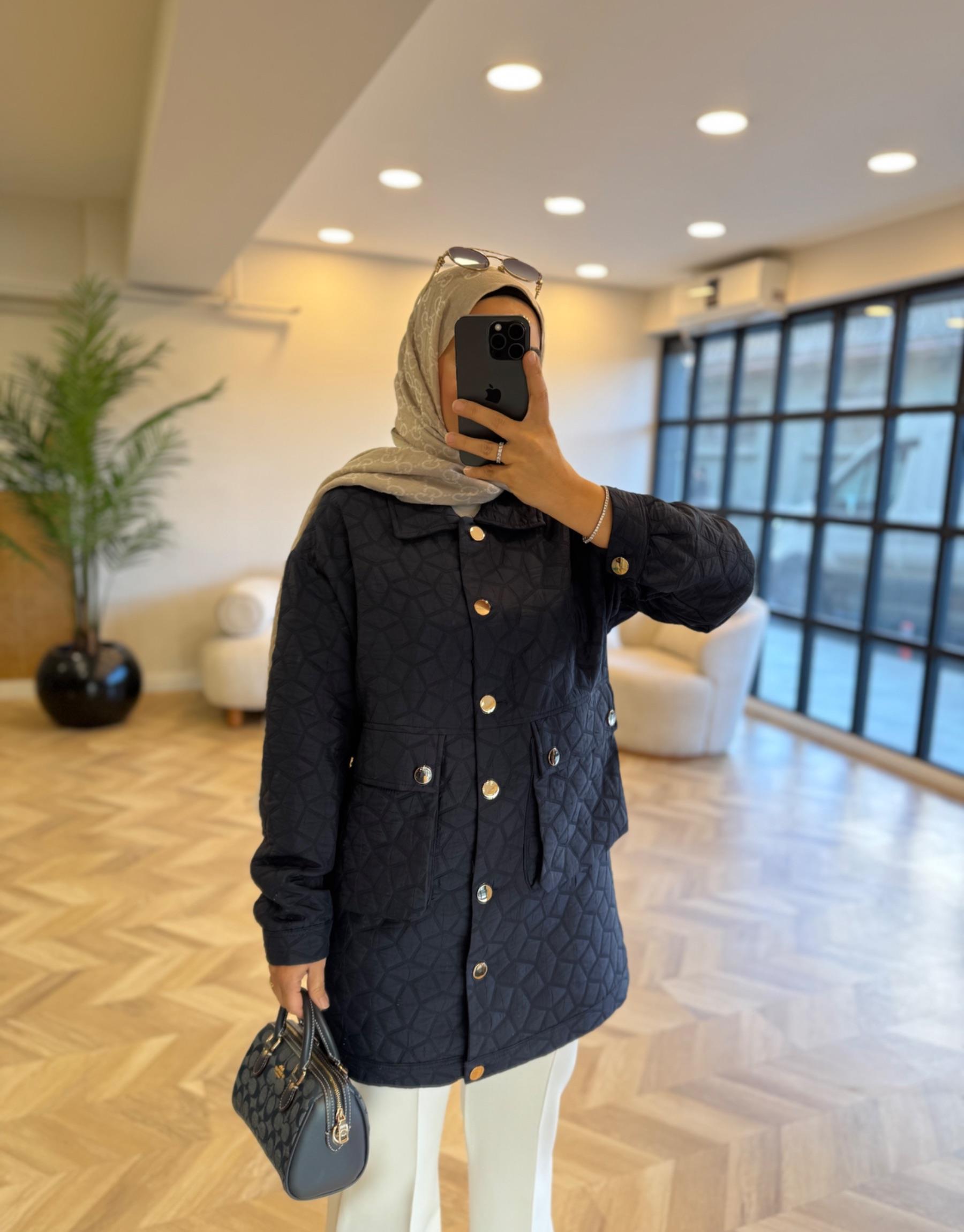 tesettur giyim Lacivert Kapitone Mont Butiköz