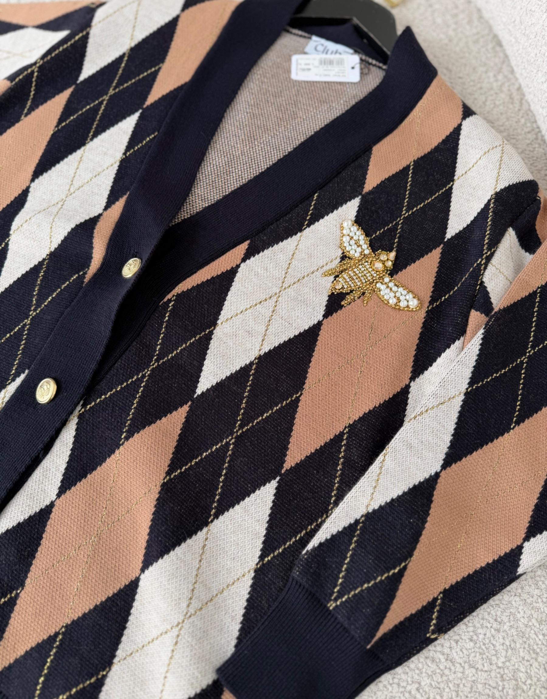Lacivert Kuş Detaylı Muadil Hırka