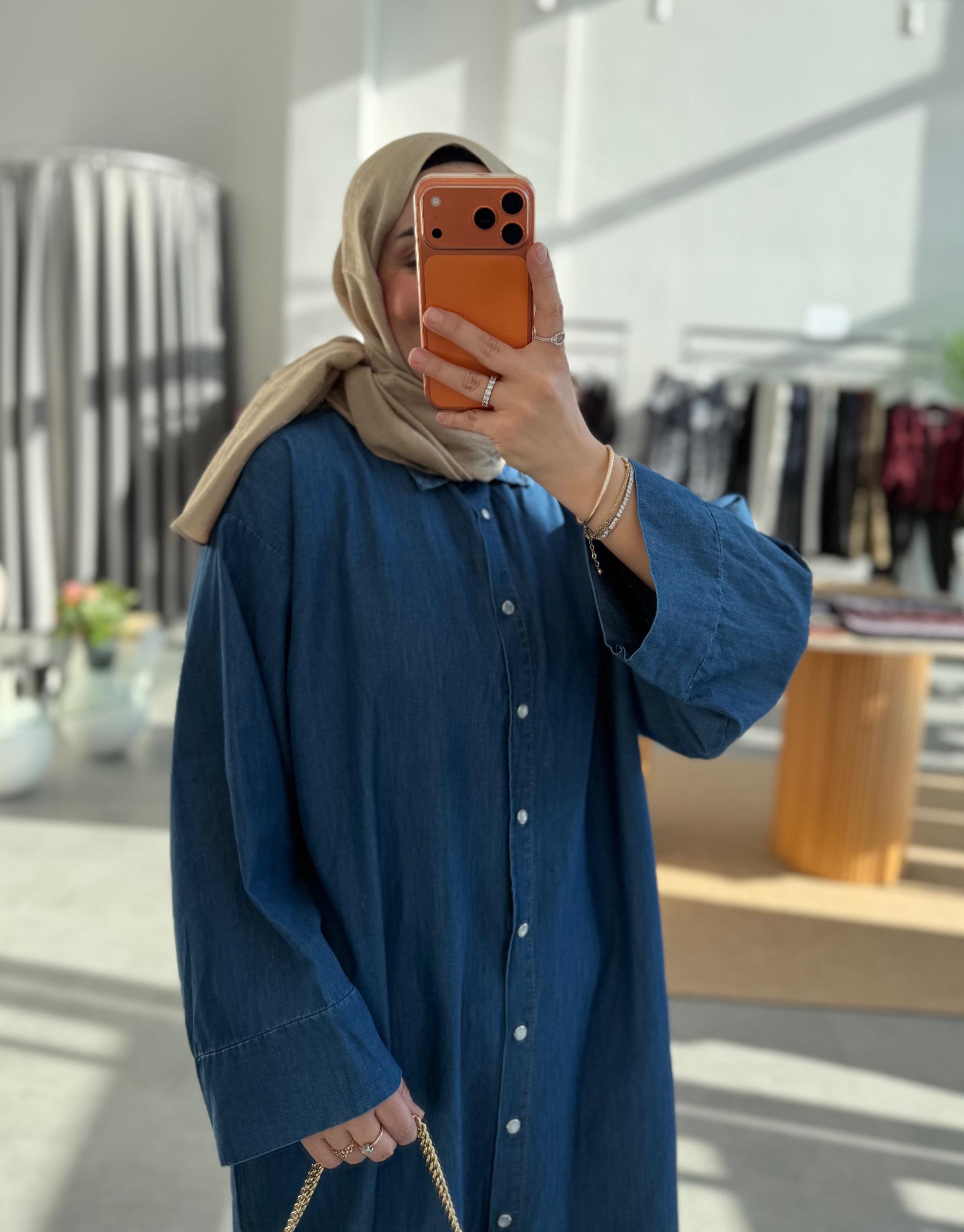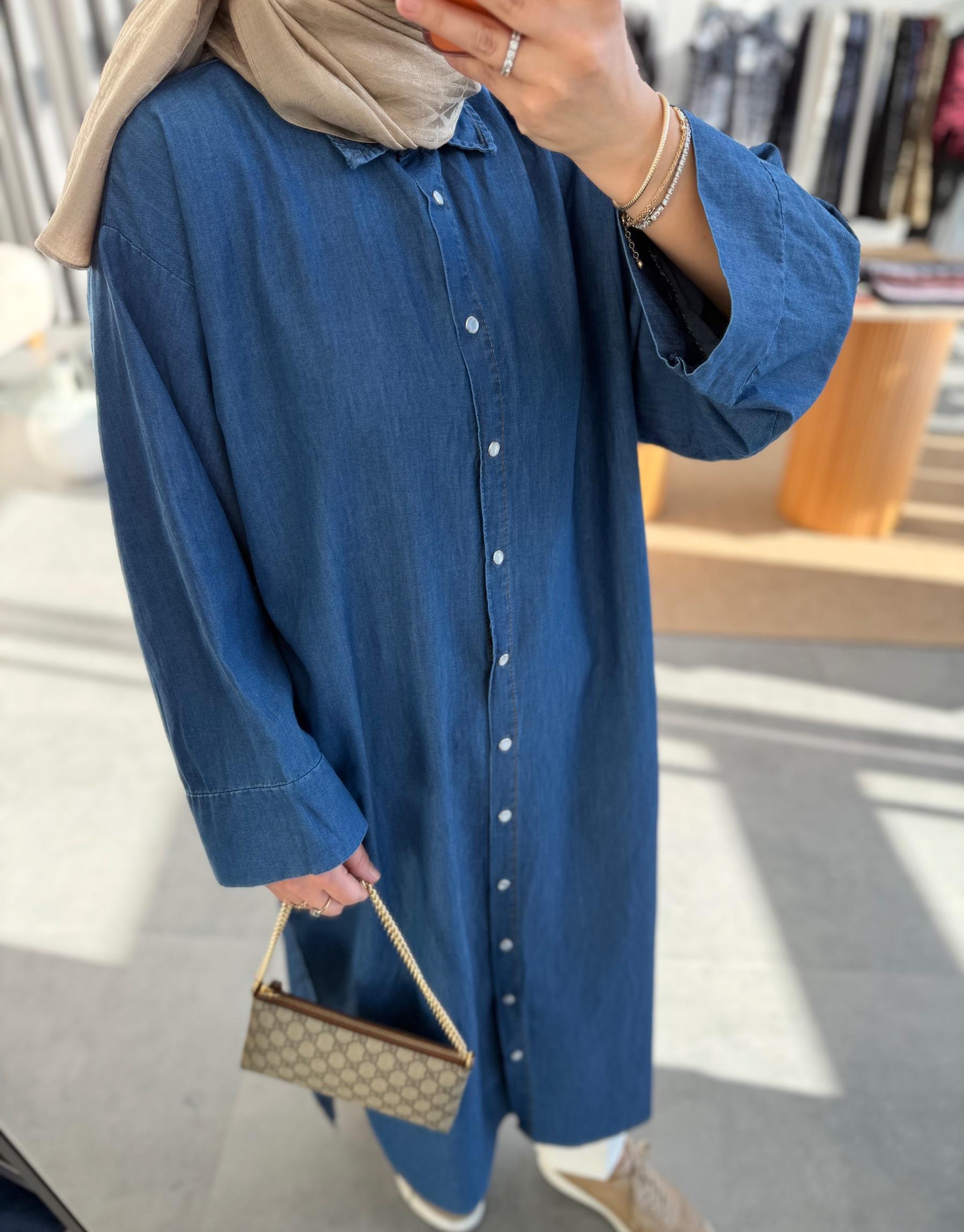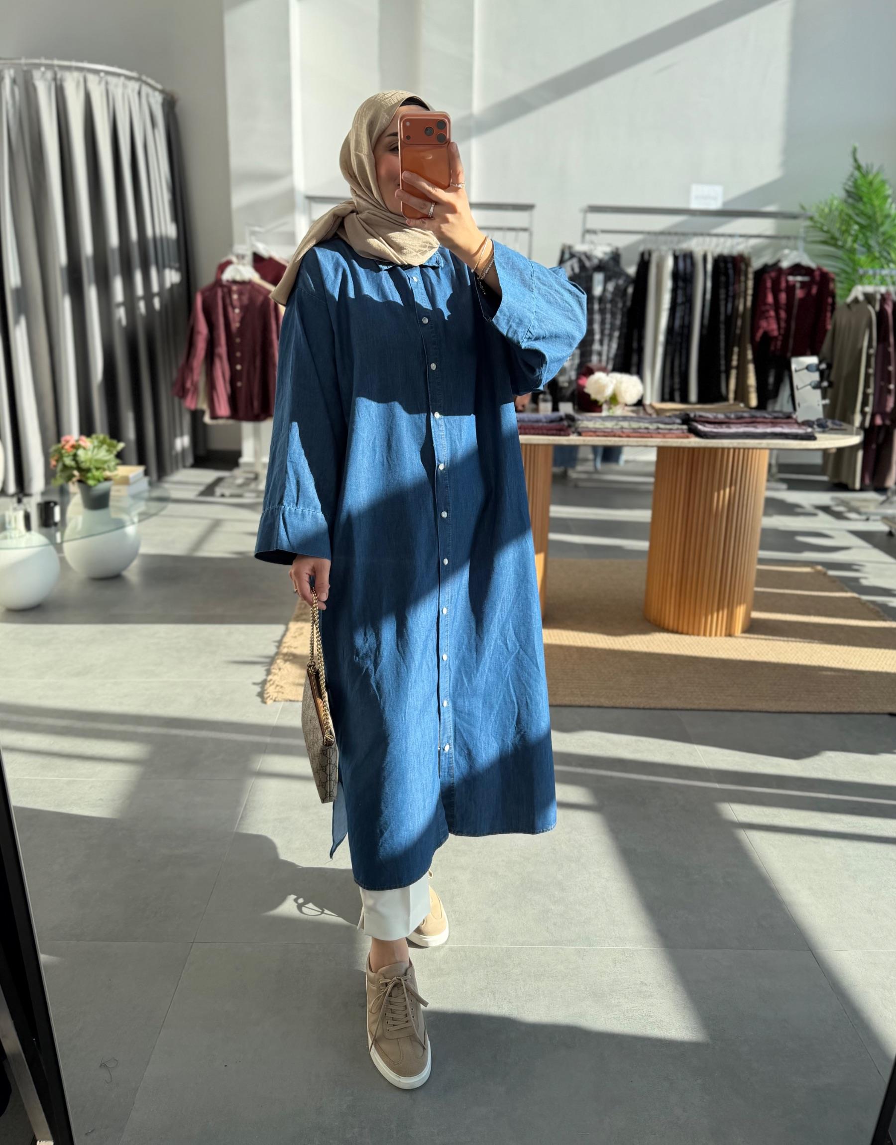 tesettur giyim Mavi 3129 Yazlık Tensel Arabot Gömlek Kap Butiköz