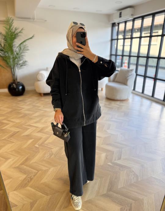 Siyah Lima Pantolonlu Denim Takım