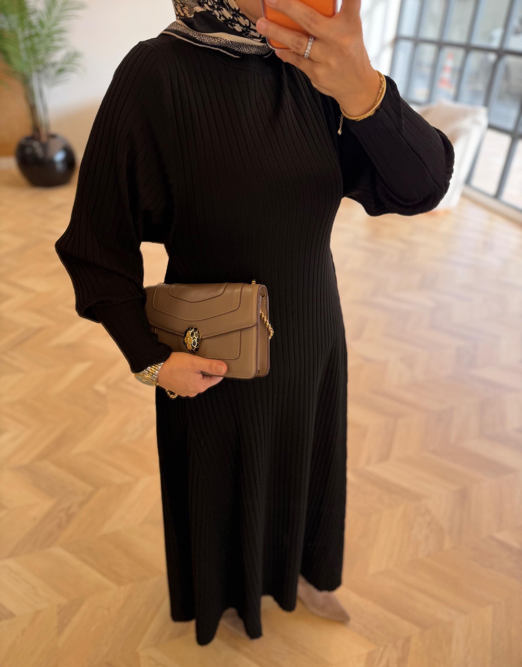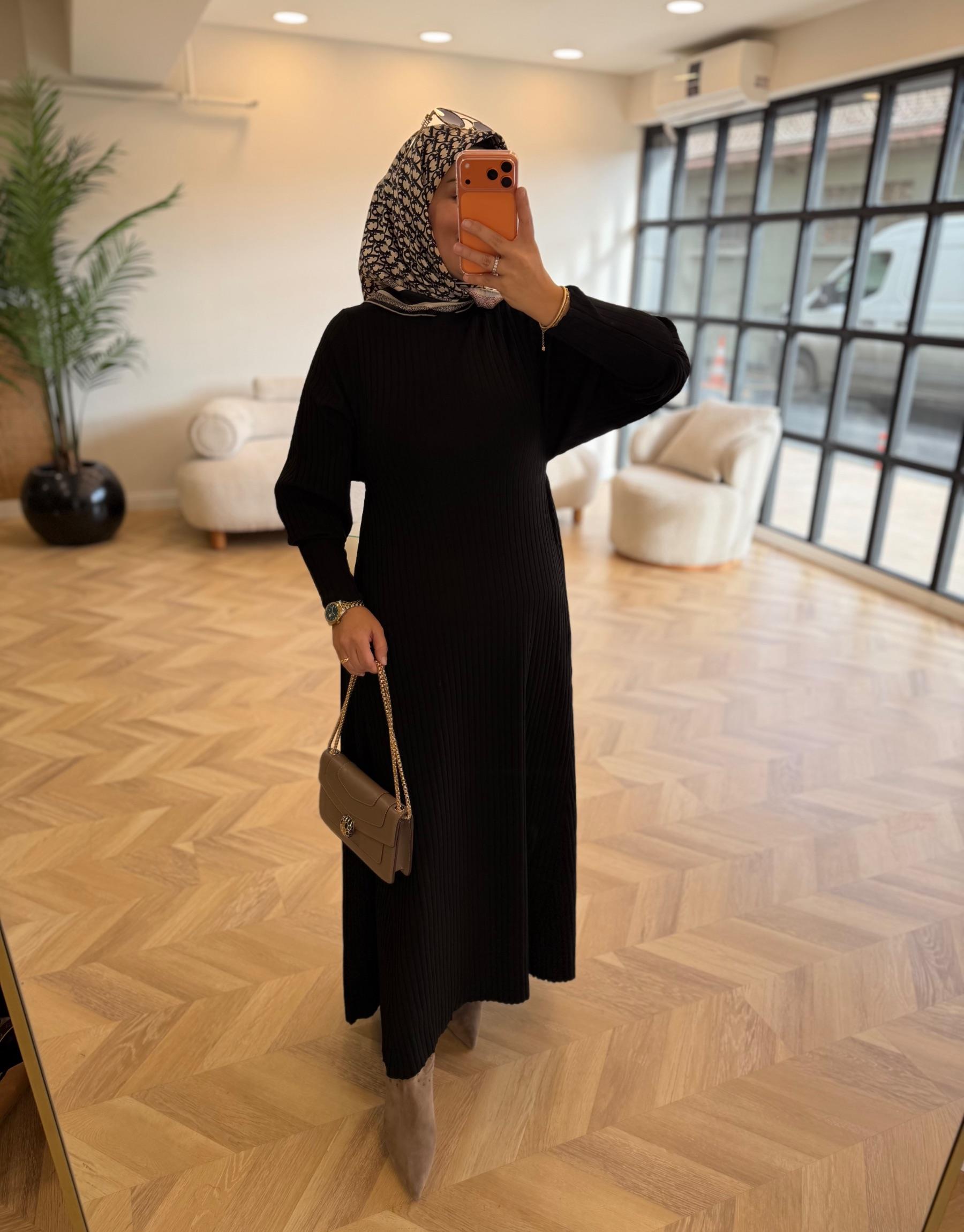 tesettur giyim Siyah 1504 Triko Elbise Butiköz