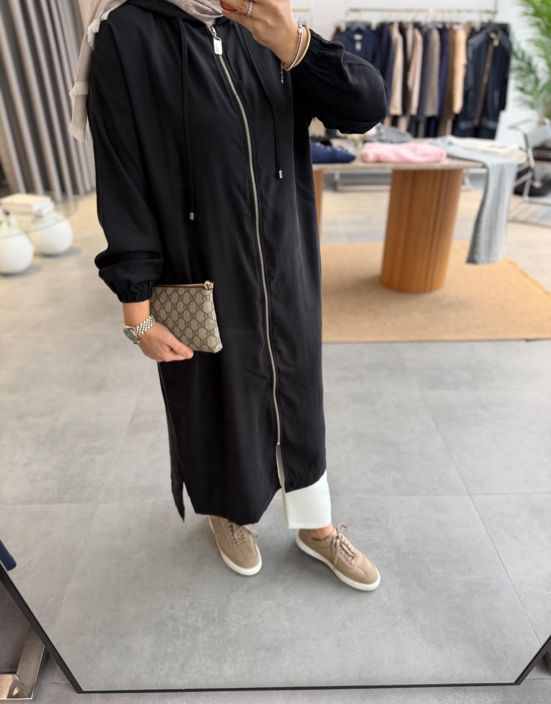 tesettur giyim Siyah 2992 Fermuarlı Kap Butiköz