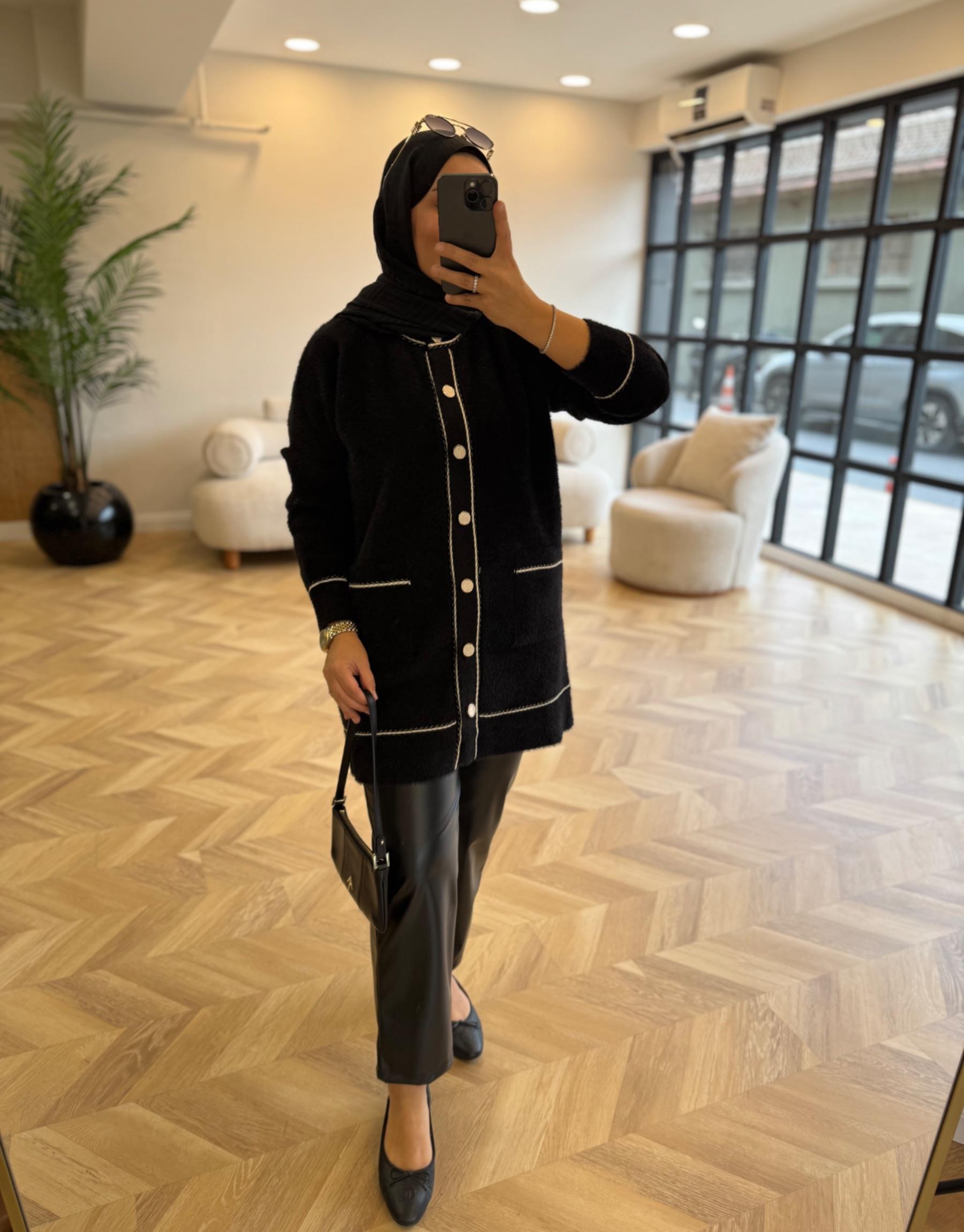 tesettur giyim Siyah 485 Angora Hırka Butiköz