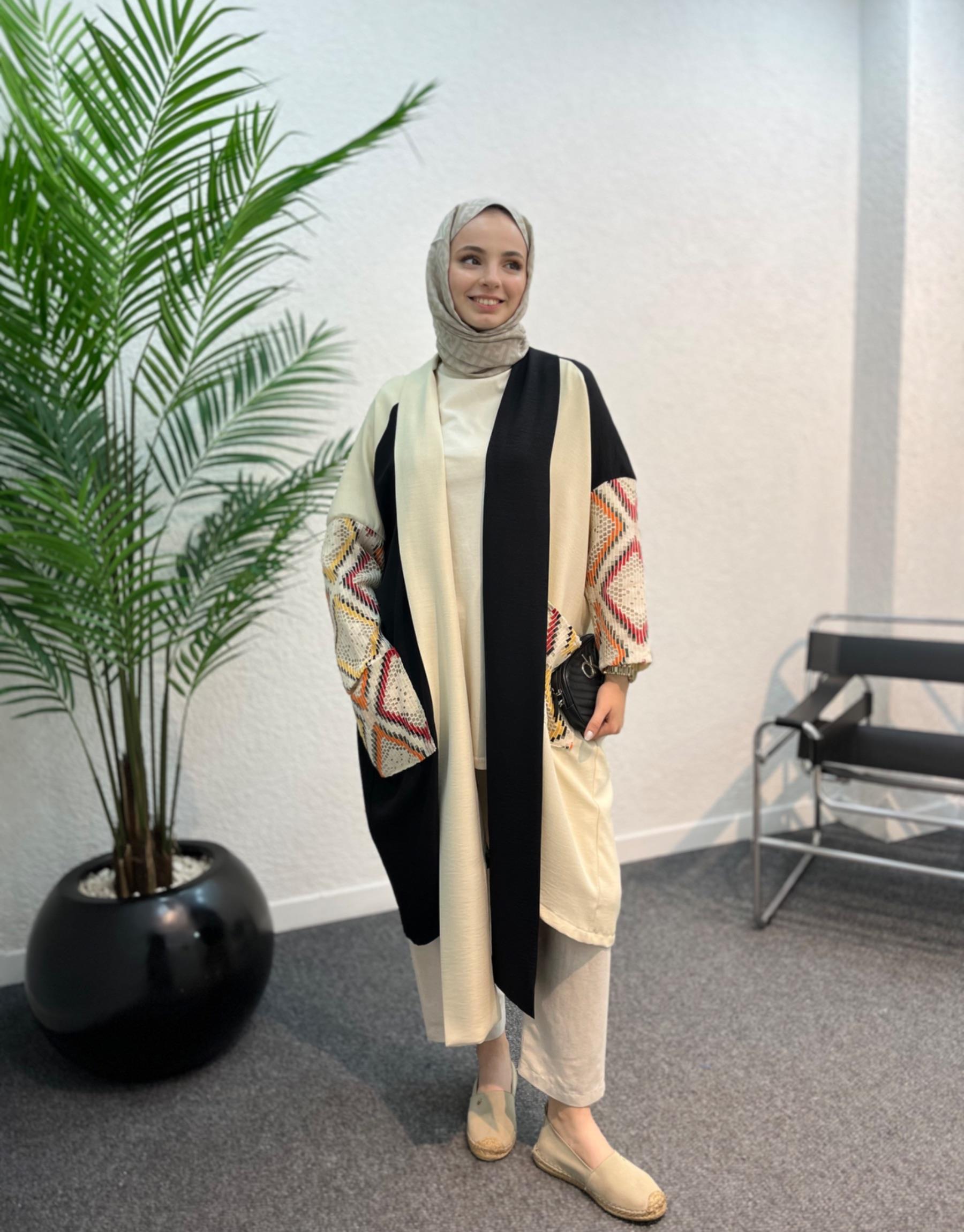 tesettur giyim Siyah 7816 Kimono Kap Butiköz