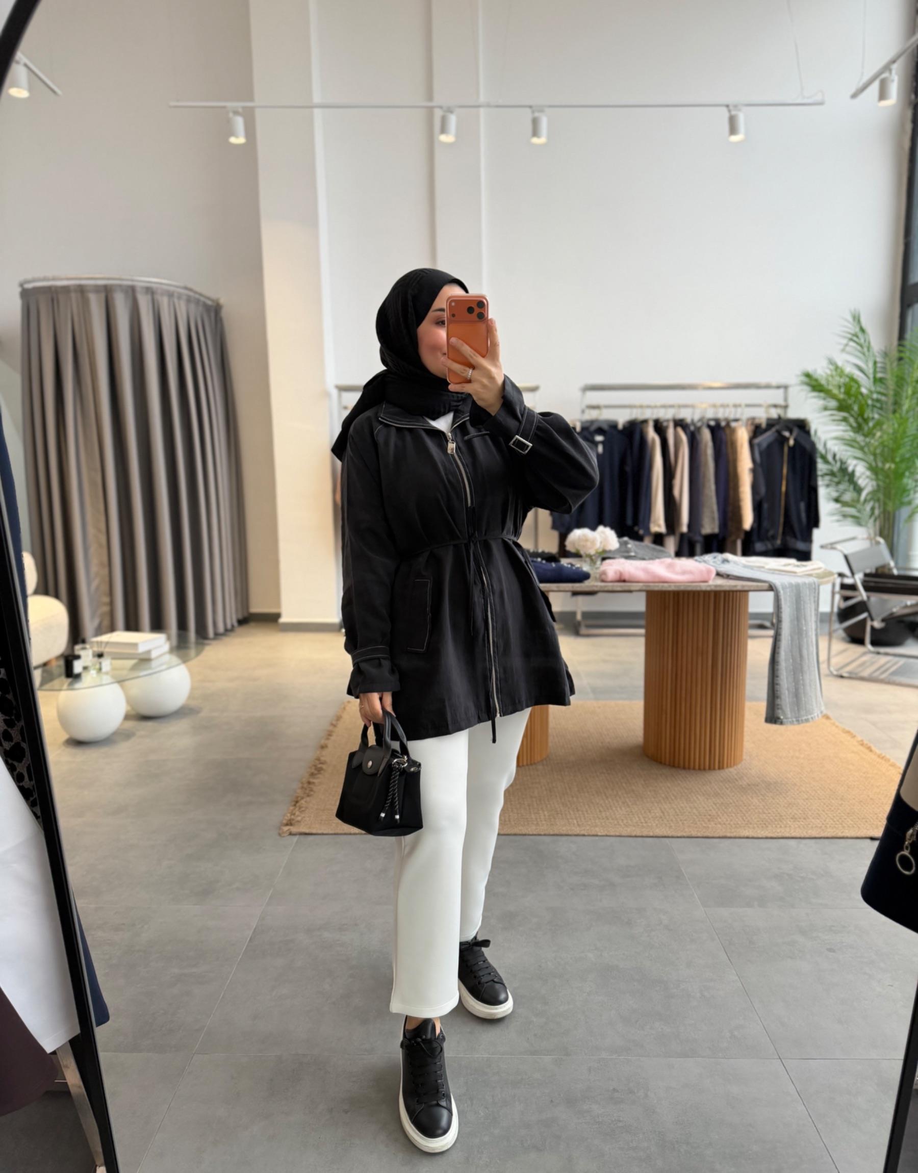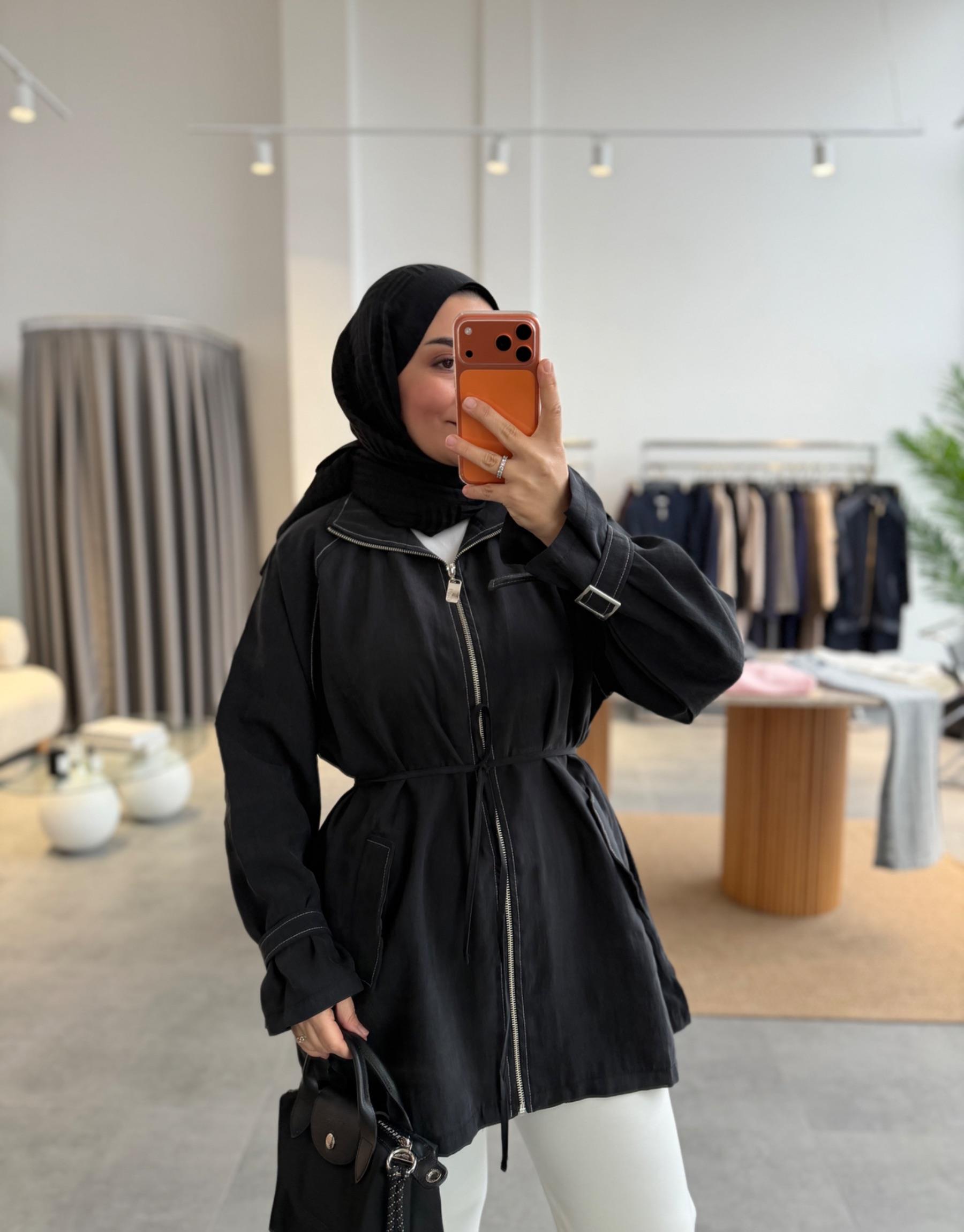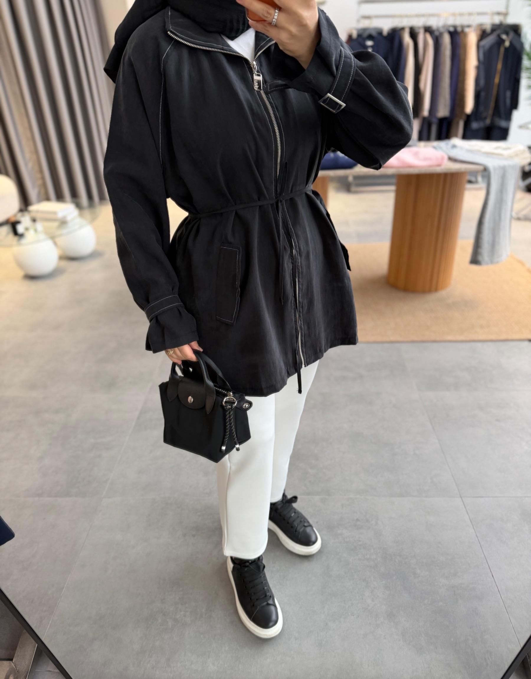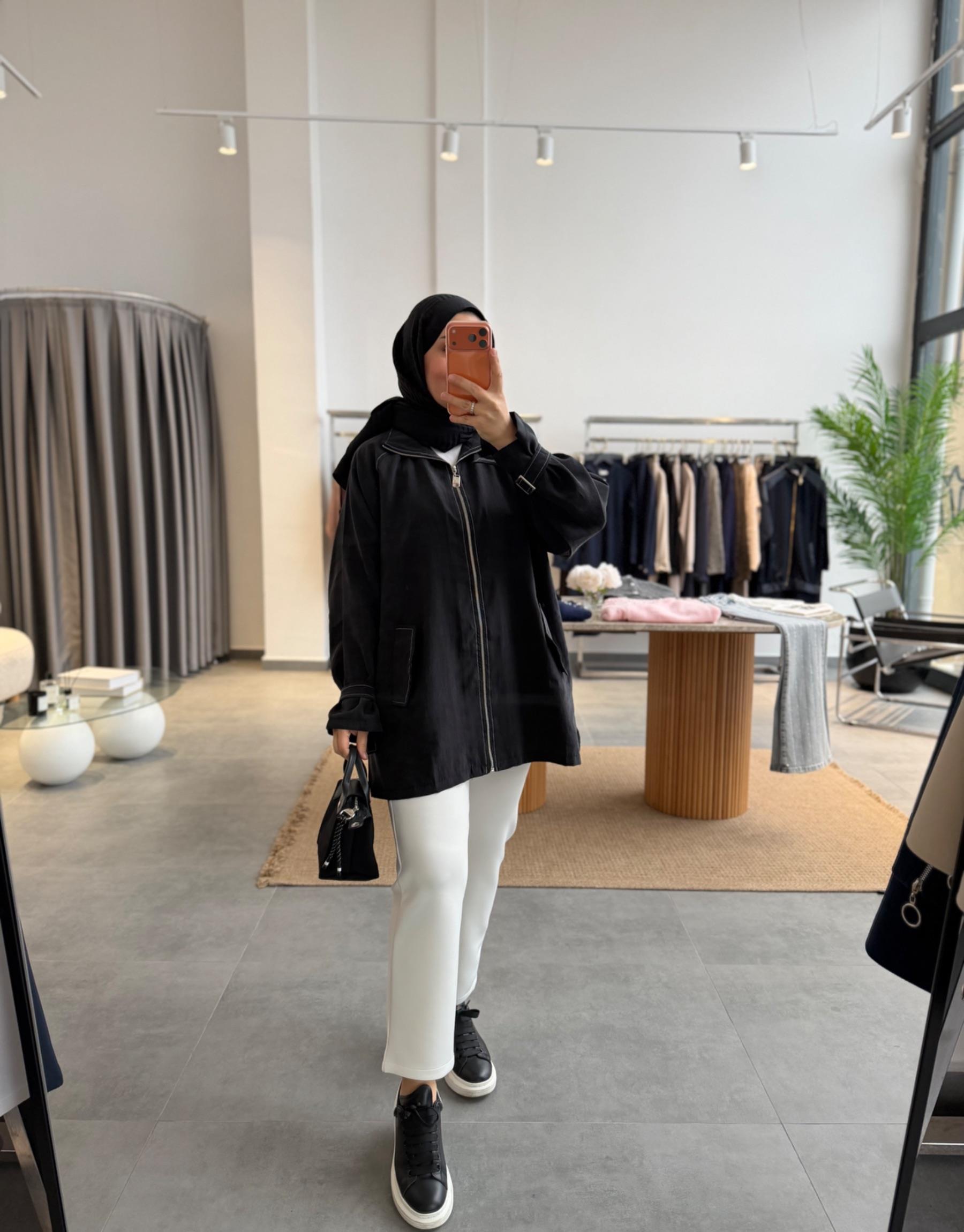 tesettur giyim Siyah Apolet Detaylı Fermuarlı Ceket Butiköz