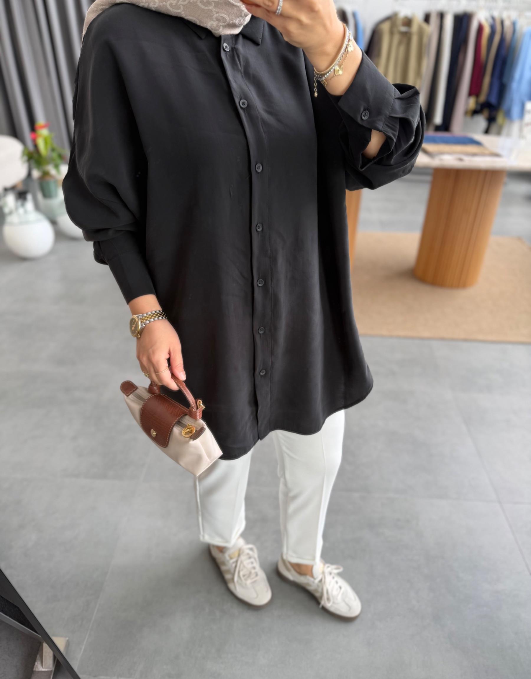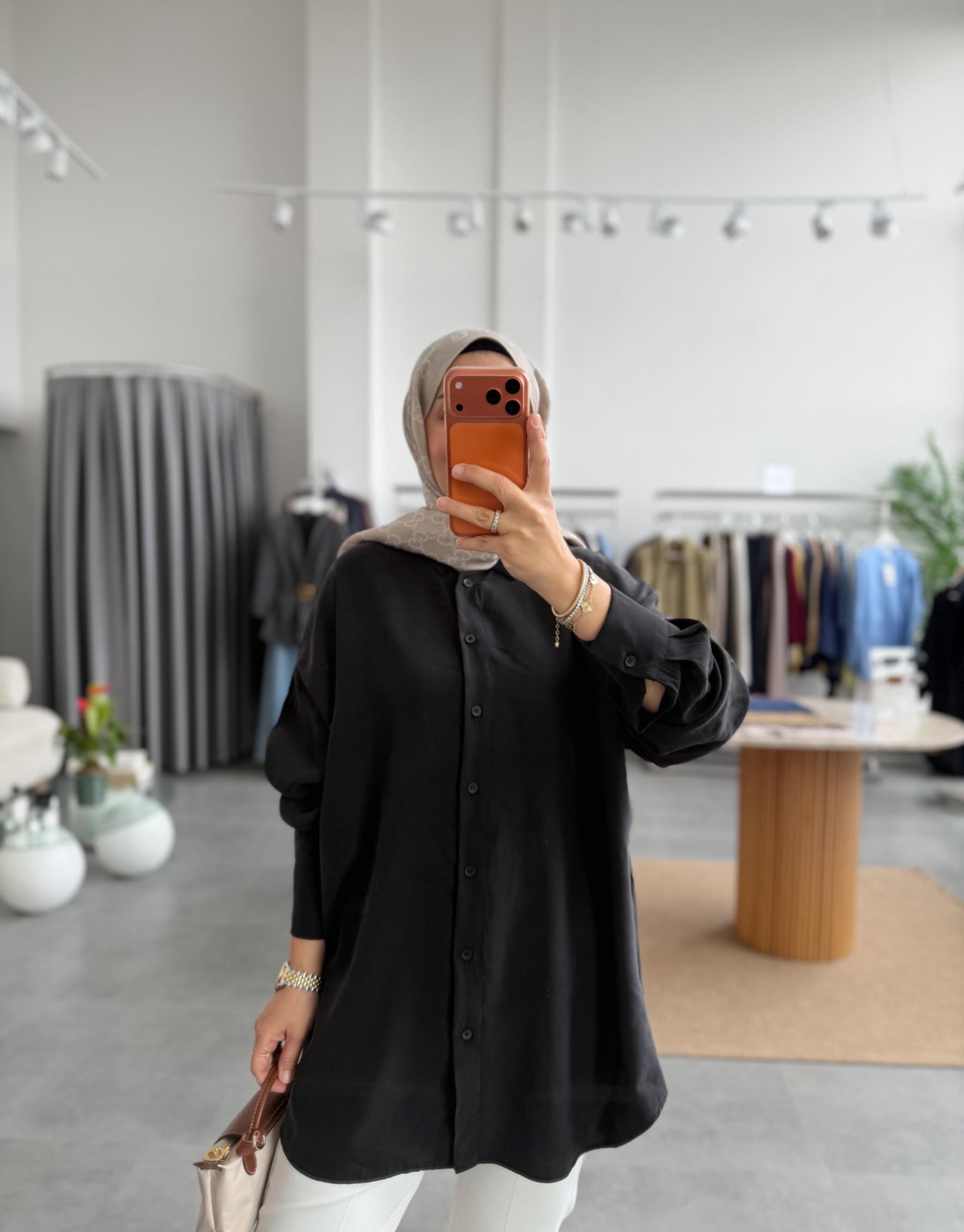 tesettur giyim Siyah Basic Oversize Gömlek Butiköz